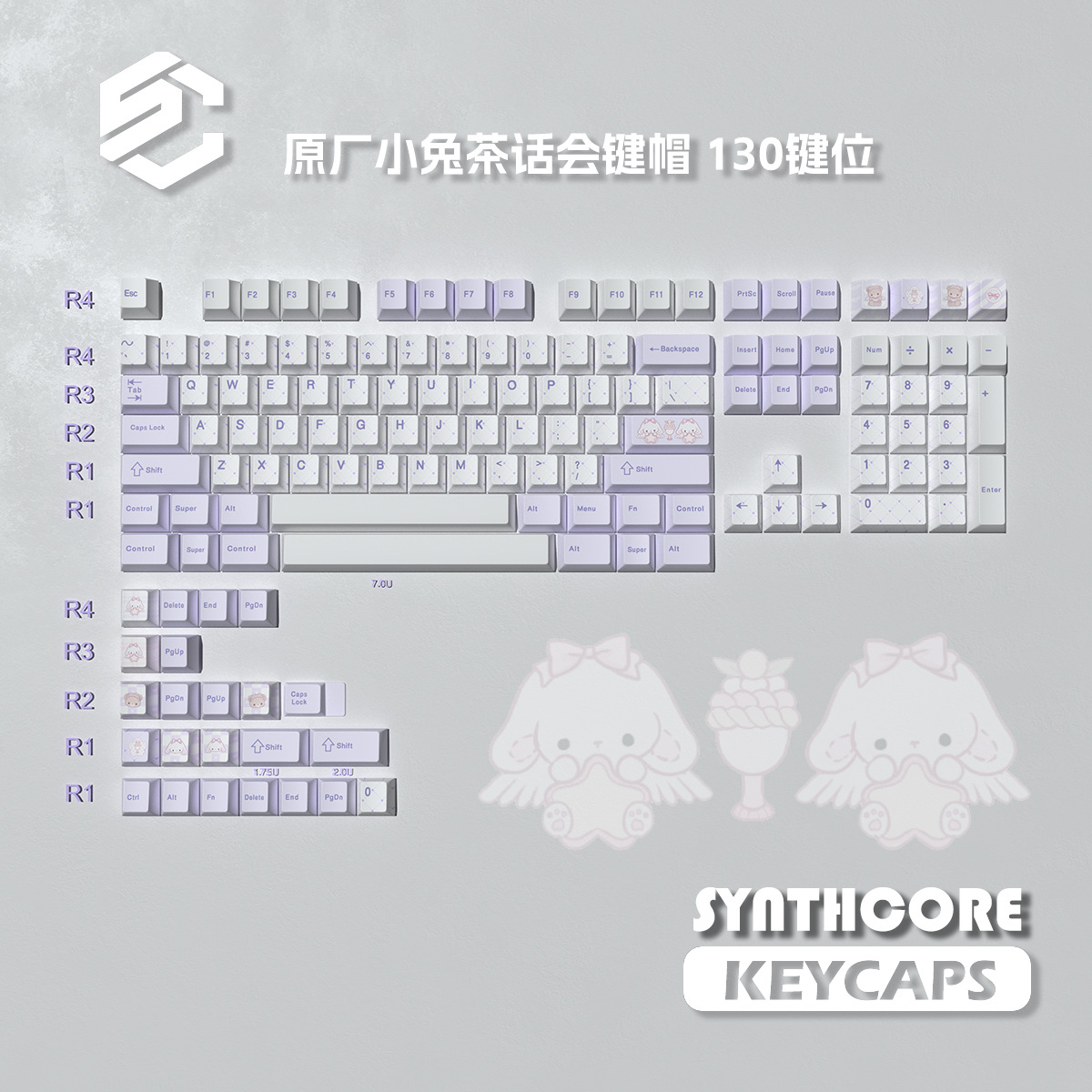 Little Rabbit Tea Party Keycap 오리지널 PBT 승화 맞춤형 키캡 5면 승화 라벤더 퍼플 우팅스토어 가기