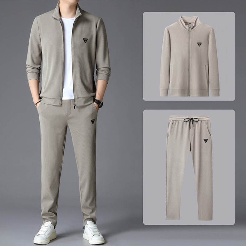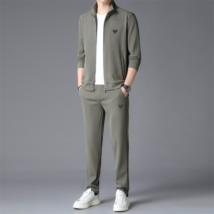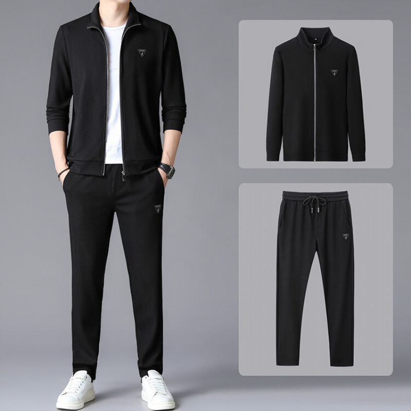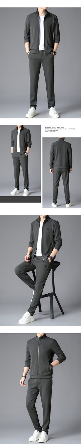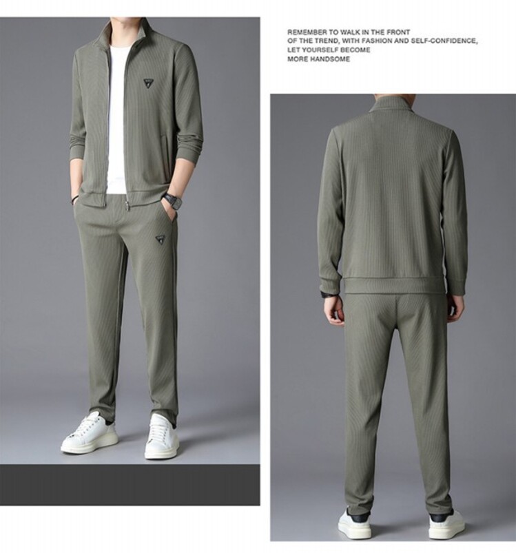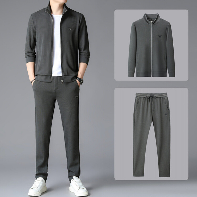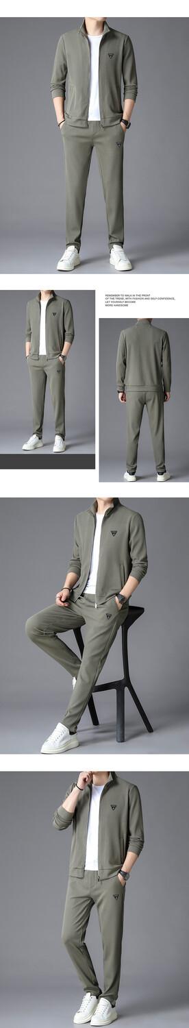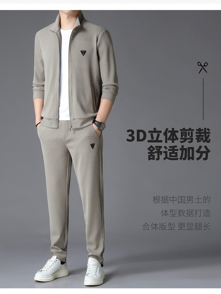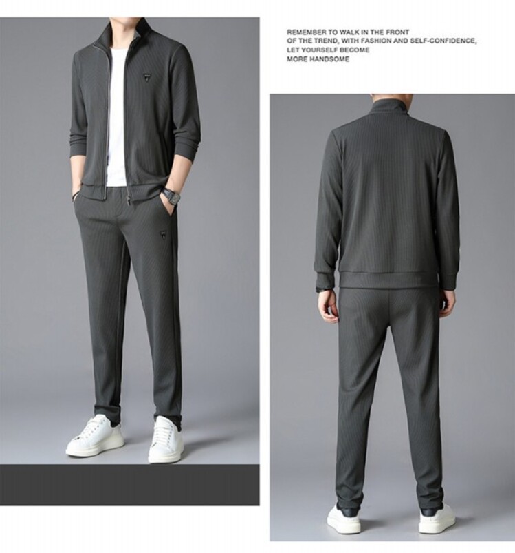 가을 2024 스탠드 칼라 코트 세트 남성 레저 스포츠 긴 소매 재킷 바지 투피스 세트스토어 가기