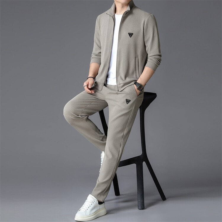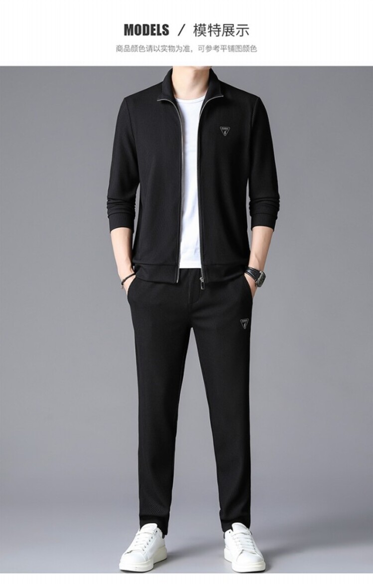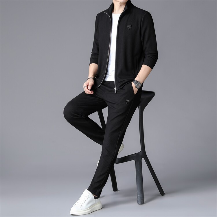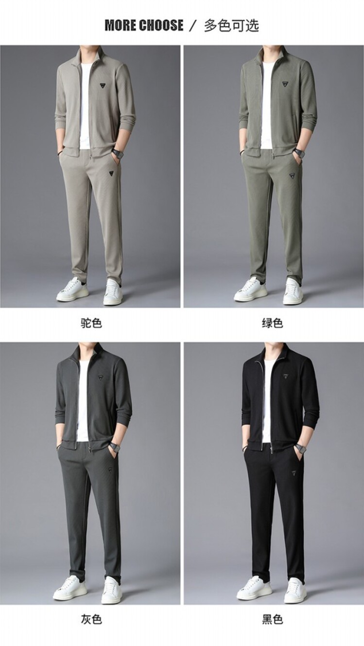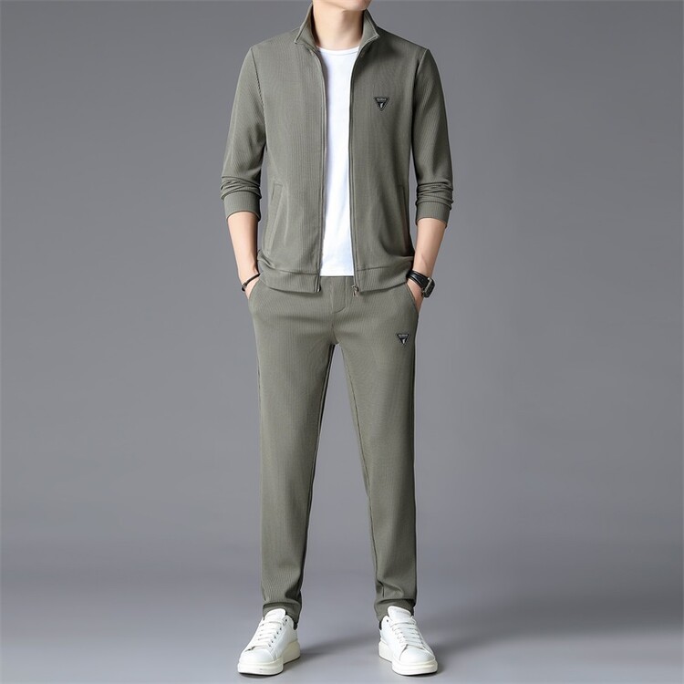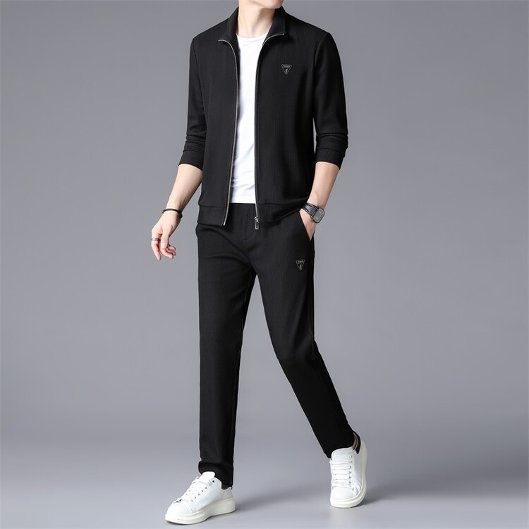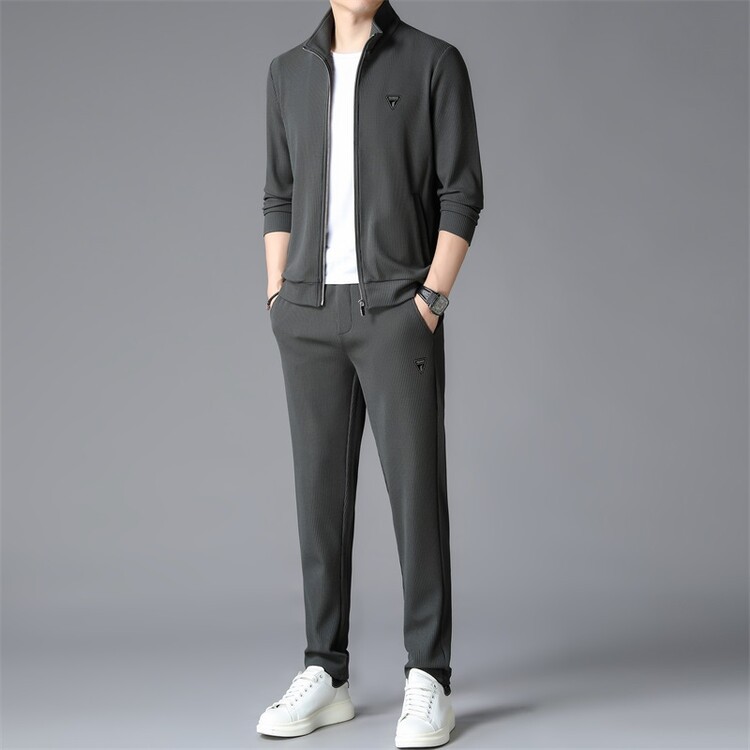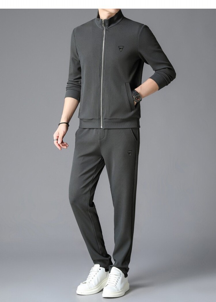 가을 2024 스탠드 칼라 코트 세트 남성 레저 스포츠 긴 소매 재킷 바지 투피스 세트스토어 가기