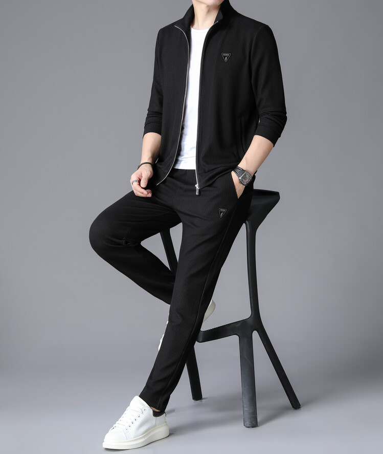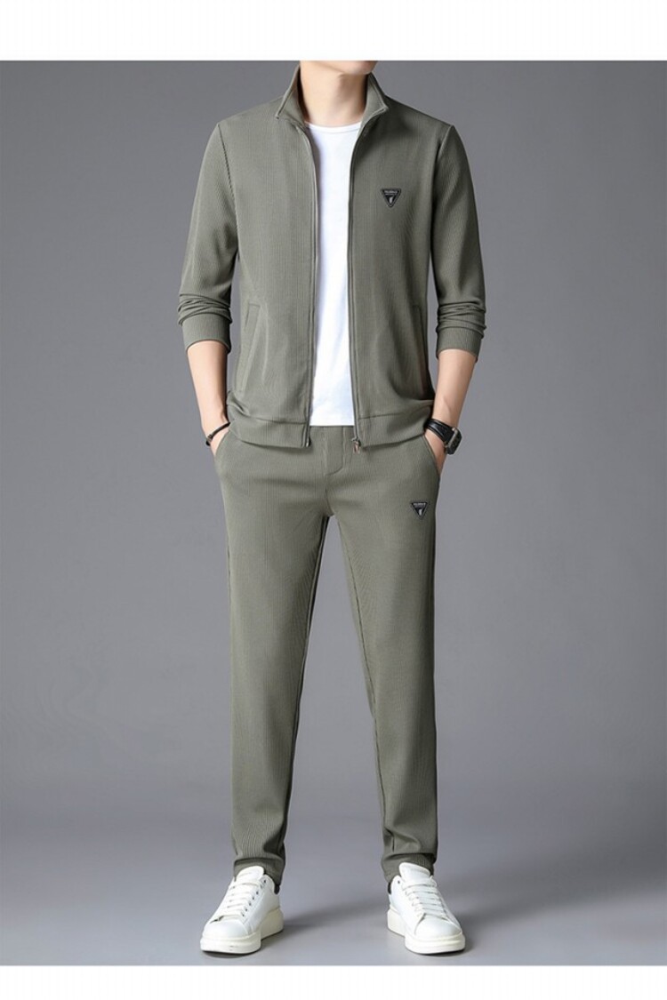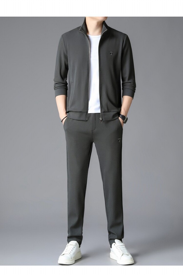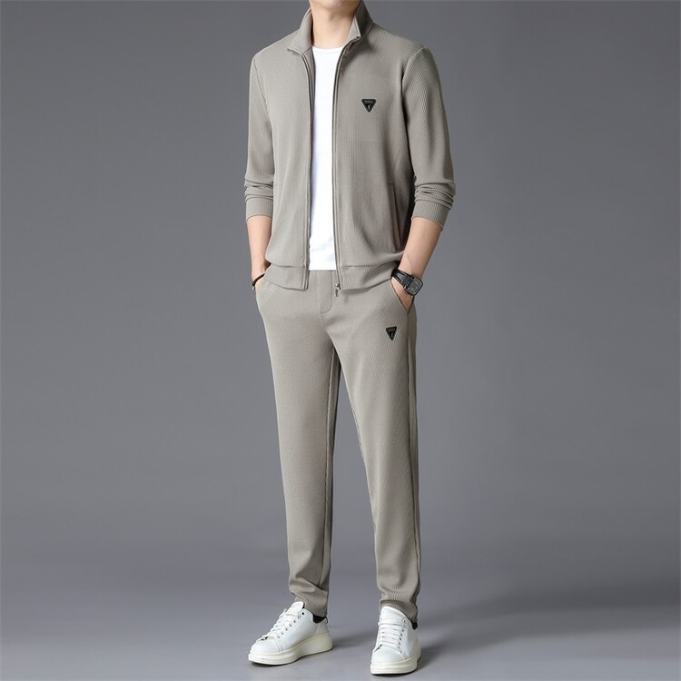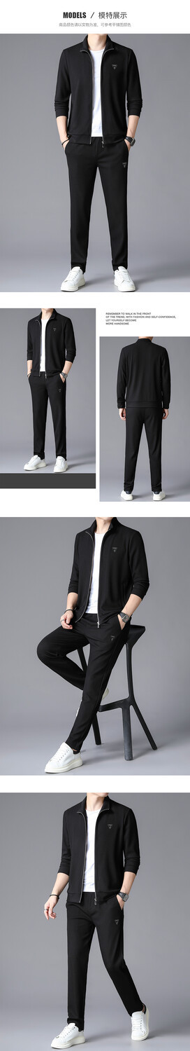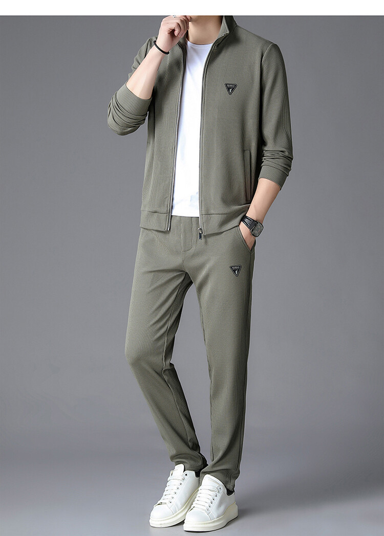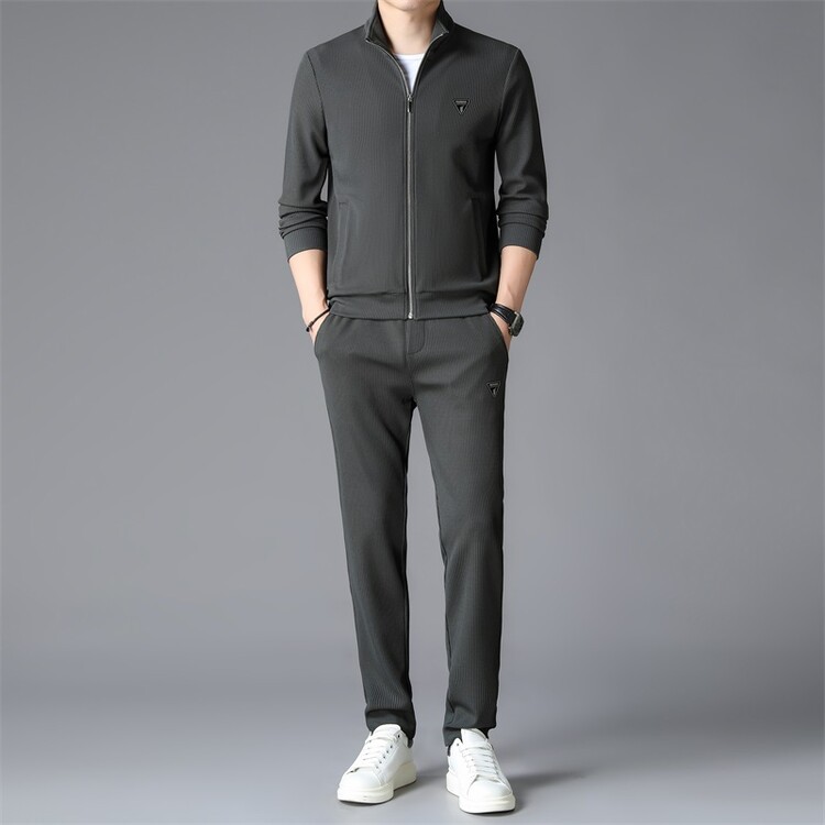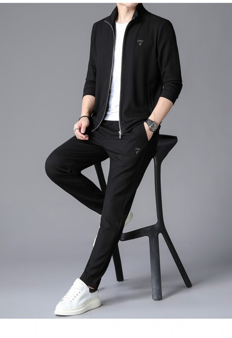 가을 2024 스탠드 칼라 코트 세트 남성 레저 스포츠 긴 소매 재킷 바지 투피스 세트스토어 가기