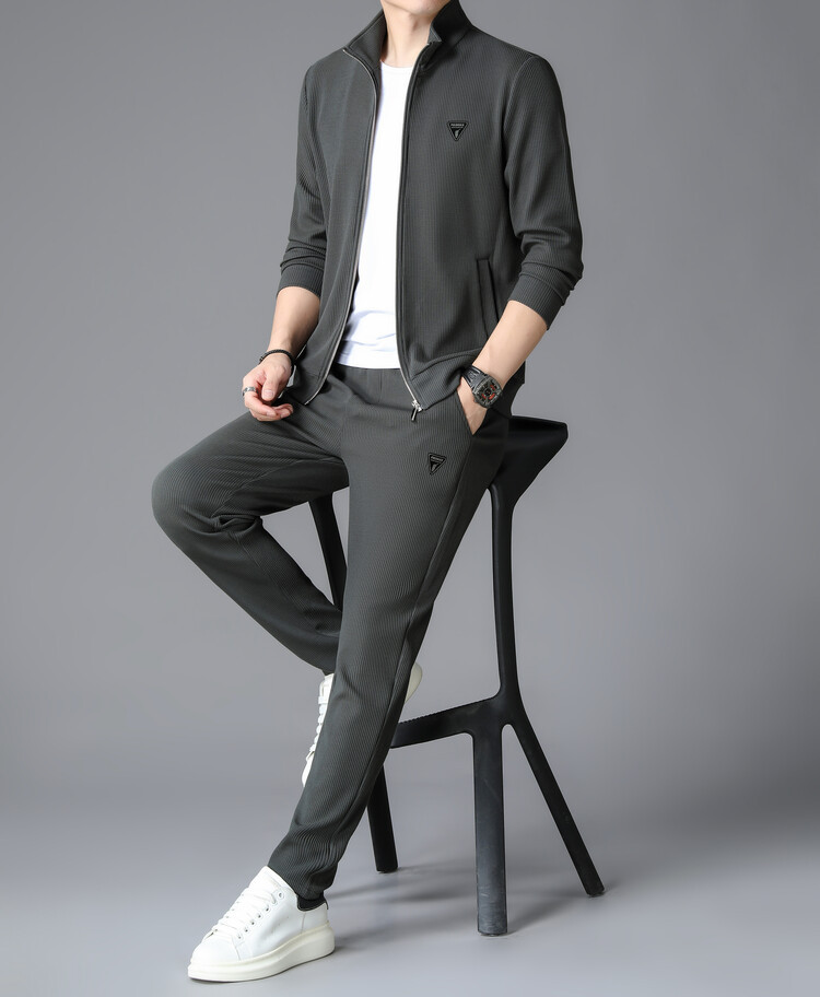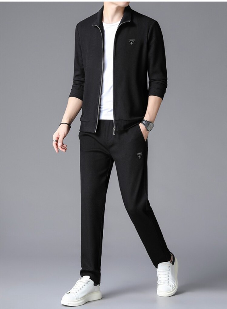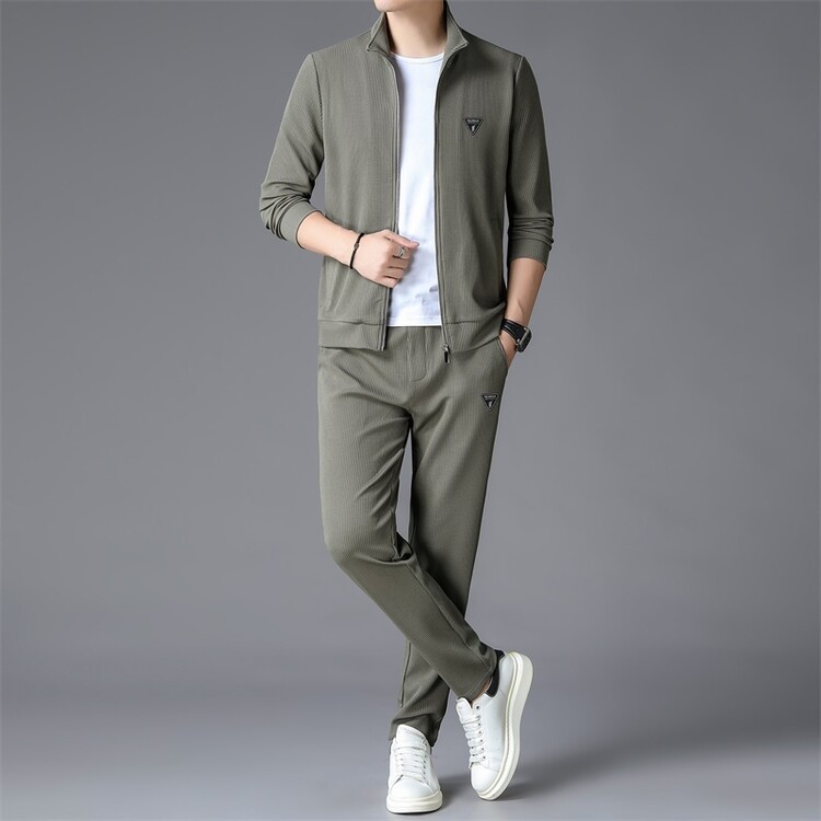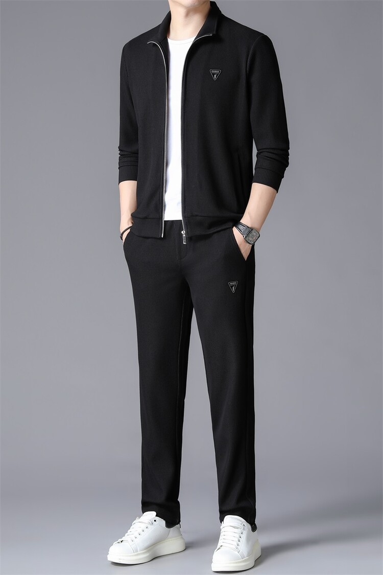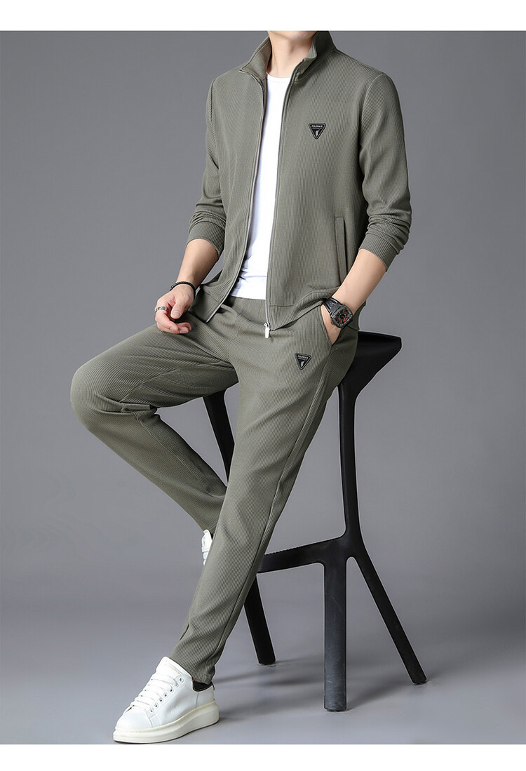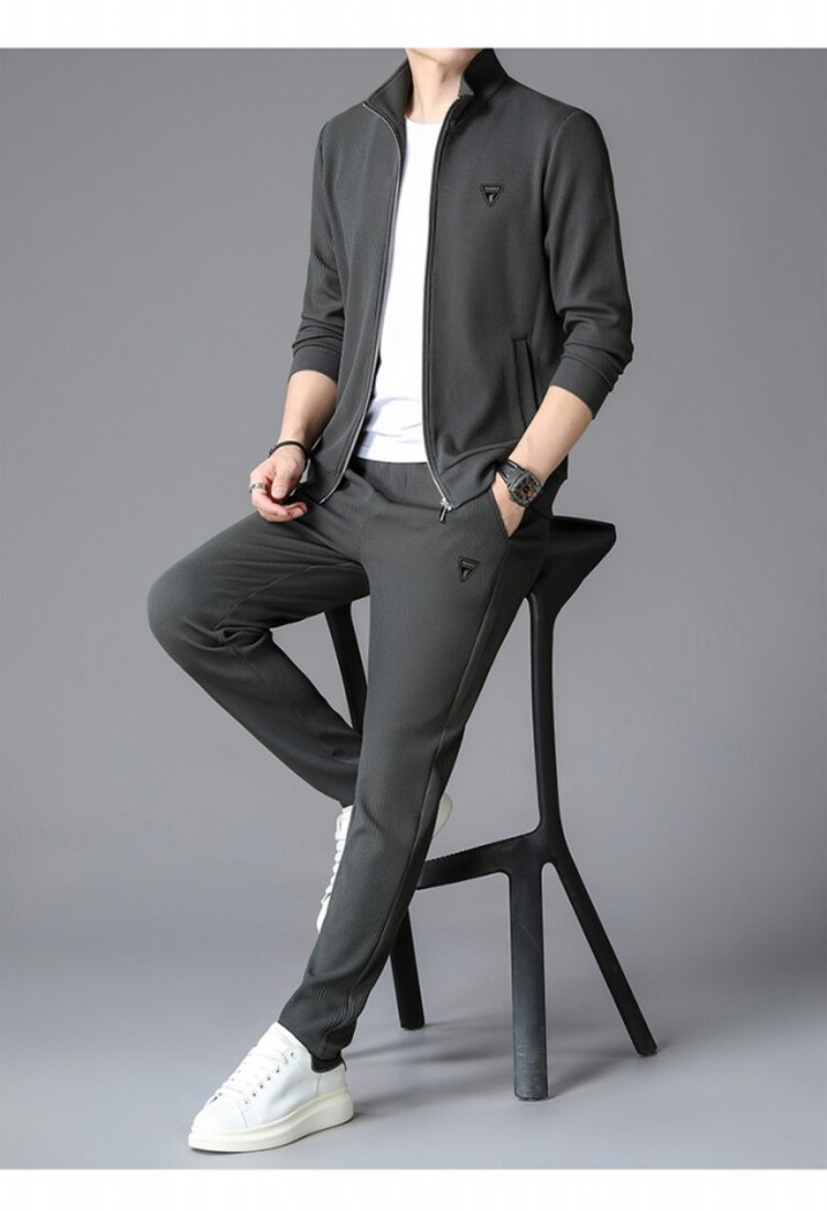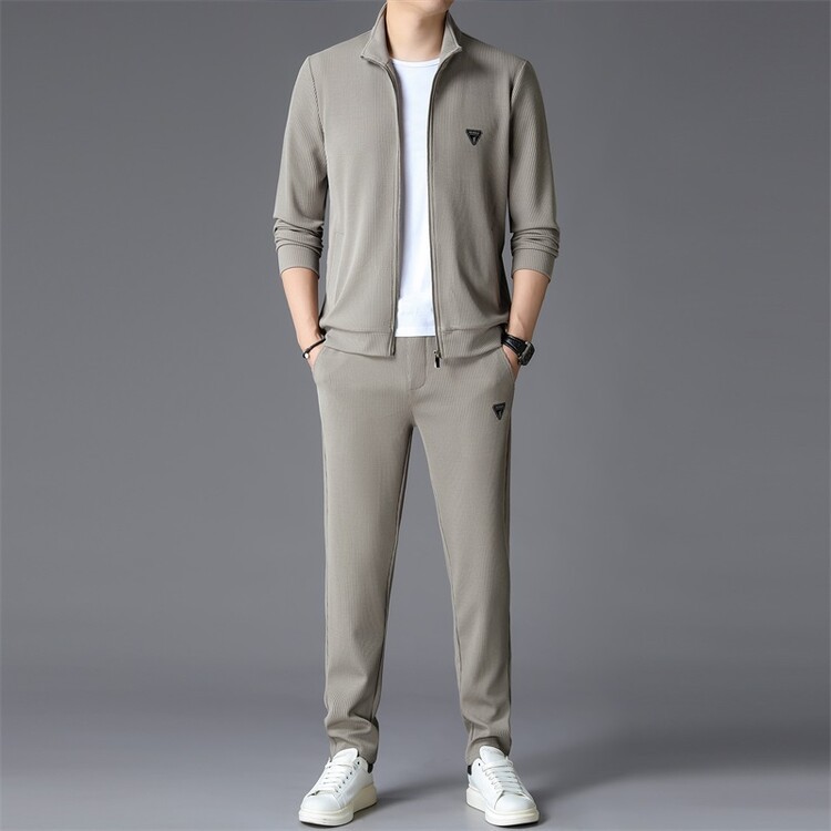 가을 2024 스탠드 칼라 코트 세트 남성 레저 스포츠 긴 소매 재킷 바지 투피스 세트스토어 가기