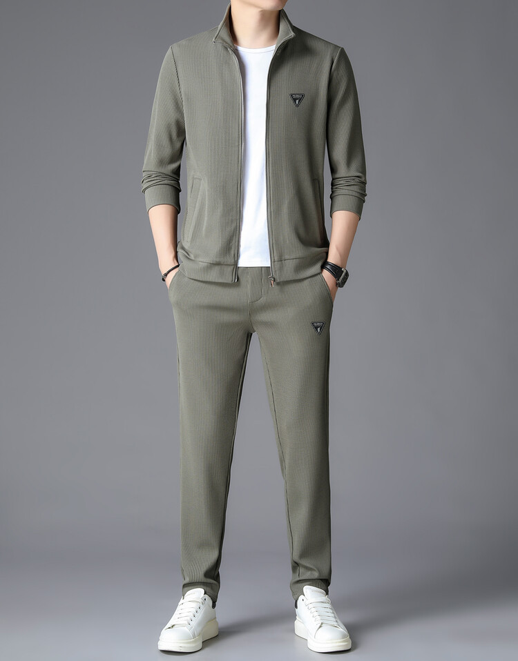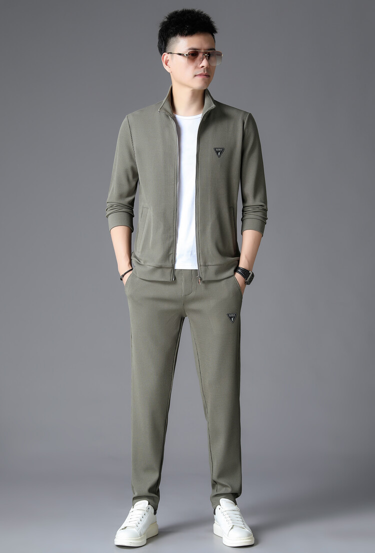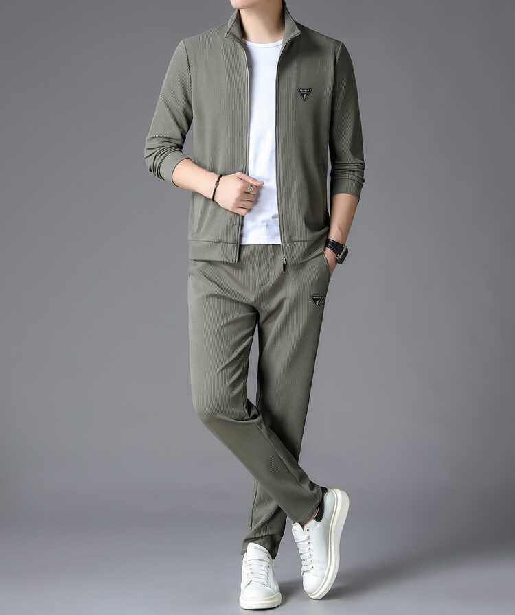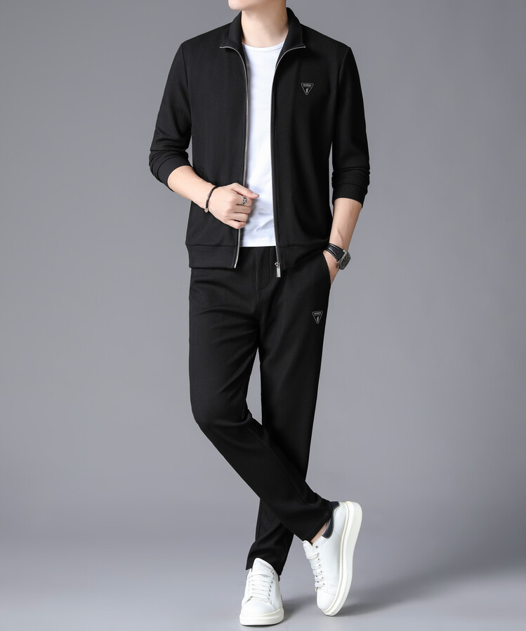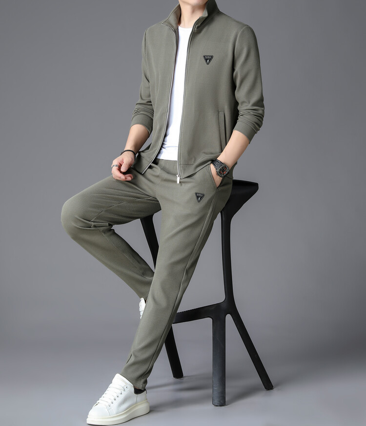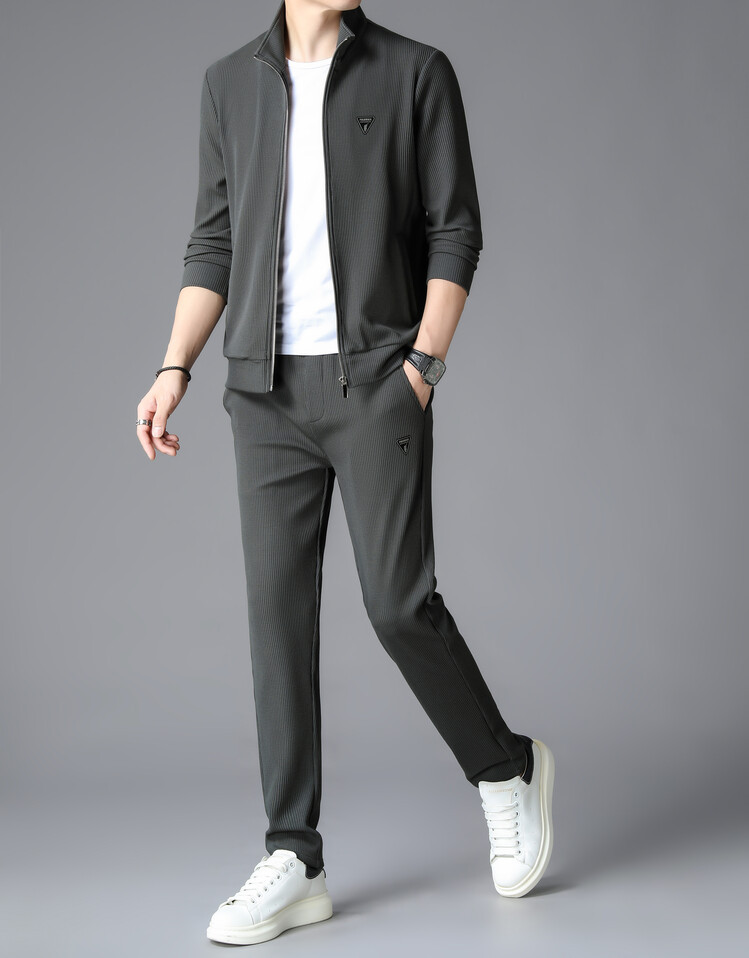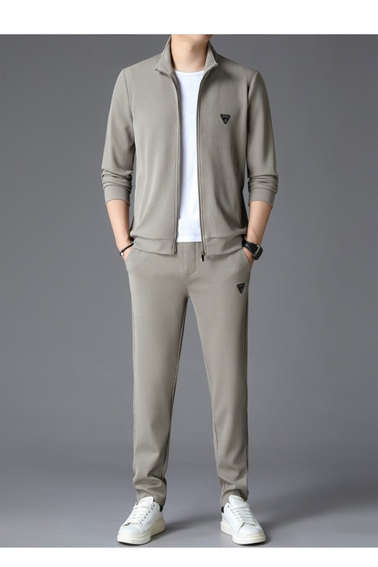 가을 2024 스탠드 칼라 코트 세트 남성 레저 스포츠 긴 소매 재킷 바지 투피스 세트스토어 가기