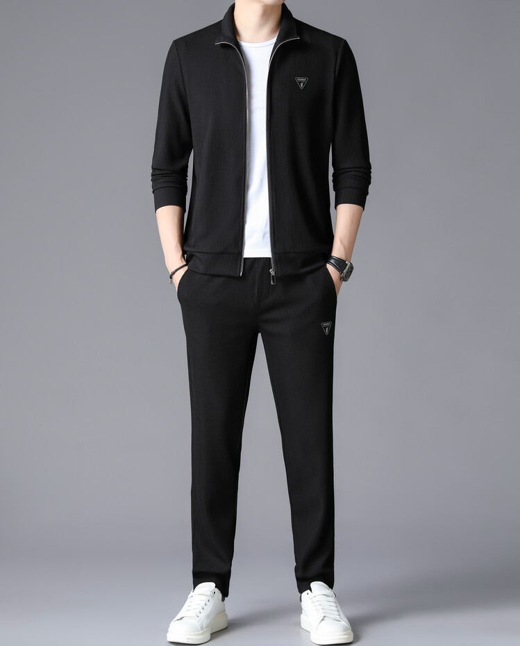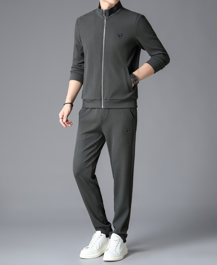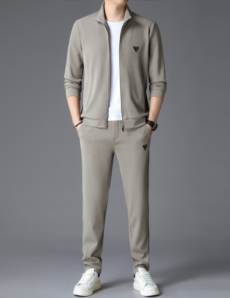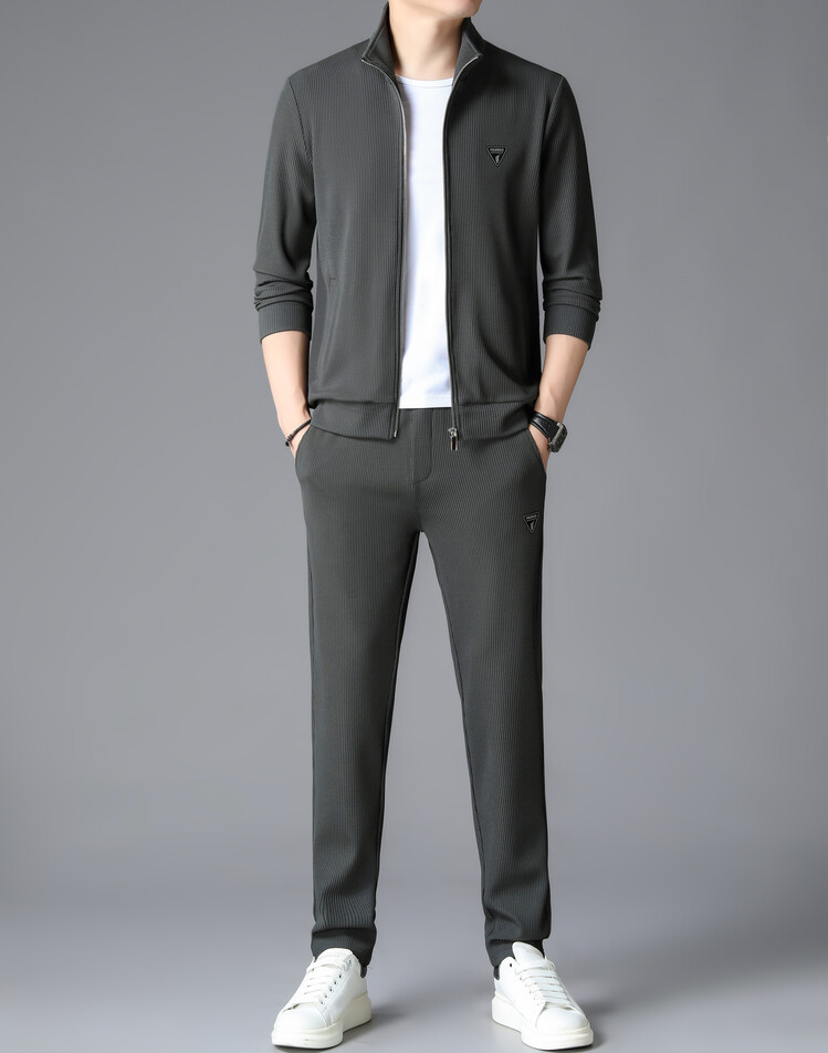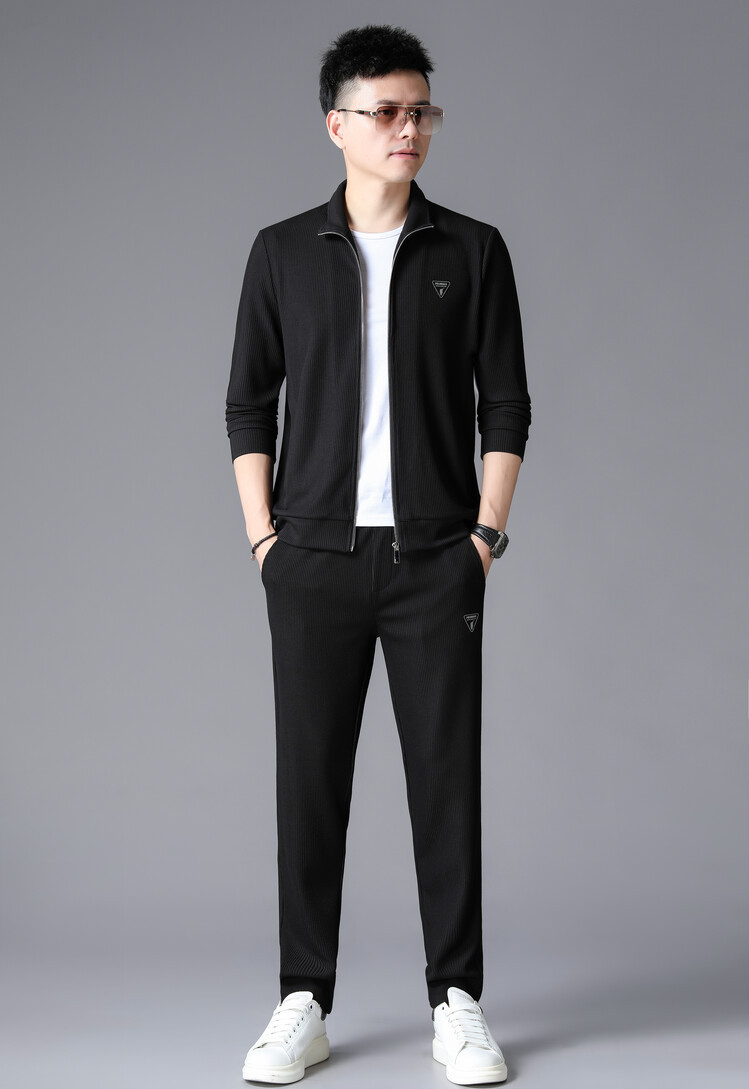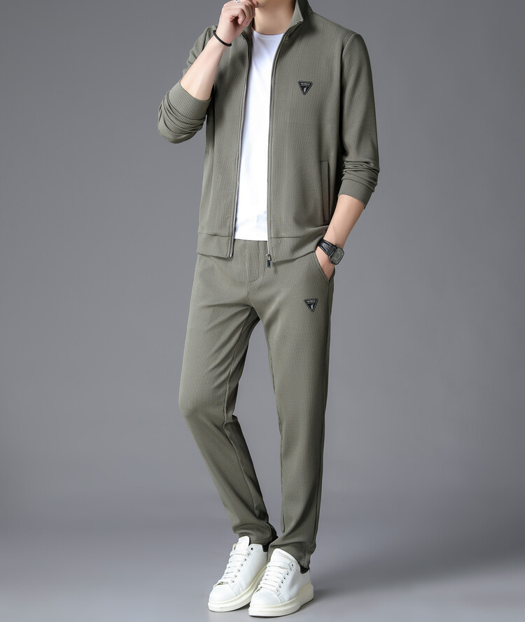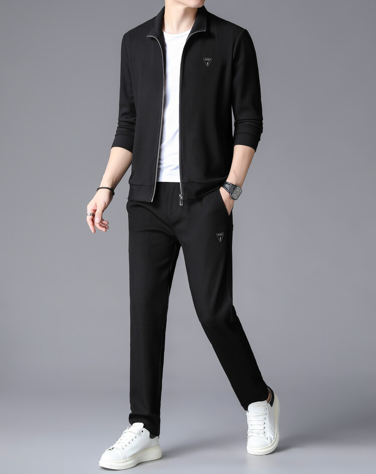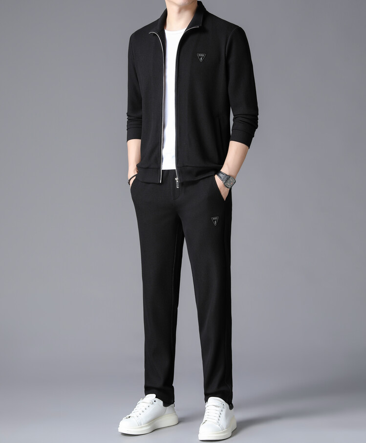 가을 2024 스탠드 칼라 코트 세트 남성 레저 스포츠 긴 소매 재킷 바지 투피스 세트스토어 가기