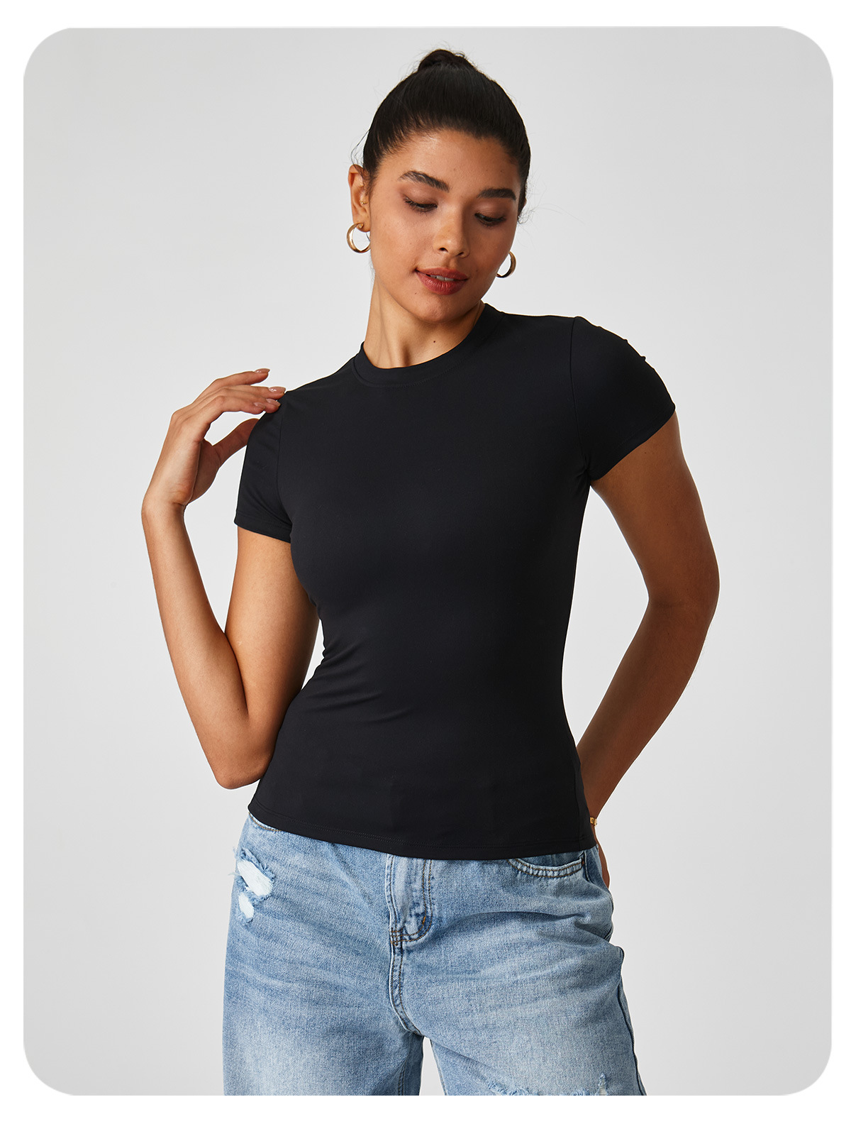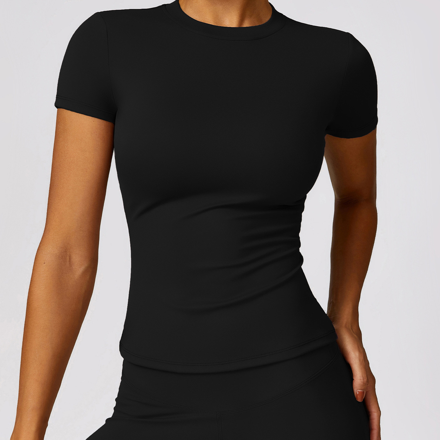 고탄력 기모 요가복 슬림핏 반팔 여성 피트니스 탑 야외 러닝 스포츠 캐주얼 티셔츠 다용도