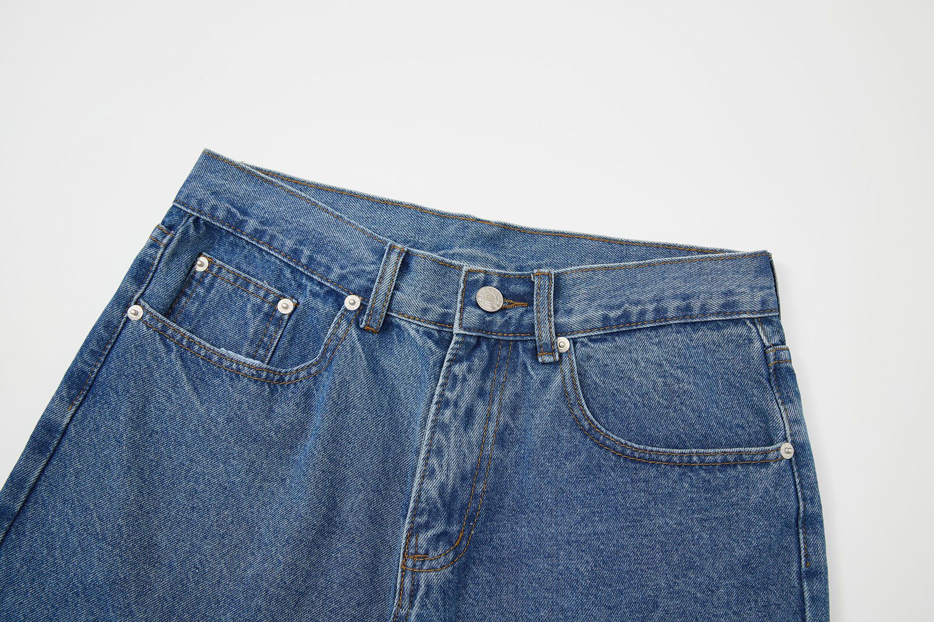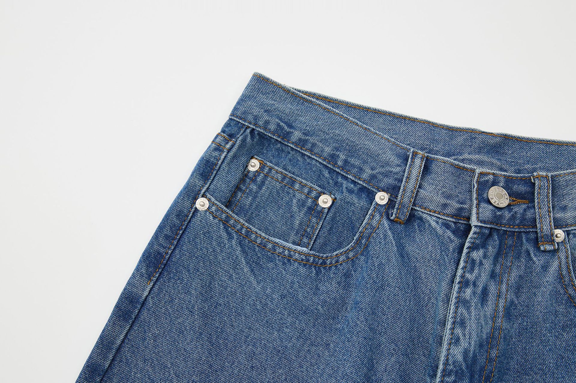 RDT 남성복 | 아메리칸 레트로 심플 일반 워싱 블루 심플 데님 반바지 남성 일본식 워싱 캐주얼 청바지스토어 가기