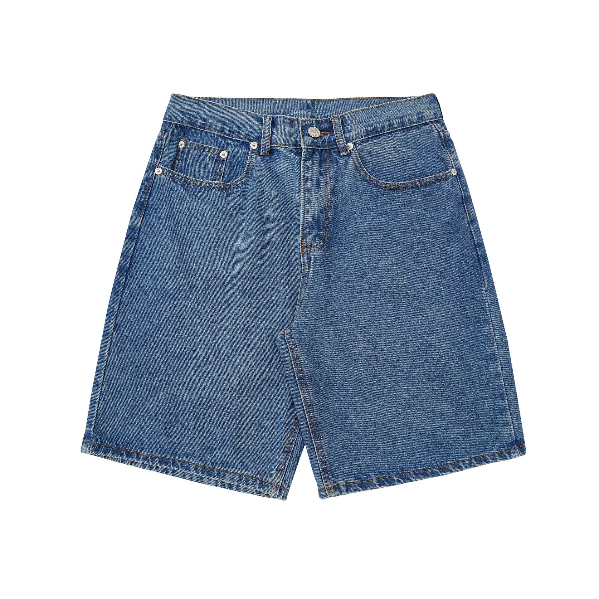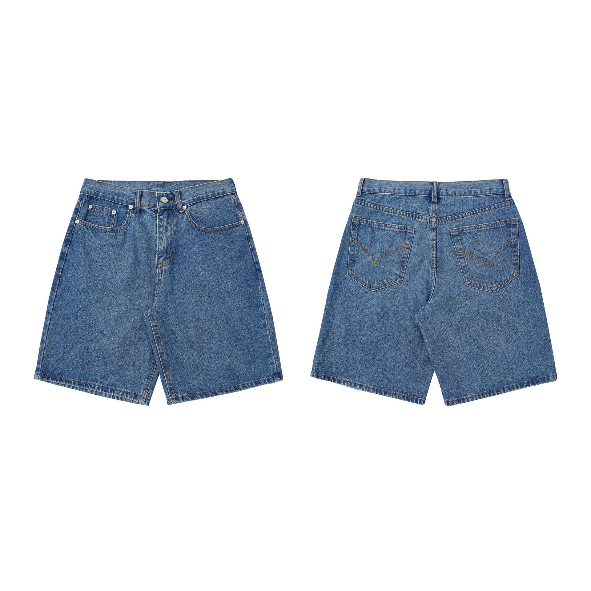RDT 남성복 | 아메리칸 레트로 심플 일반 워싱 블루 심플 데님 반바지 남성 일본식 워싱 캐주얼 청바지
