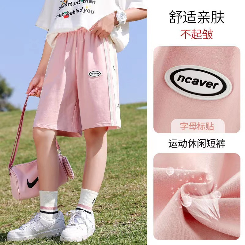 여아 여름 운동복 2025 새로운 스타일 큰 어린이 유행 컬러 블록 티셔츠 5부 바지 캐주얼 한국 스타일 투피스 세트스토어 가기
