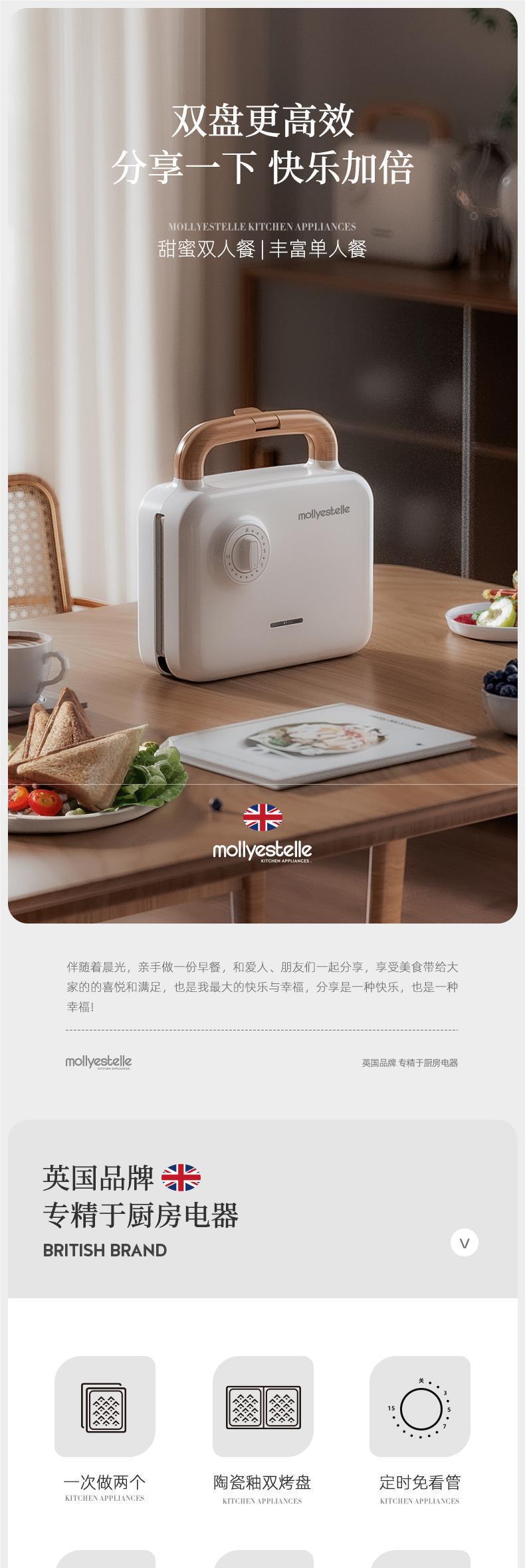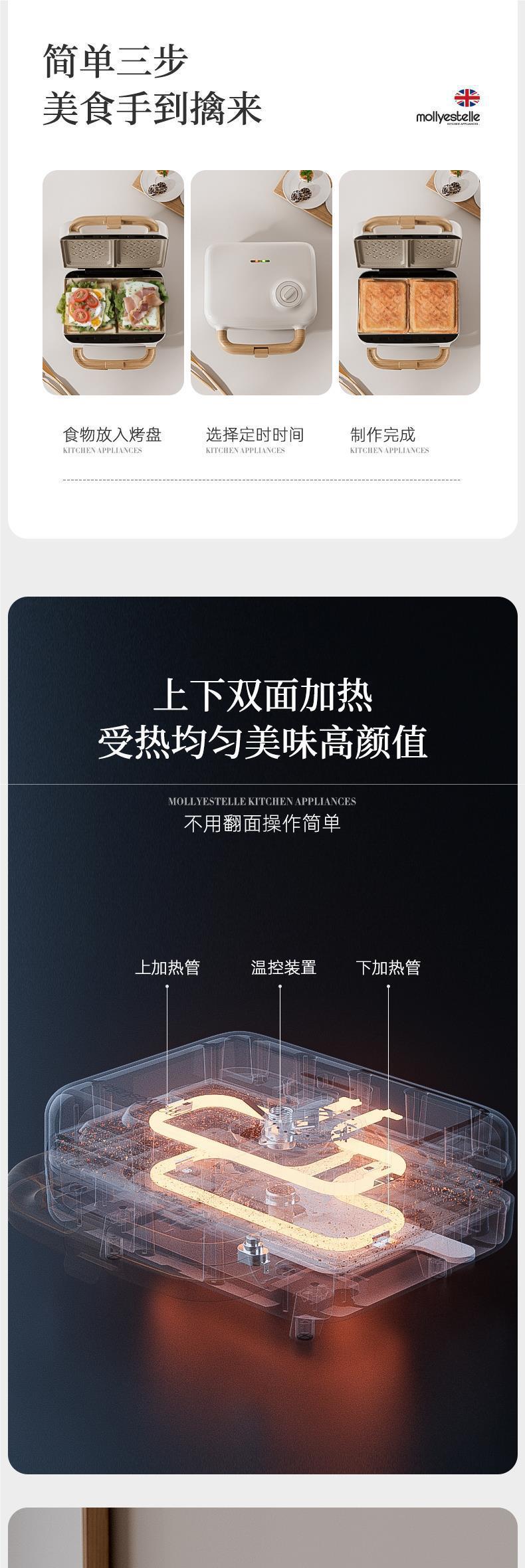 Mollyestelle 더블 플레이트 샌드위치 아침 식사 기계 가정용 타이밍 다기능 와플 가벼운 음식 기계 빵 기계스토어 가기