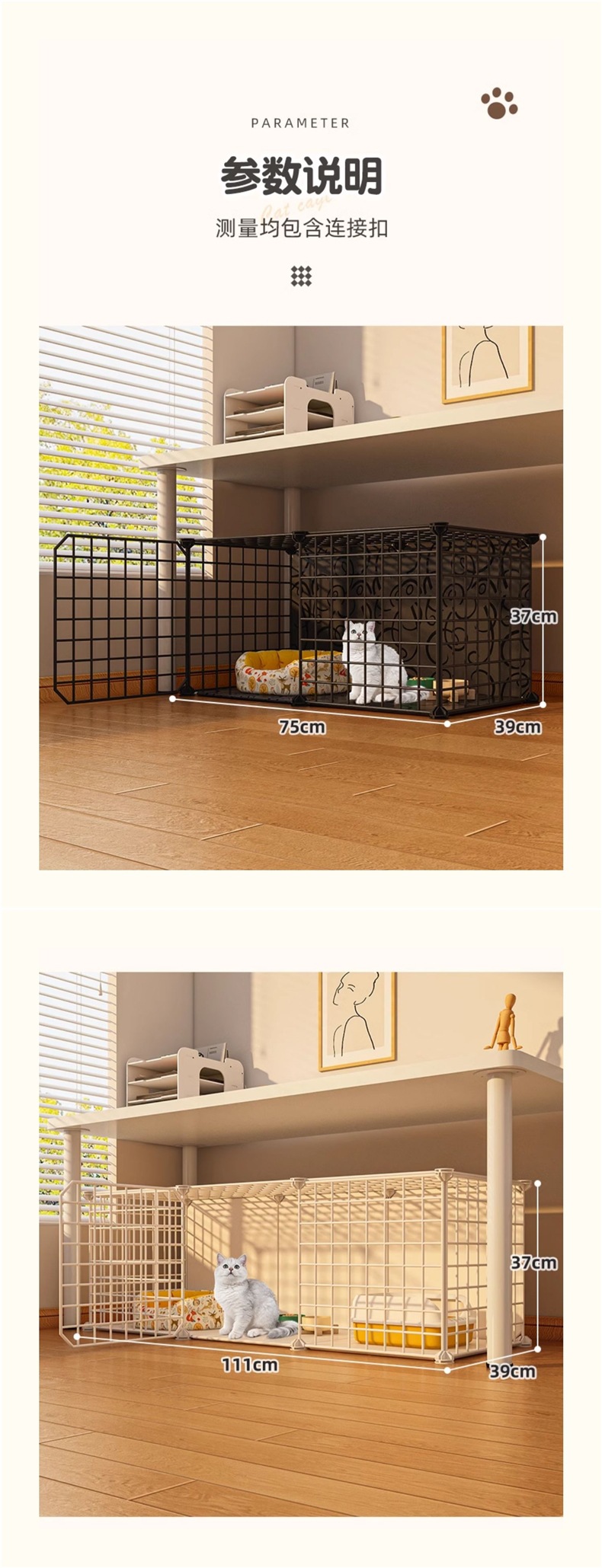 • "2개의 그리드 ""75*39*37, 흰색""이 닫혀 있음" ☆ 새끼 고양이에게 추천