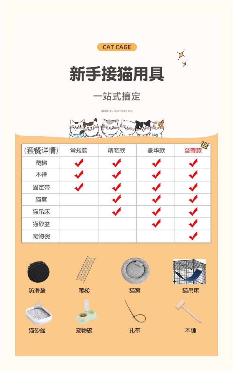 • 럭셔리 모델(일반 모델 + 고양이 둥지 + 고양이 해먹 + 삽이 포함된 고양이 배변 상자)