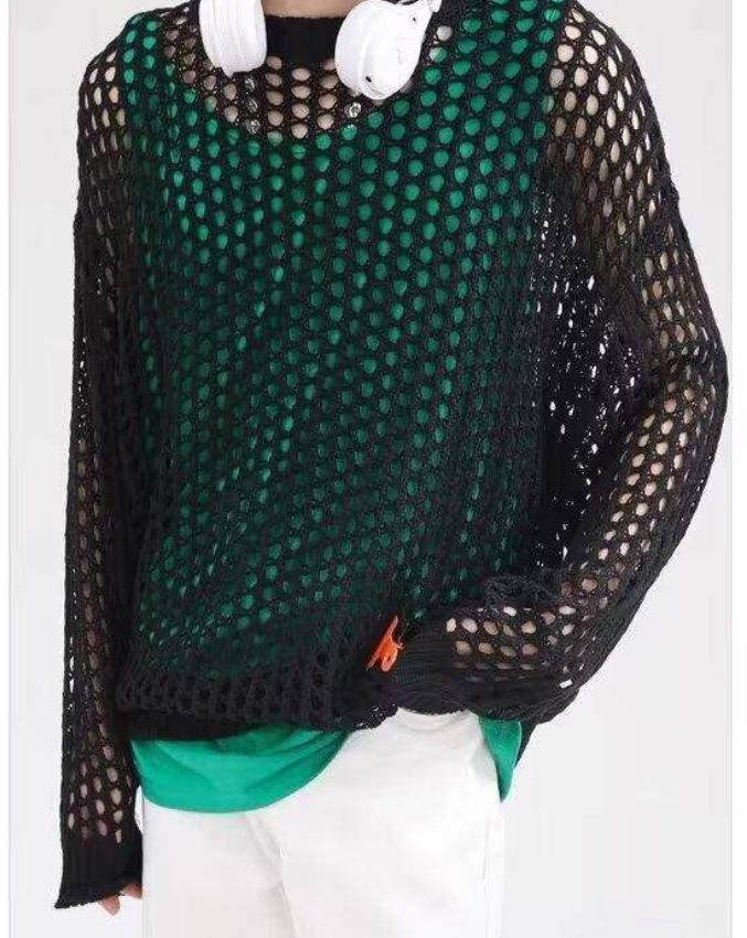 남성용 여름 니트 스웨터, 트렌디한 브랜드 중공 망사 디자인, 커플용 자외선 차단 블라우스, 긴팔 스웨터, 하의 셔츠스토어 가기