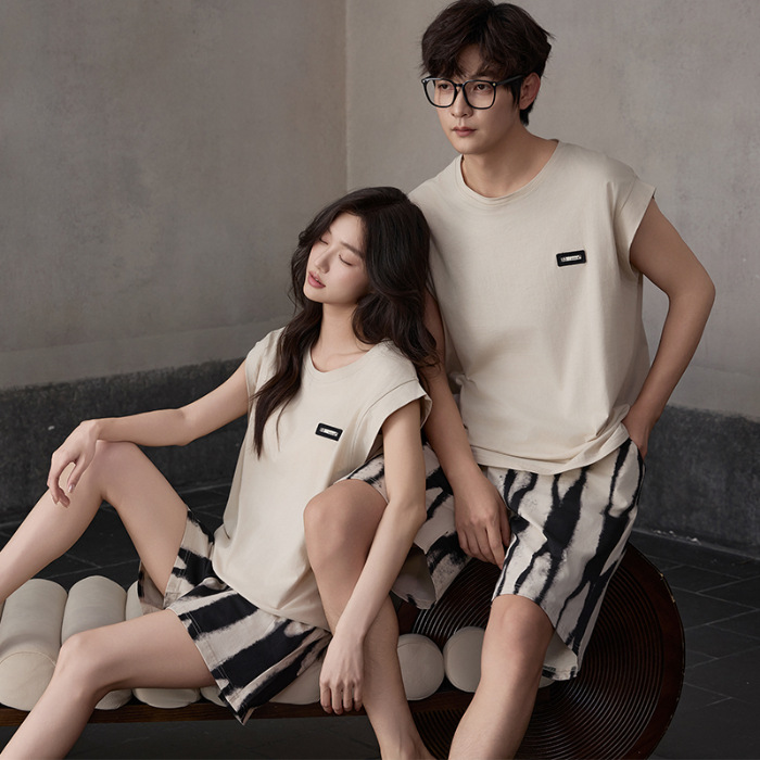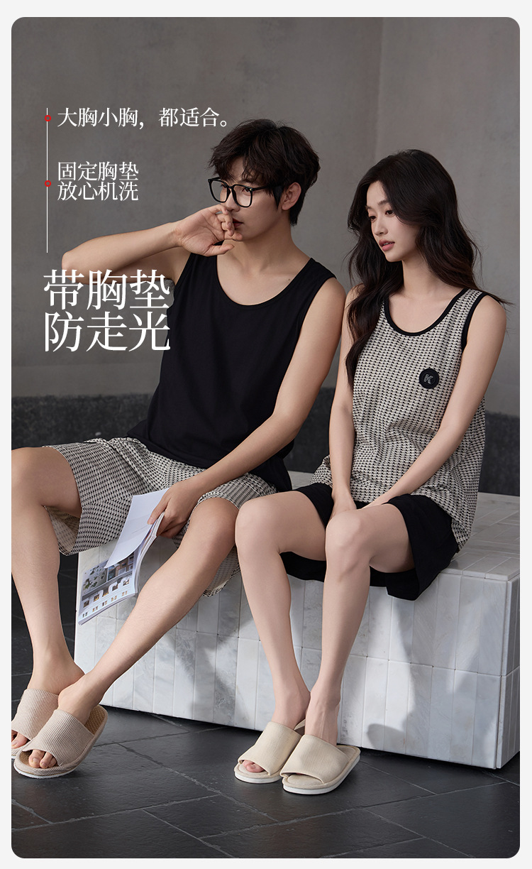 가슴 패드가있는 여성용 모달 커플 잠옷 조끼 반바지 여름 시원한 스포츠 슈트 새로운 남성 홈웨어 얇은스토어 가기