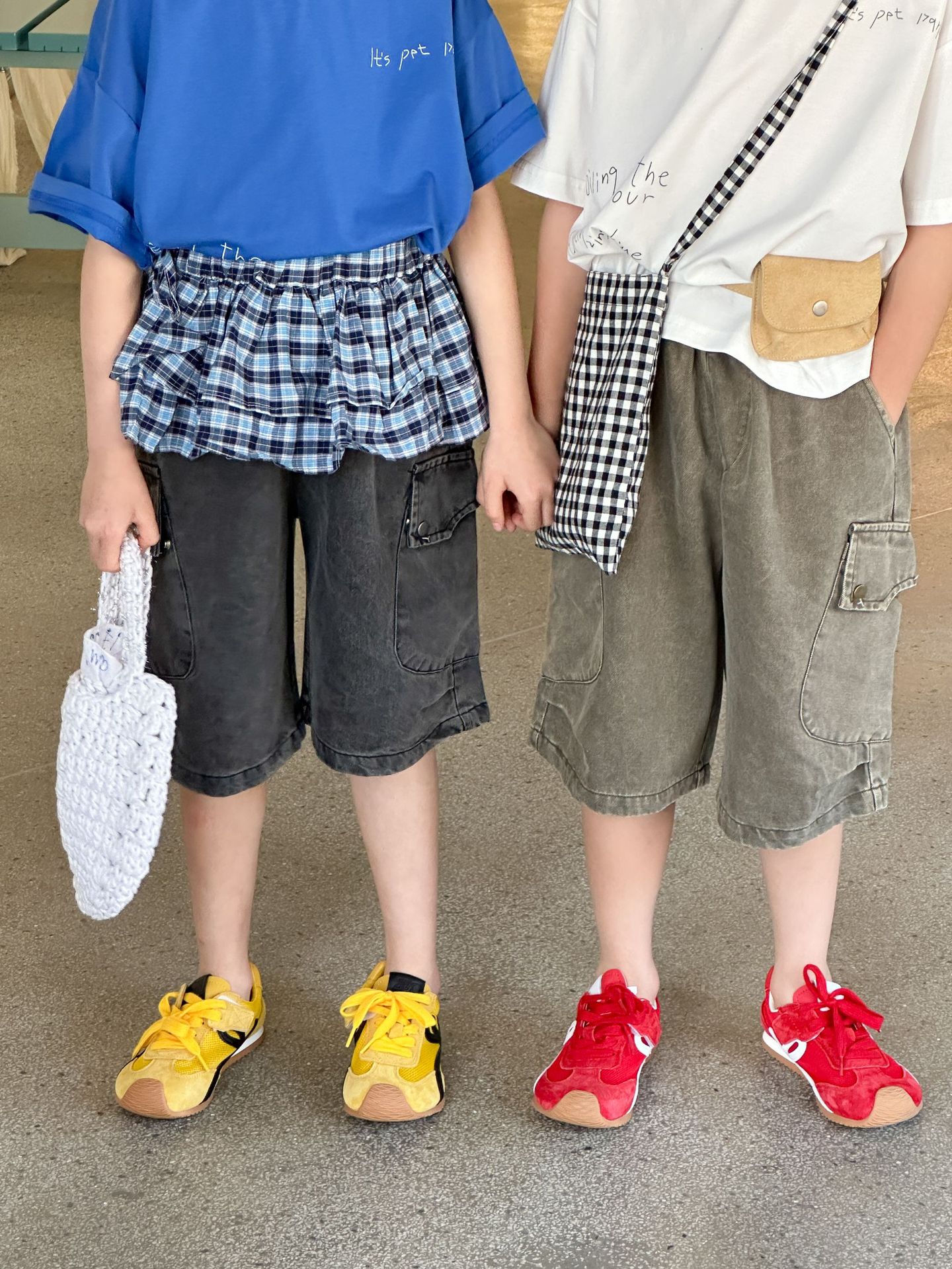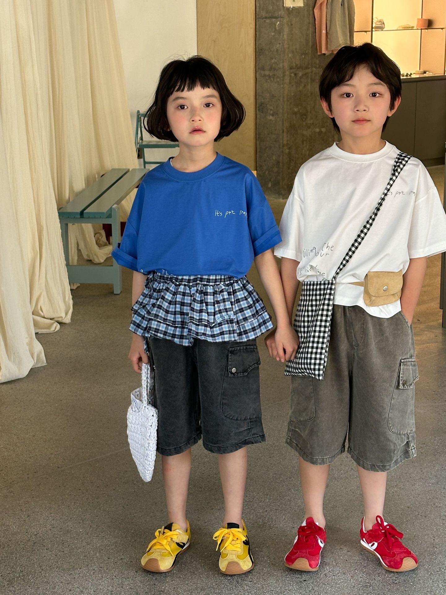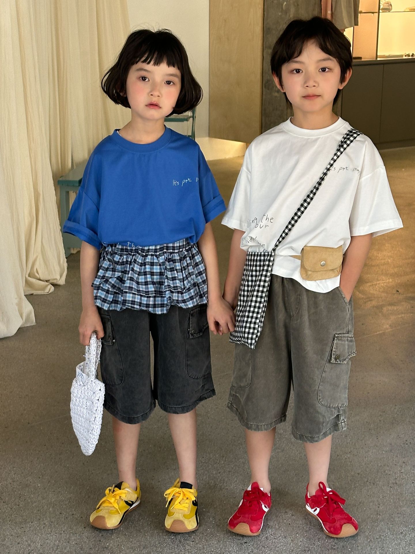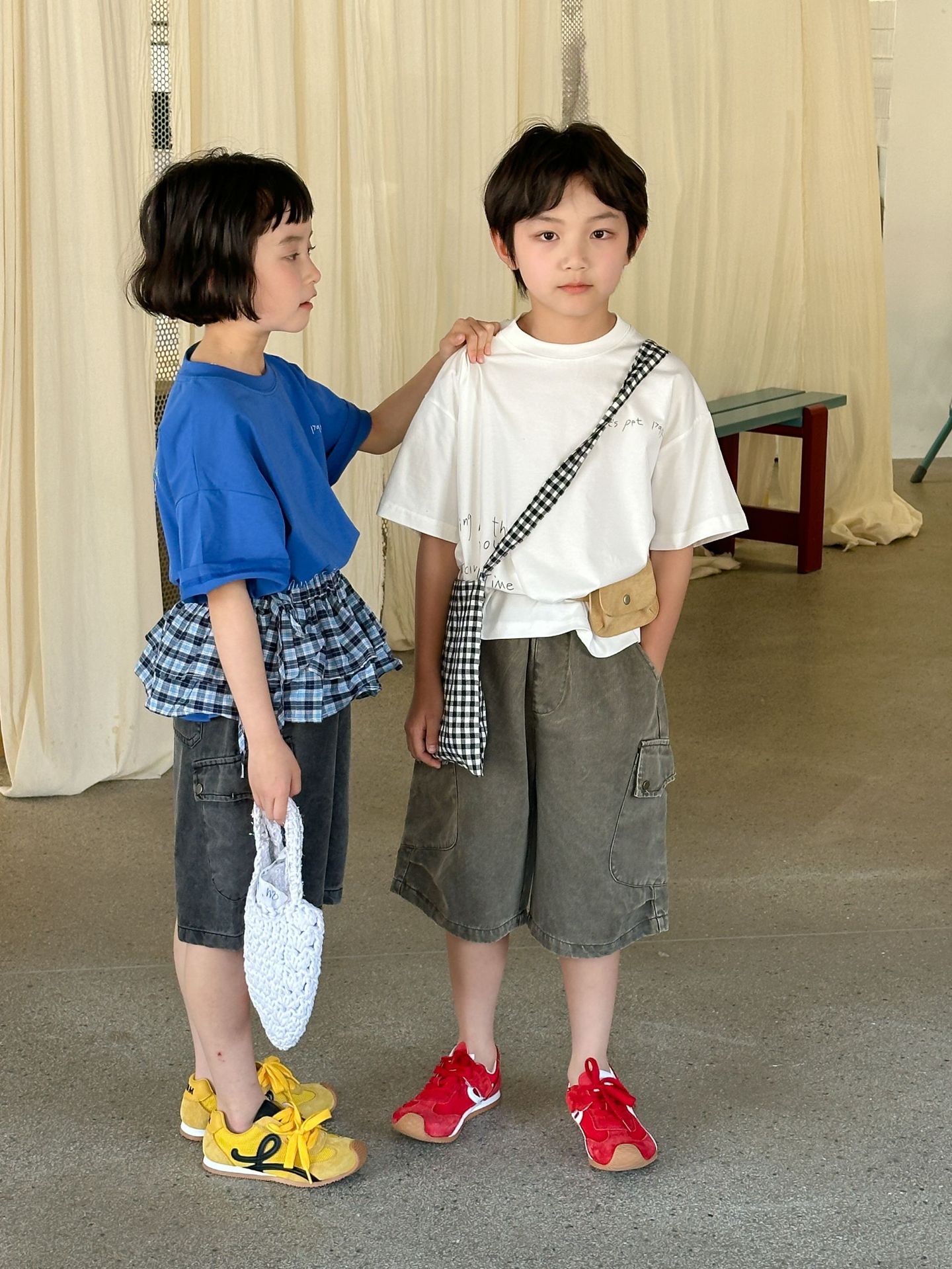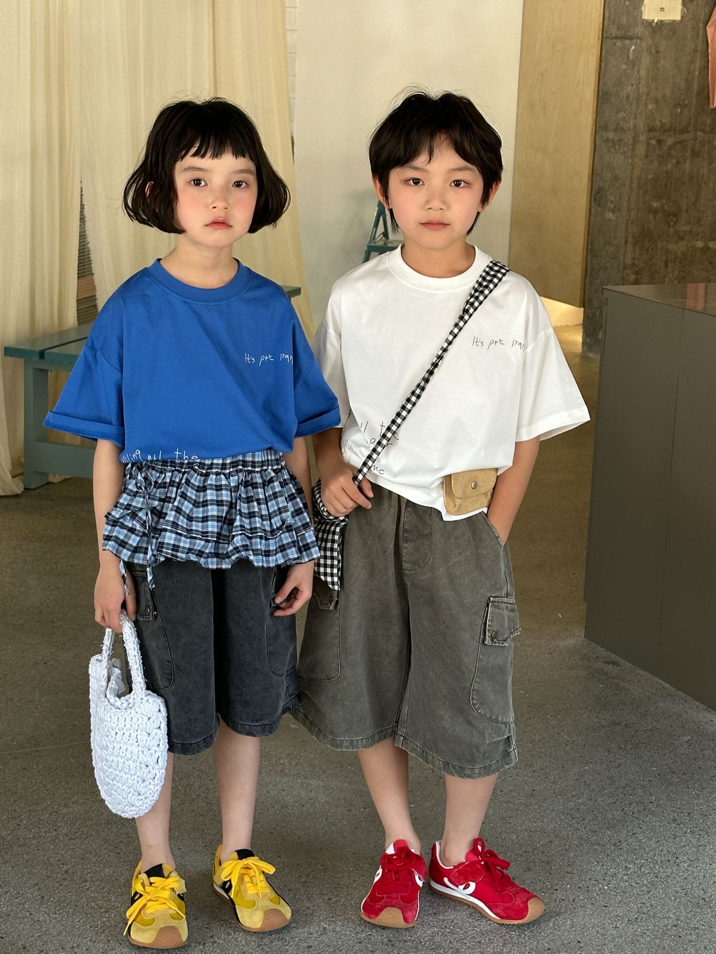 2025년 새로운 여름 한국식 어린이 앞면과 뒷면 프린트 반팔 흰색 사파이어 블루 라운드 넥 루즈 티셔츠 소년 소녀용스토어 가기
