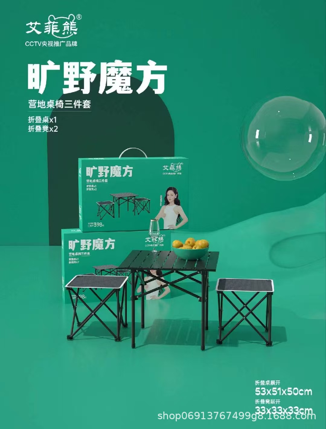 Effie Bear Wilderness 루빅스 큐브 캠프 테이블과 의자 3피스 여행 캠핑 경량 피크닉 테이블 야시장 스톨 바베큐스토어 가기