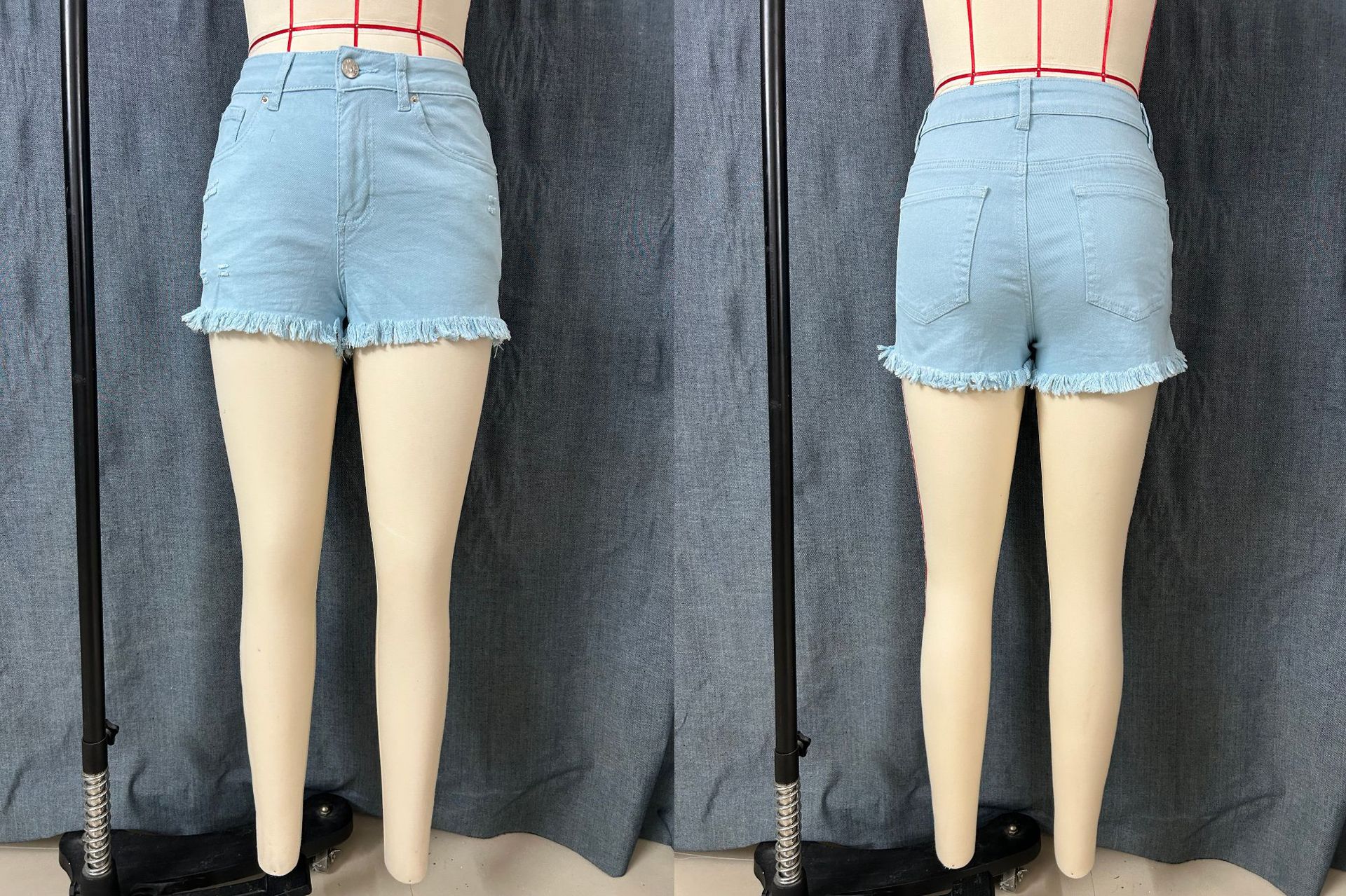 크로스보더 로우웨이스트 솔리드 컬러 여름 데미지 아마존 데님 반바지 여성 캐주얼 레트로 로우엣지 청바지 독립 사이트