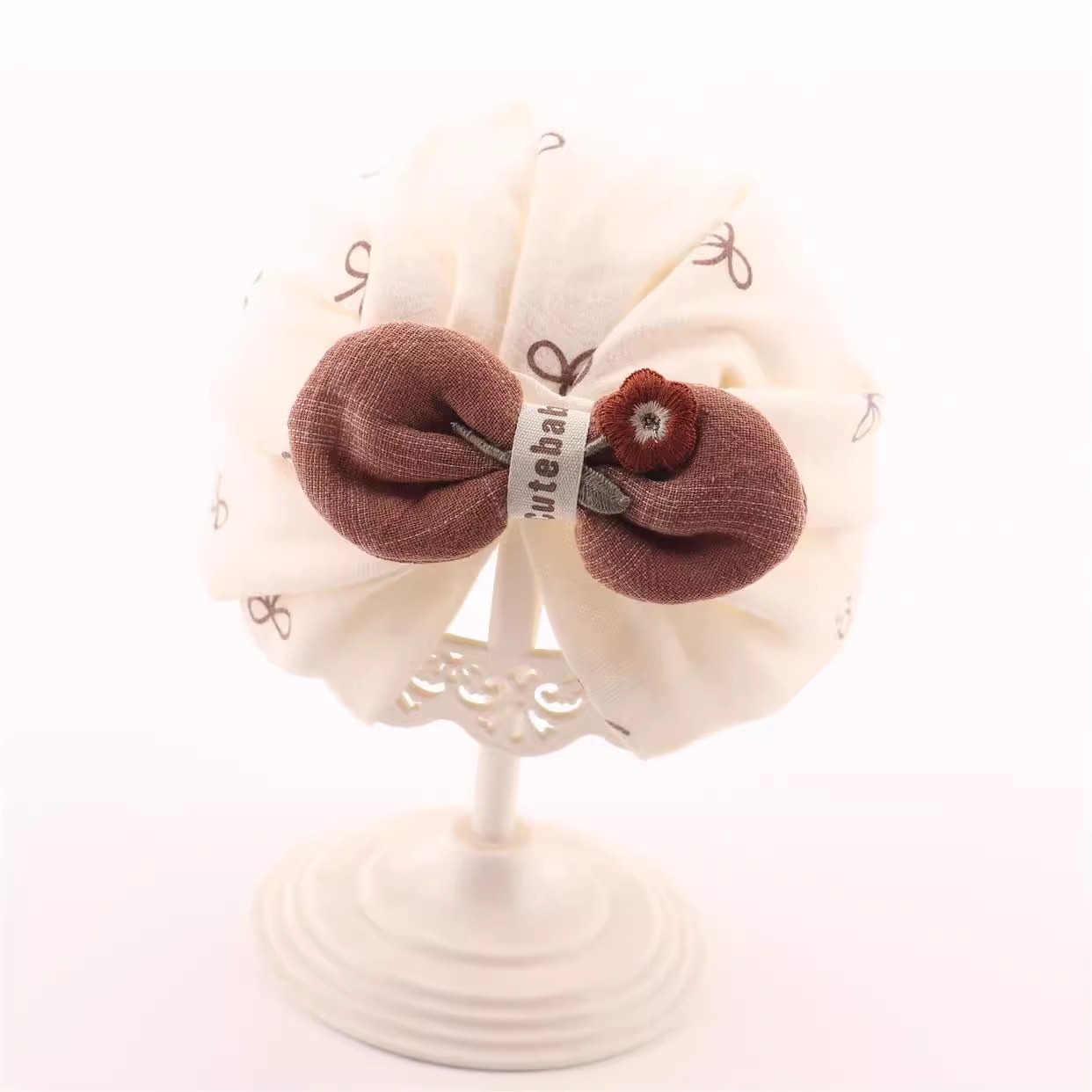 • 오프화이트 Nj 풀 매듭 로제트 헤드스카프 모자