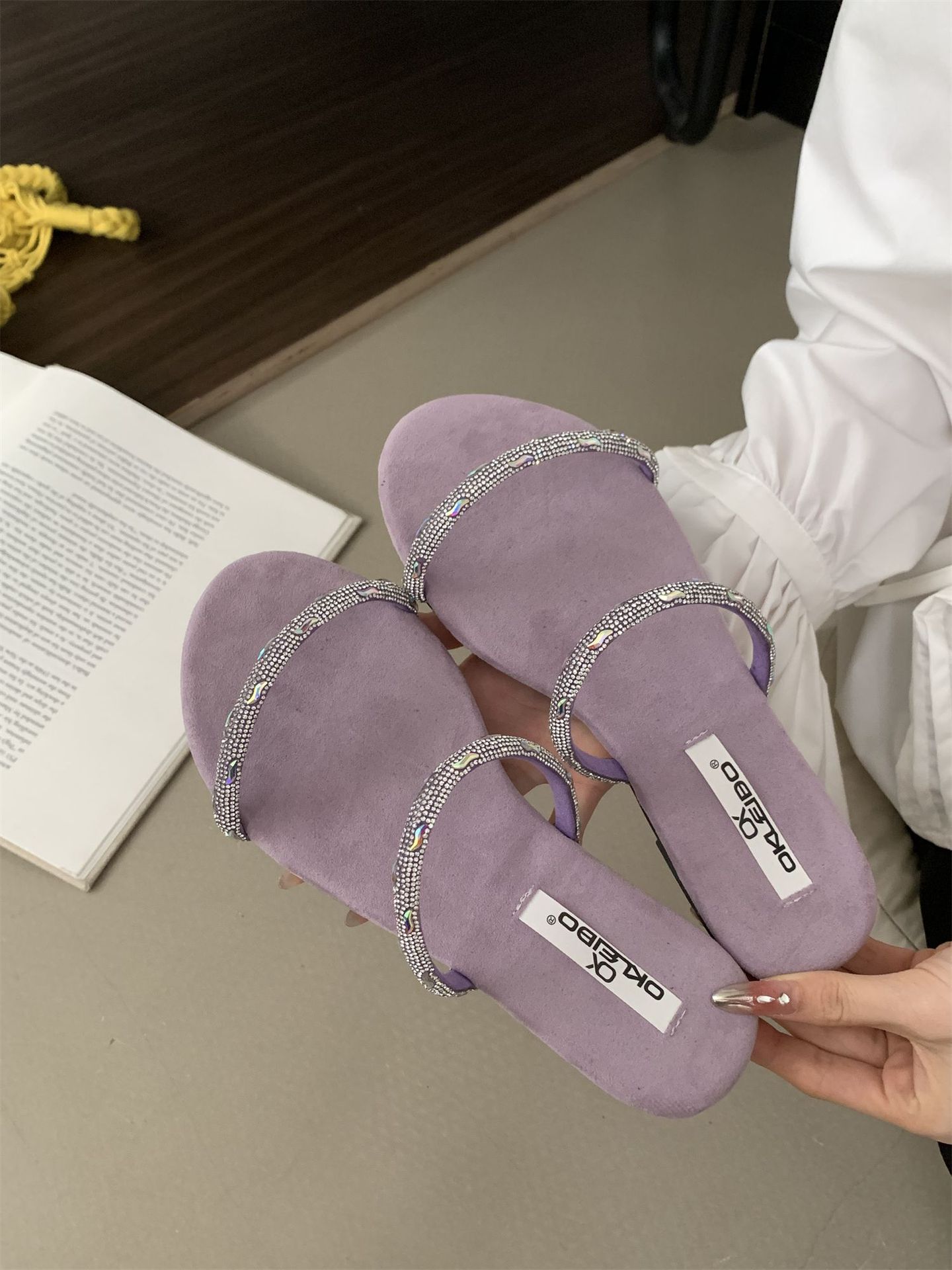 플랫 바닥 라인스톤 패션 샌들 2025 여름 프렌치 스위트 옐로우 오픈 토우 홀리데이 비치 샌들 여성 신발스토어 가기