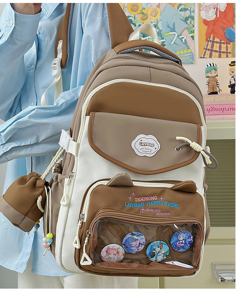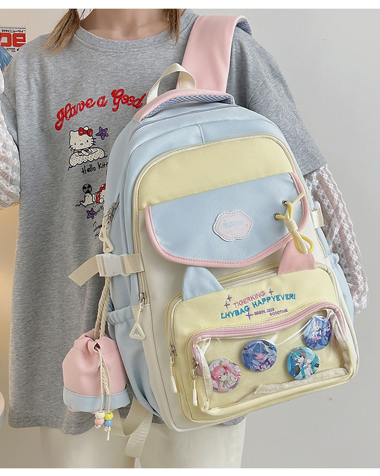 하이 얀 밸류 인즈 스타일 스쿨백 중학교 소녀 배낭 고등학생 대용량 귀여운 통증 가방 도파민 배낭
