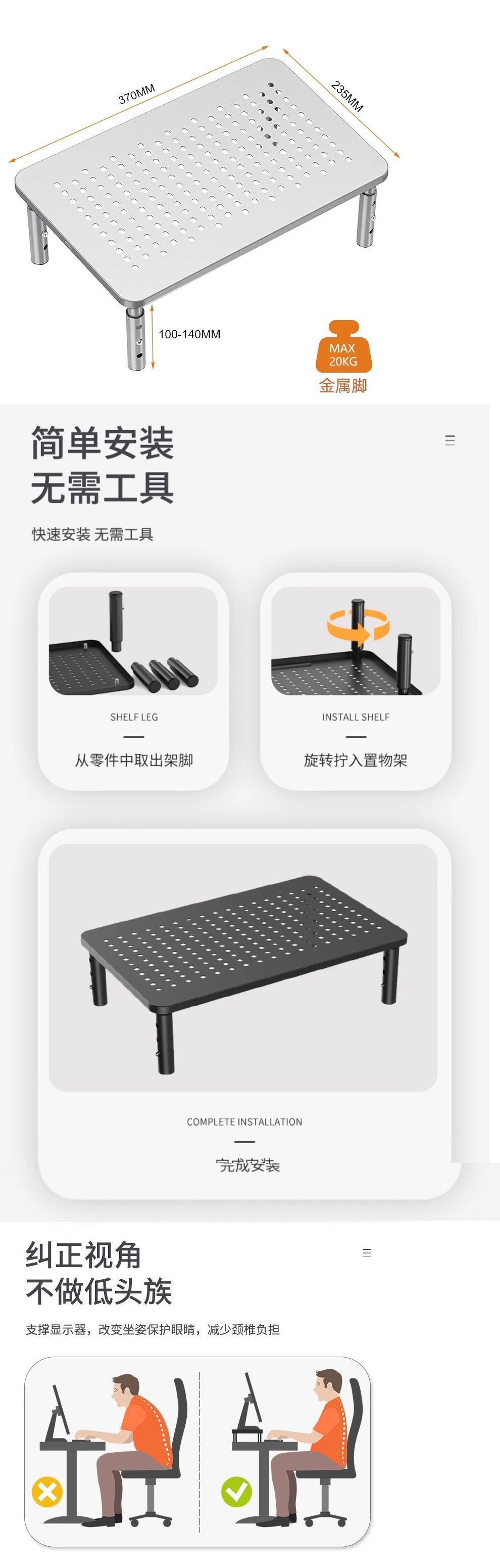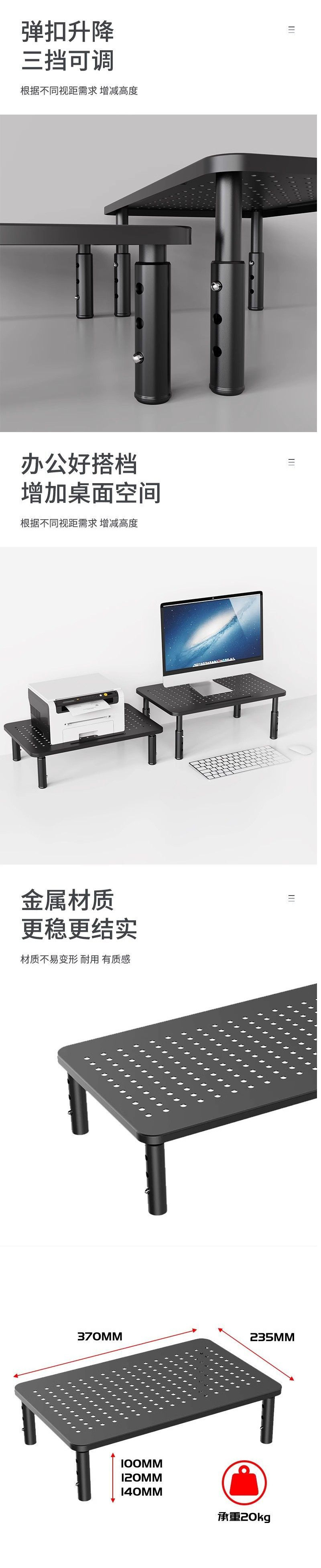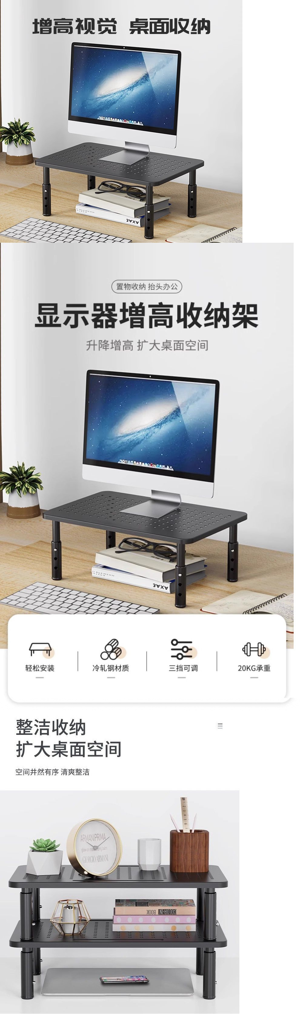 모니터 컴퓨터 스탠드 보관 데스크탑 스토리지 랙 리프팅 노트북 데스크탑 베이스 랙 높이 증가