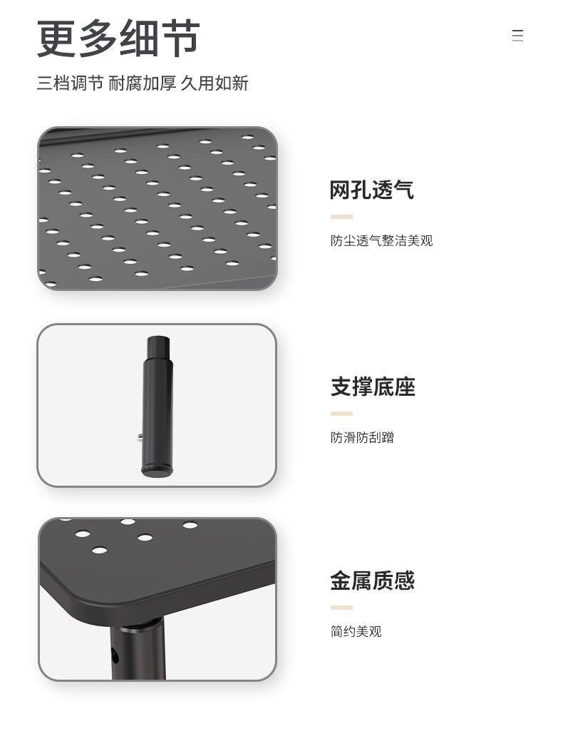 • 클래식 매트 블랙 하이 스탠드 - [3단계 조절 가능, 두꺼워지고 두꺼워진 소재]