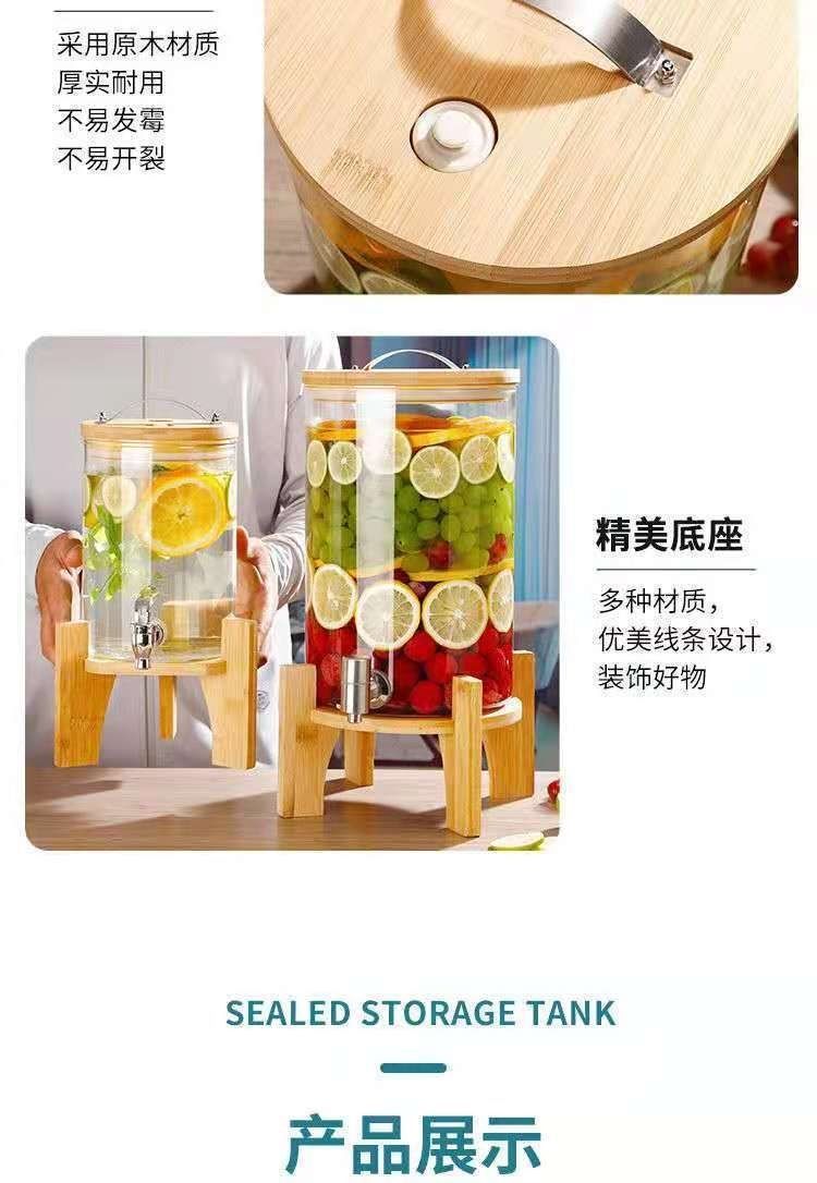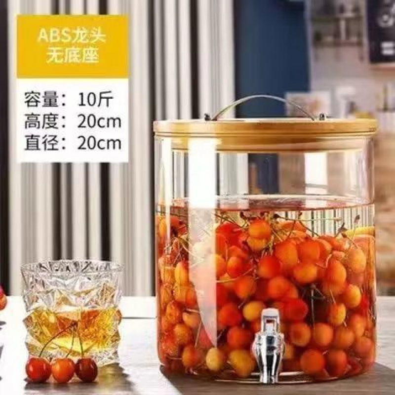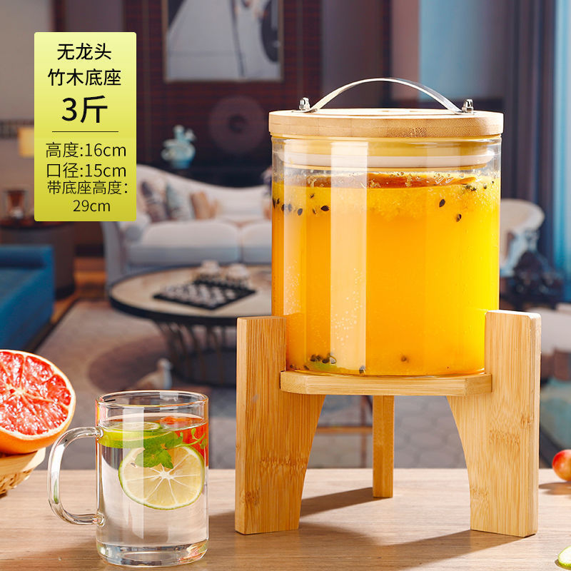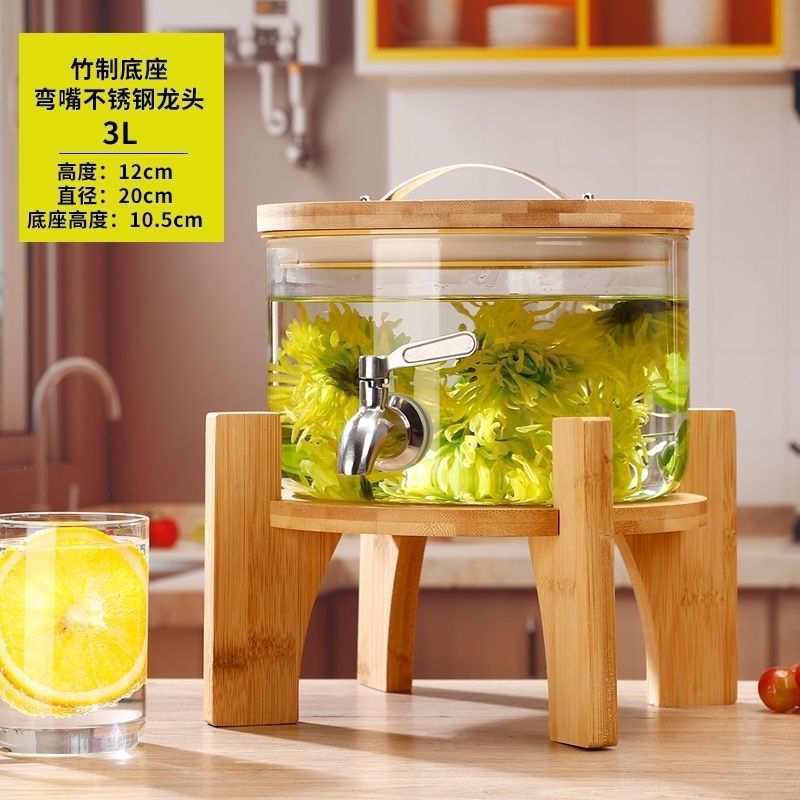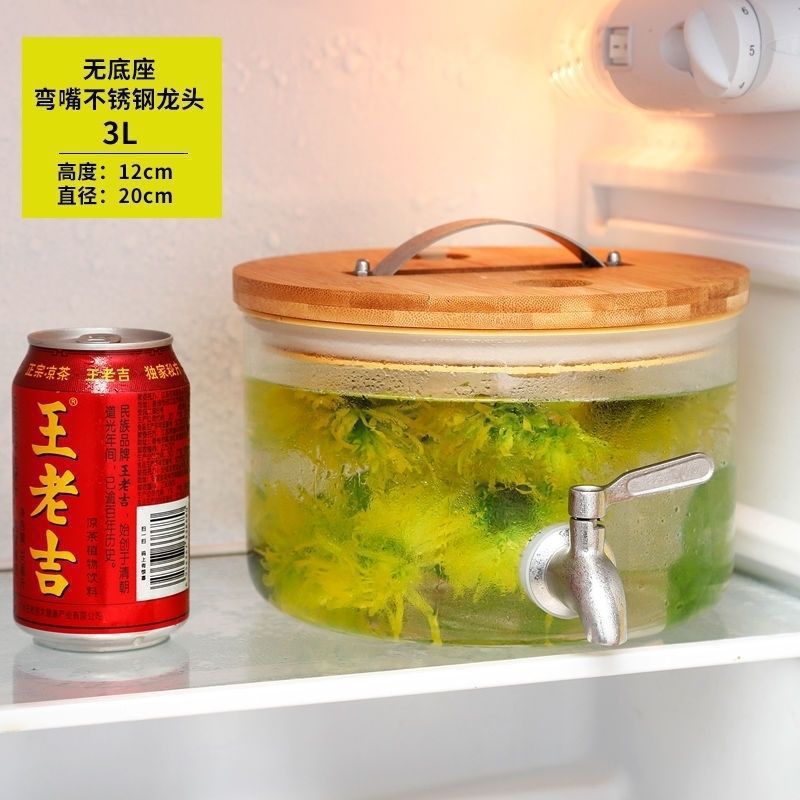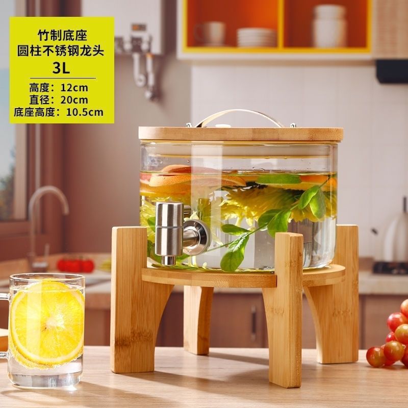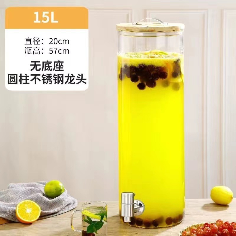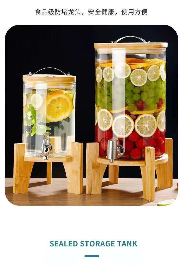 수도꼭지가있는 고온 방지 냉수병 유리 냉수통 가정용 대용량 과일 차 통 상업용 셀프 서비스 통 냉장고