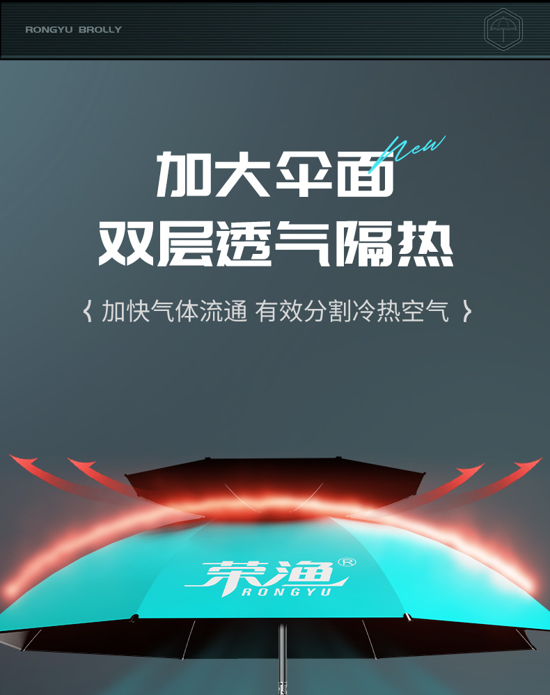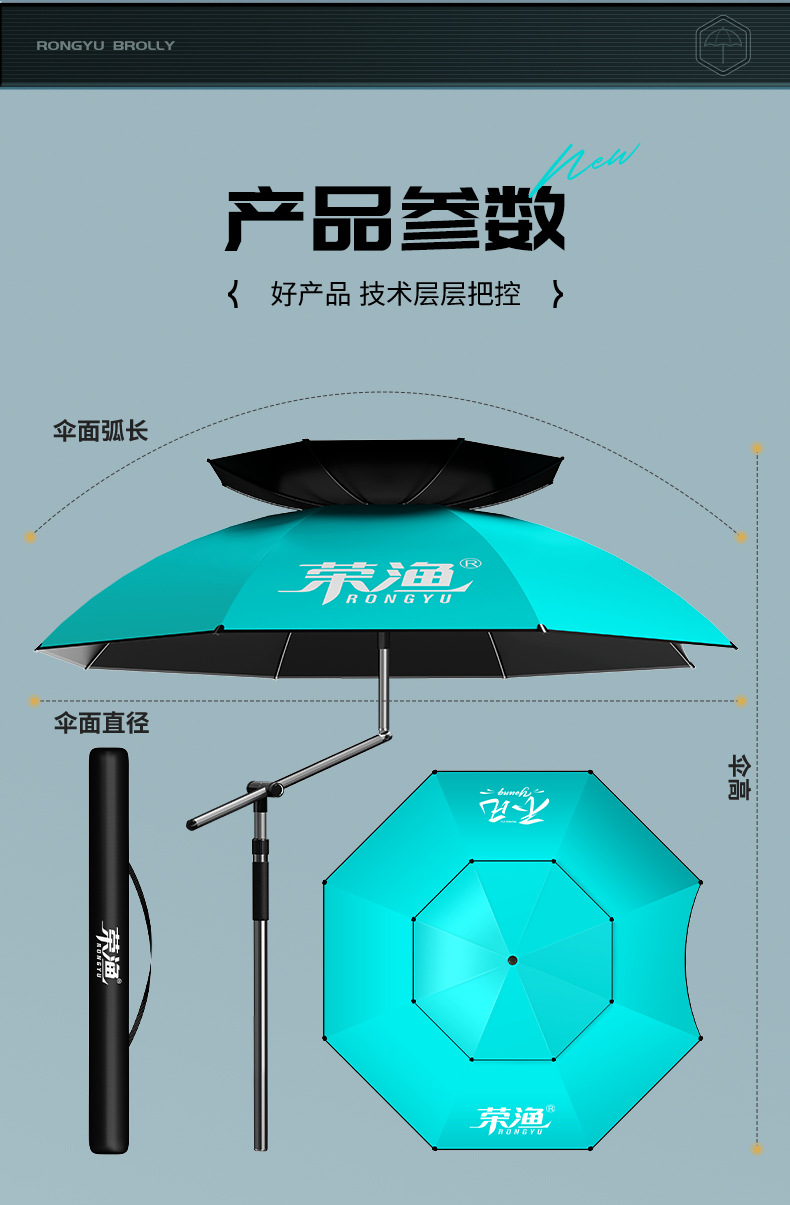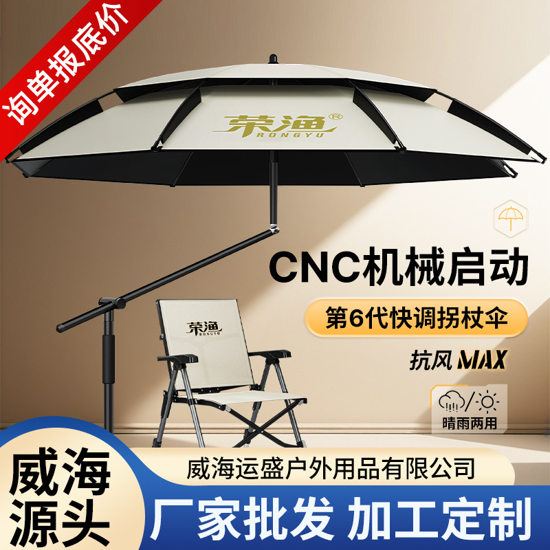 Rongyu의 새로운 낚시 우산, 범용 야외 자외선 차단, 차양 및 방수, 대형 낚시 우산, 강한 바람 방지 낚시 특수 지팡이 우산