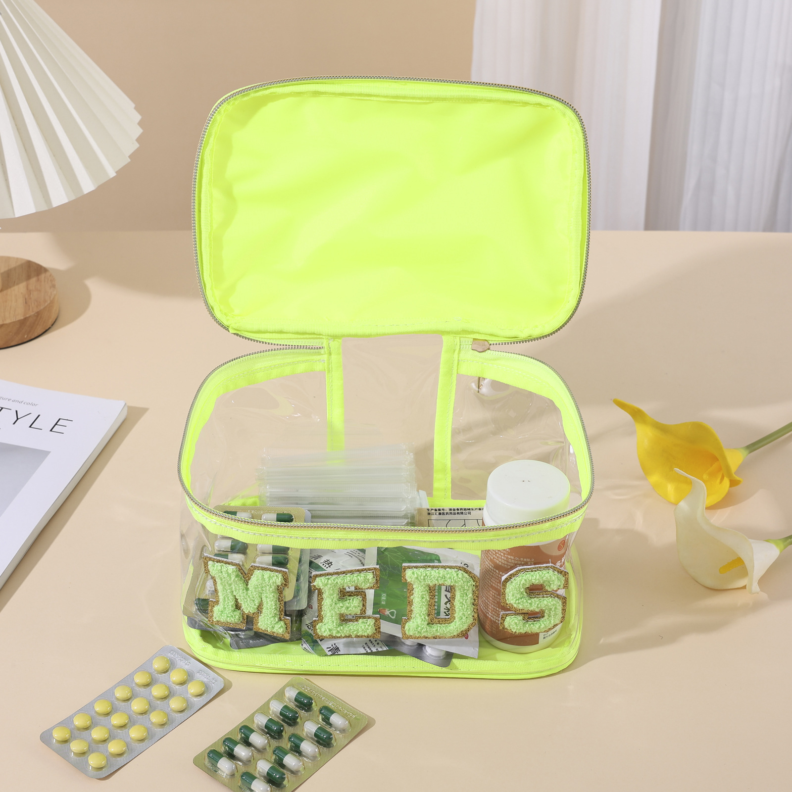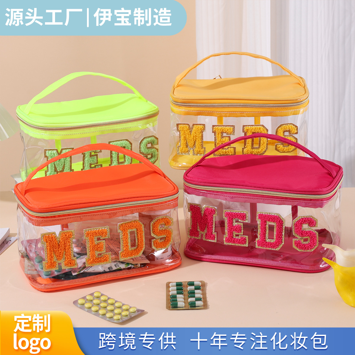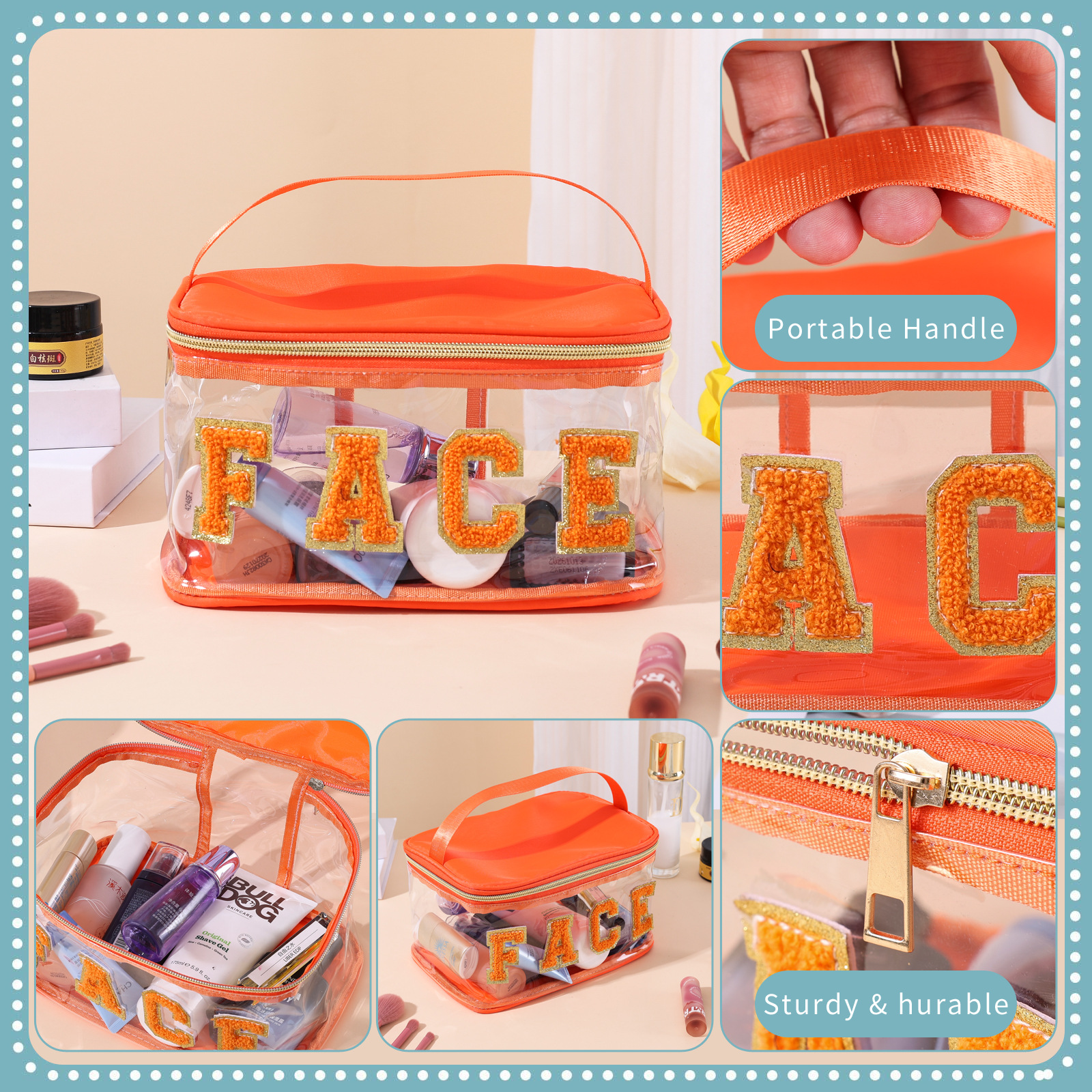 아마존 국경 간 자수 보관 가방 PVC 투명 문자 화장품 가방 여행 세면 용품 가방 대용량 화장품 가방스토어 가기
