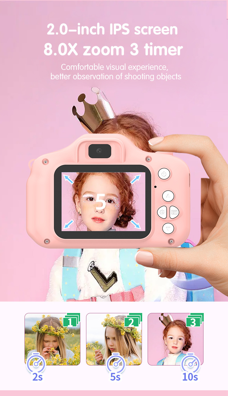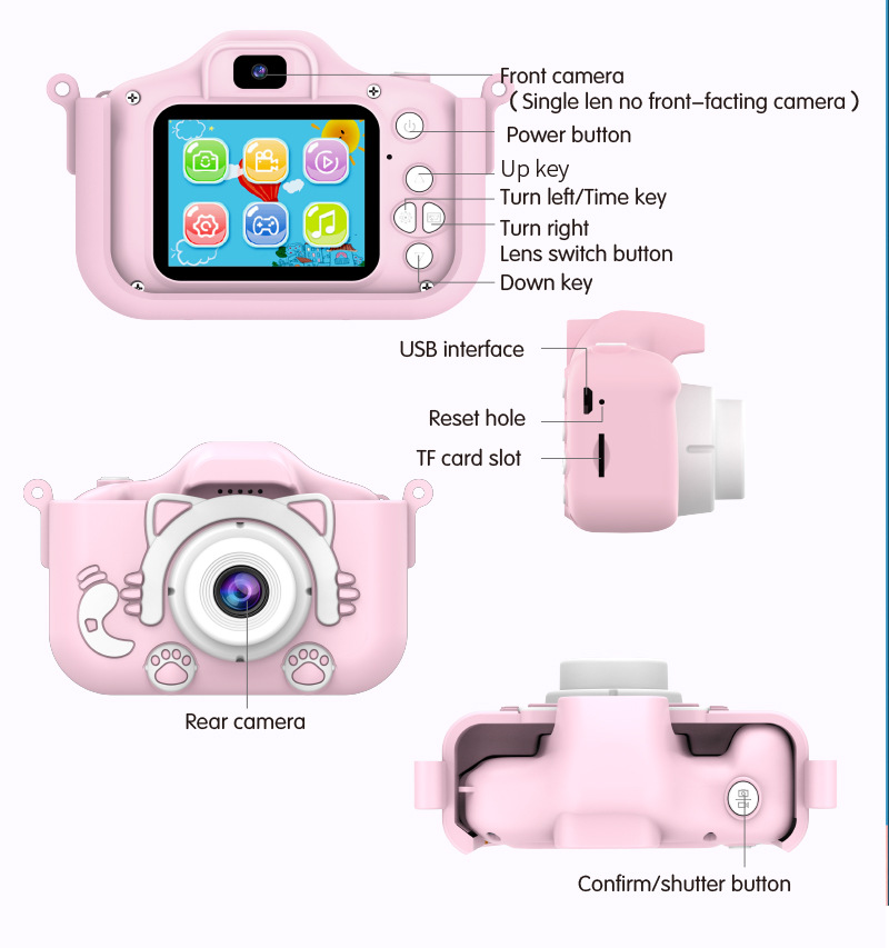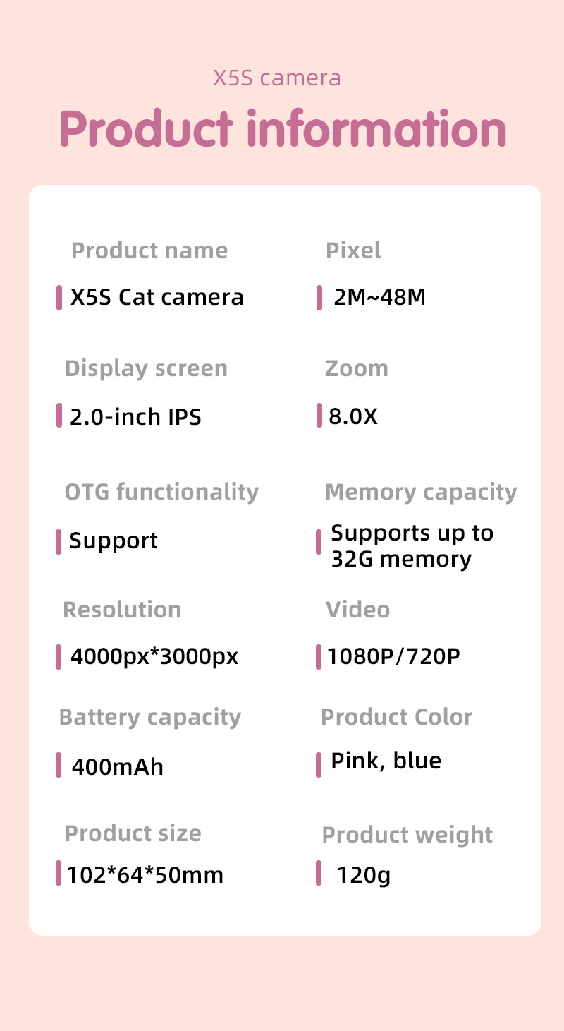 X5S 소시리즈 어린이 카메라, 귀엽고 재미있는 소형 카메라, 전후면 듀얼 카메라 장난감 미니 카메라
