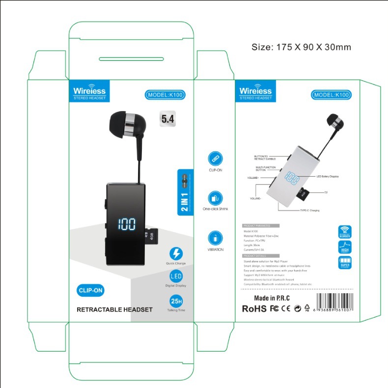 국경 간 개인 모델 K100 라발리에 블루투스 헤드셋 TF 카드 초장기 배터리 수명 디지털 디스플레이 무선 범용 스포츠스토어 가기