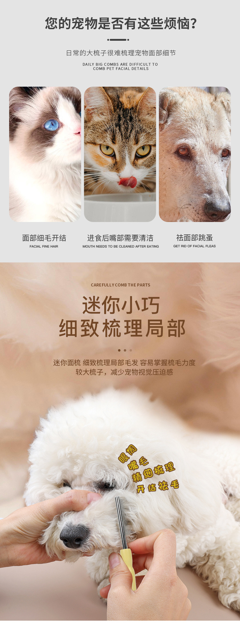 애완 동물 빗, 고양이와 개 얼굴 빗, 단단한 나무 미니 얼굴 빗, 애완 동물 얼굴 디테일 빗, 애완 동물 용품 도매스토어 가기