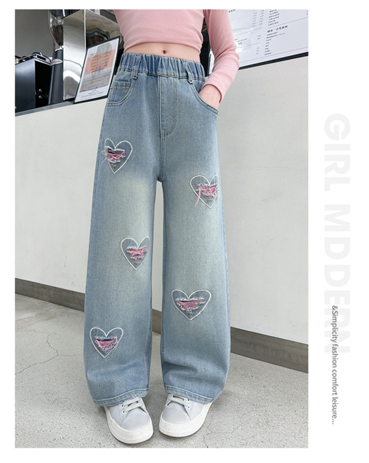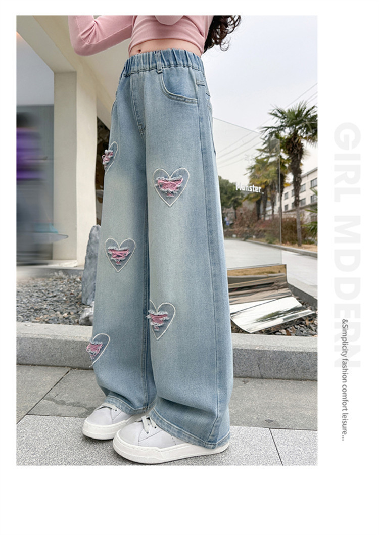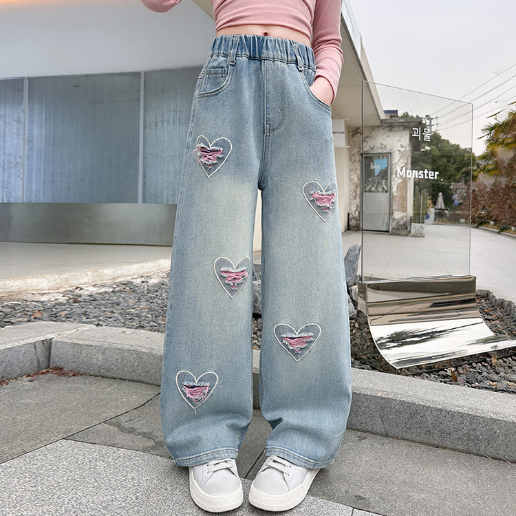 여아 바지 2025 봄 가을 신작 봄 의류 아동 스트레이트 와이드 팬츠 여아 청바지 중학생