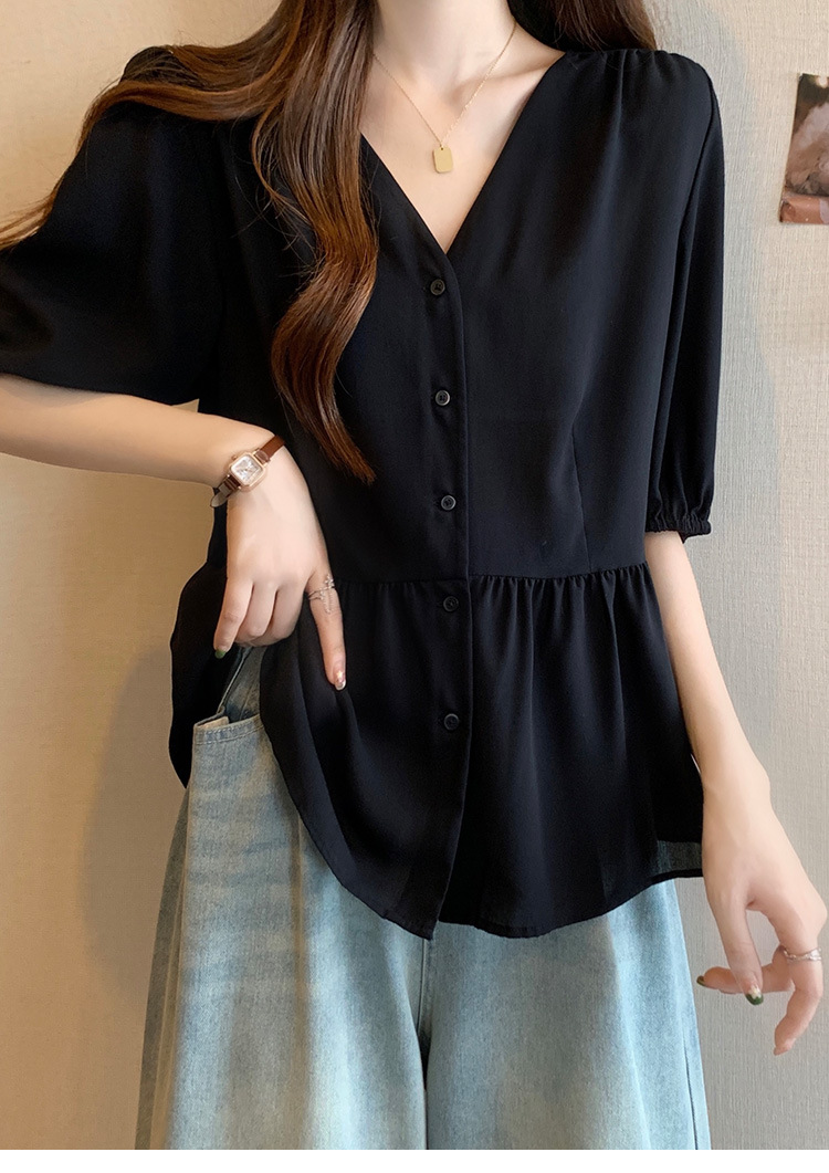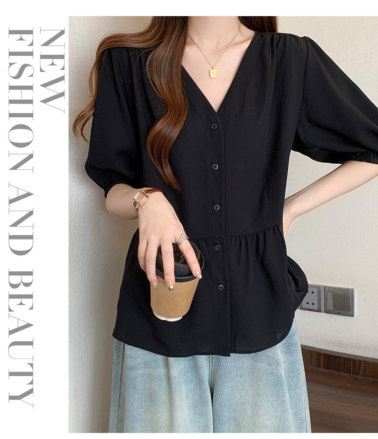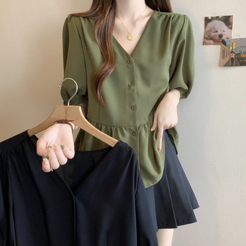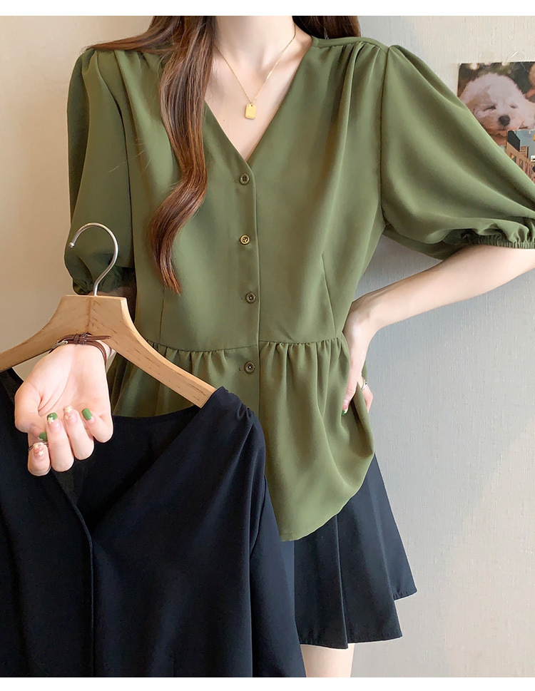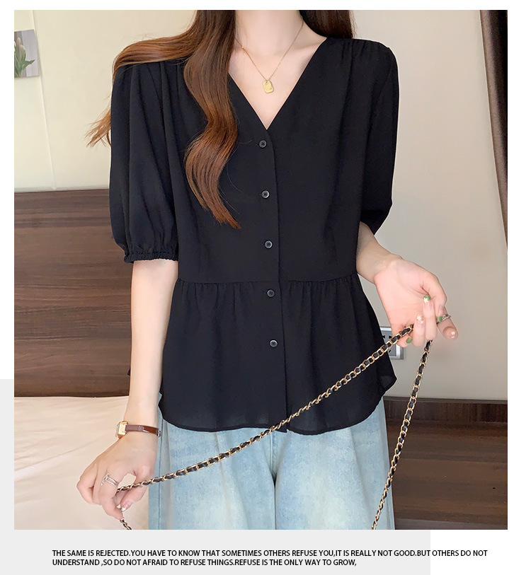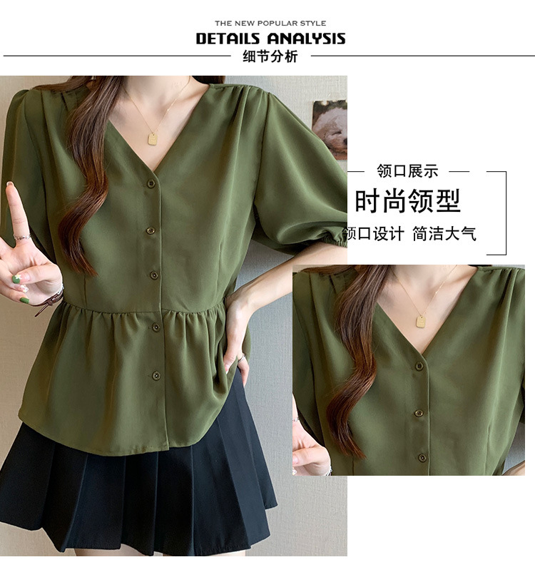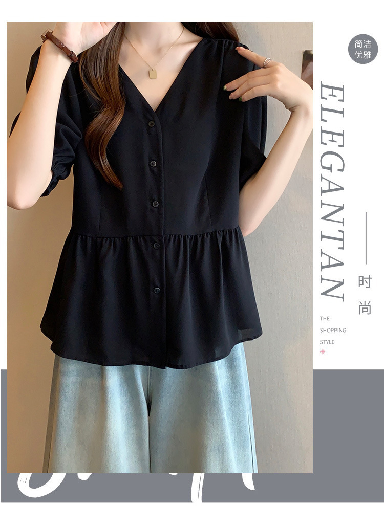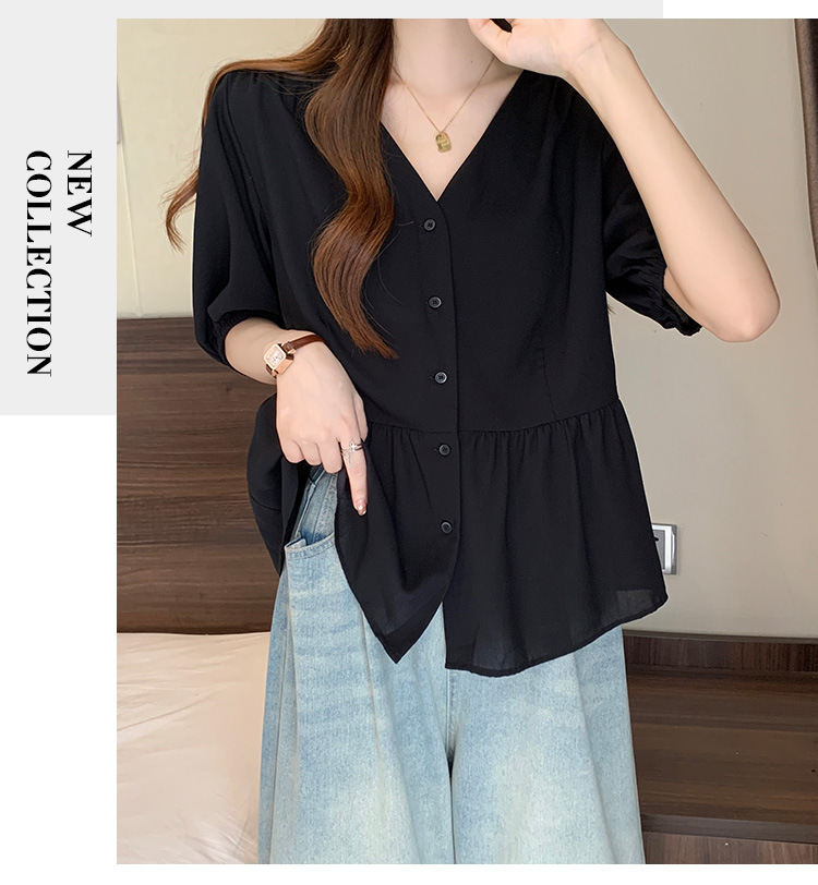 2025 여름 새로운 통근 퍼프 소매 달콤한 셔츠 짧은 소매 플러스 사이즈 통통녀 느슨한 쉬폰 탑스토어 가기
