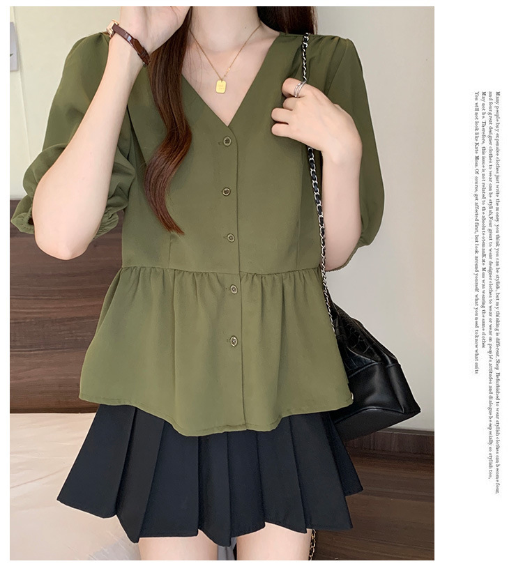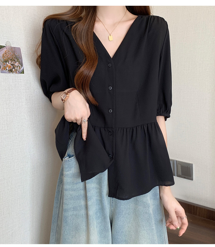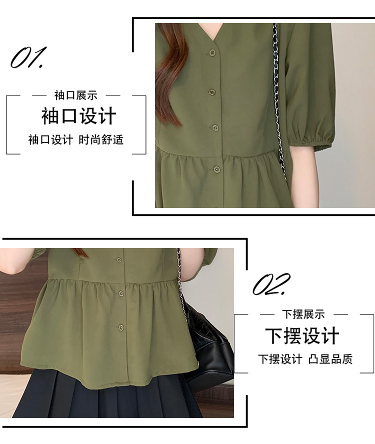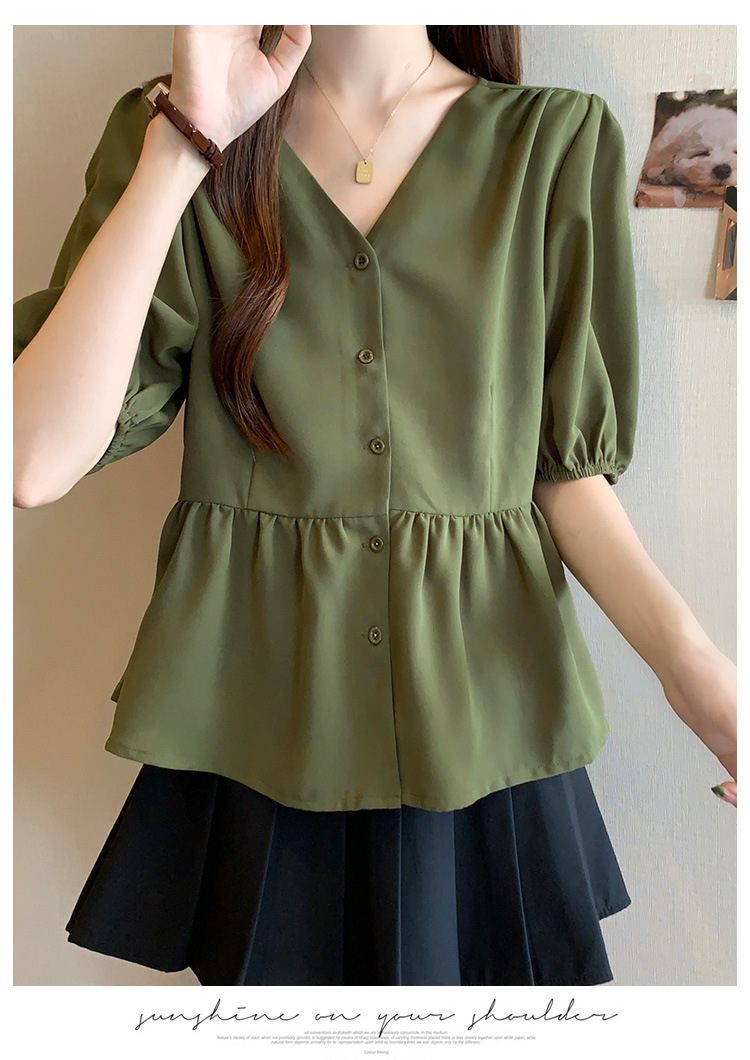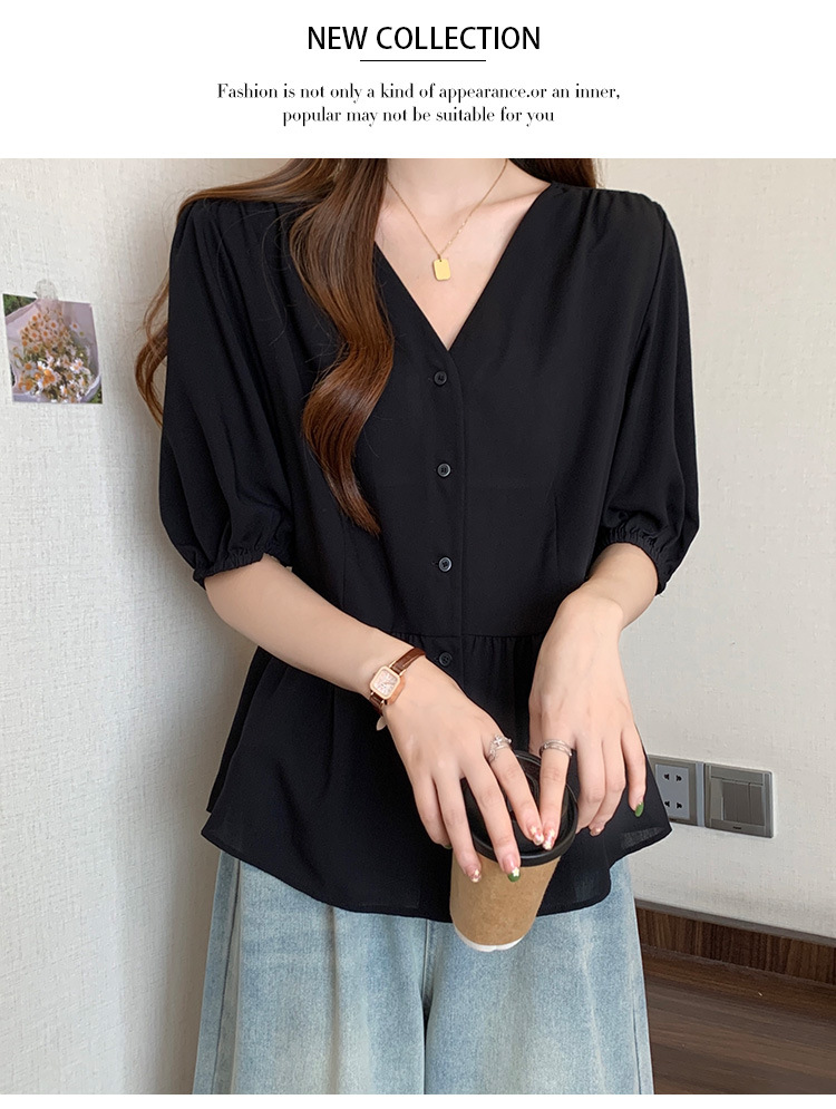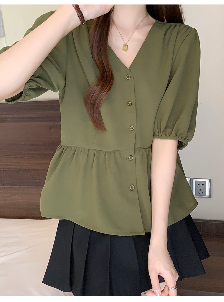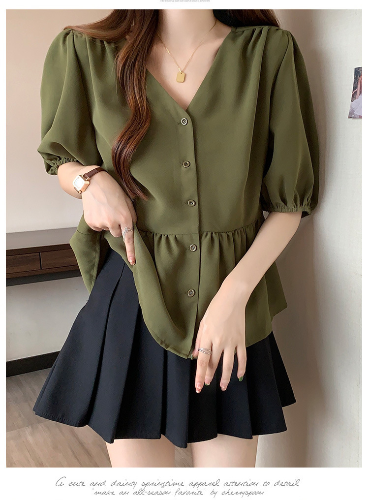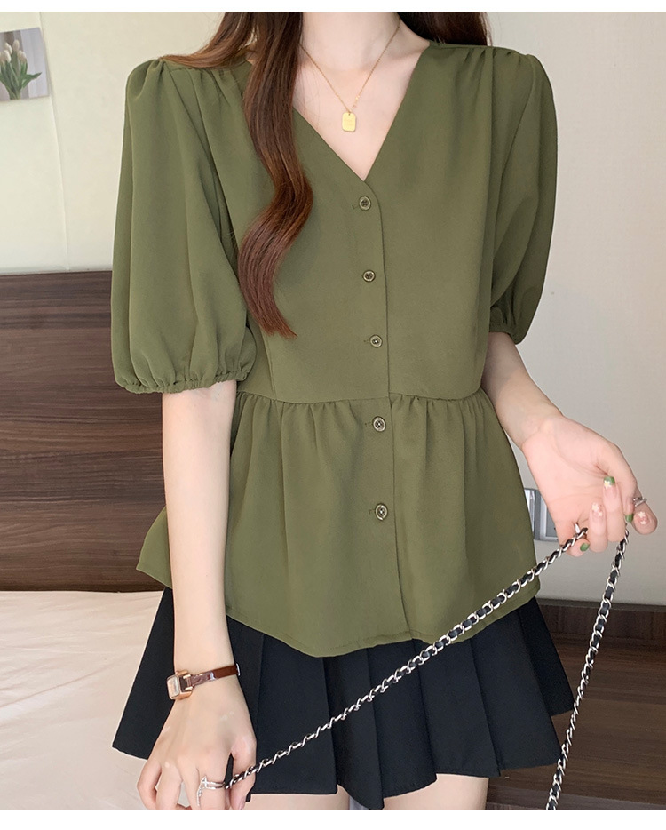 2025 여름 새로운 통근 퍼프 소매 달콤한 셔츠 짧은 소매 플러스 사이즈 통통녀 느슨한 쉬폰 탑스토어 가기