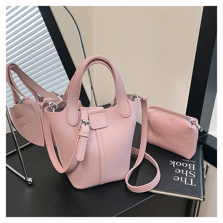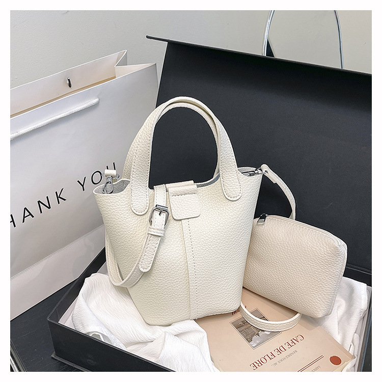 한국어 버전 틈새 PU 부드러운 가죽 핸드백 버킷 백 여성 2025 여름 신작 캐주얼 숄더백 크로스 바디 백