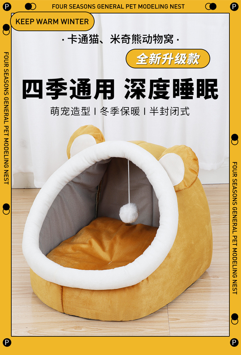 반밀폐형 애완동물 침대, 겨울철 고양이 보온 침대, 탈부착 및 세탁 가능한 애완동물 침대 매트, 강아지 침대, 두꺼운 보온재스토어 가기