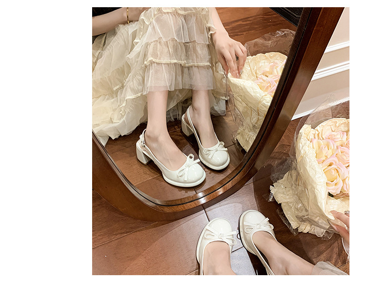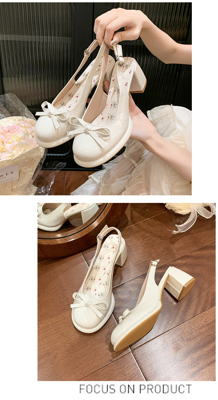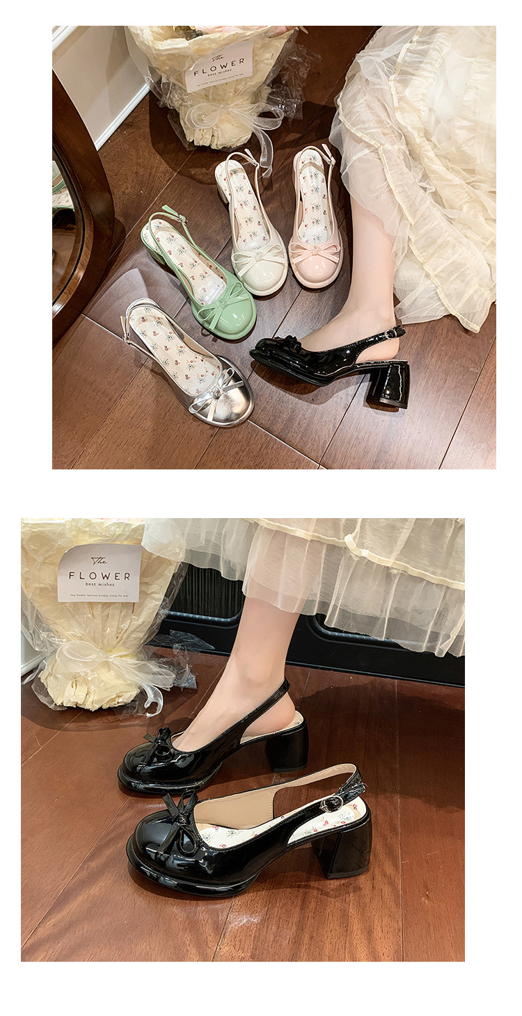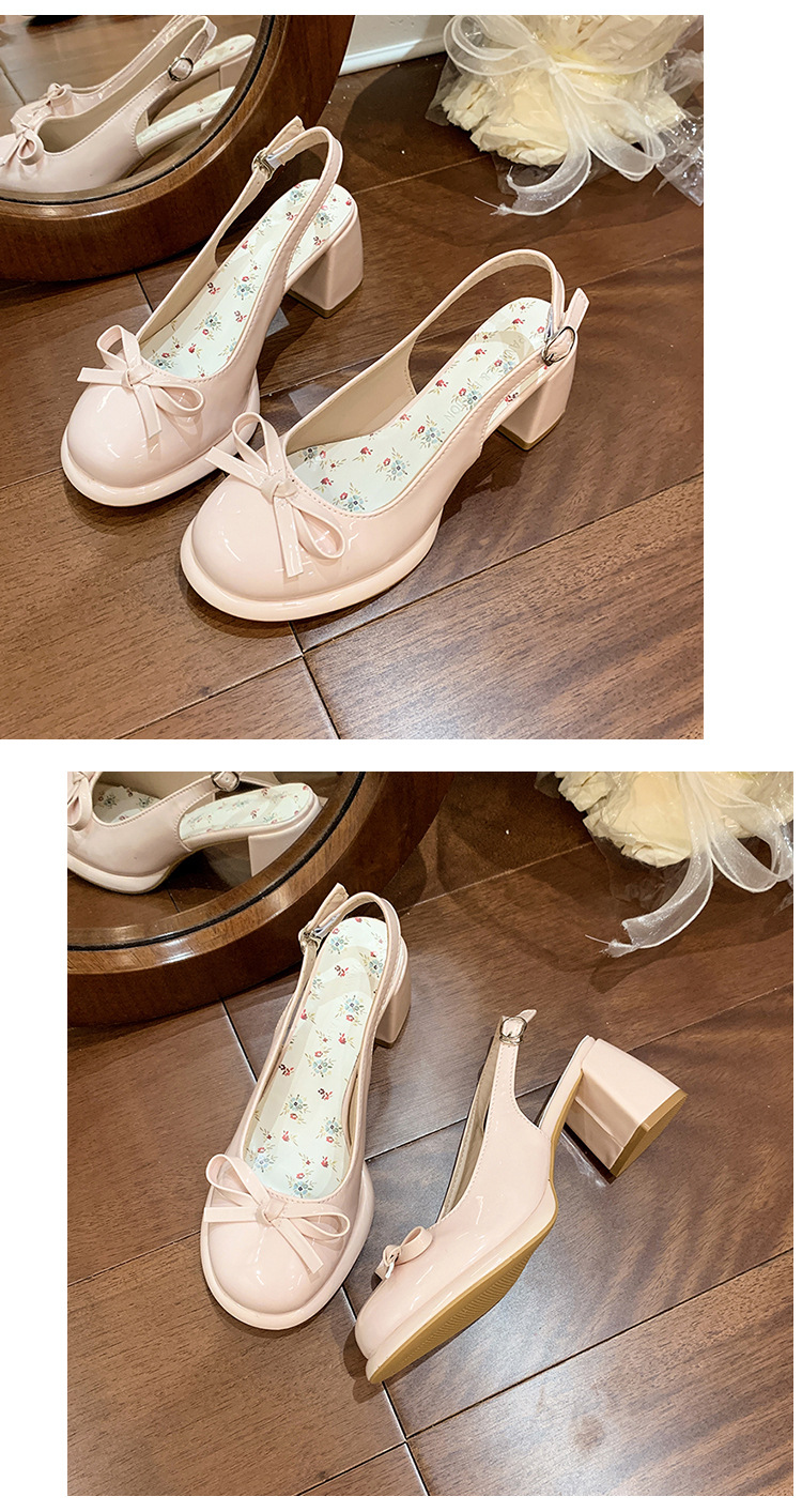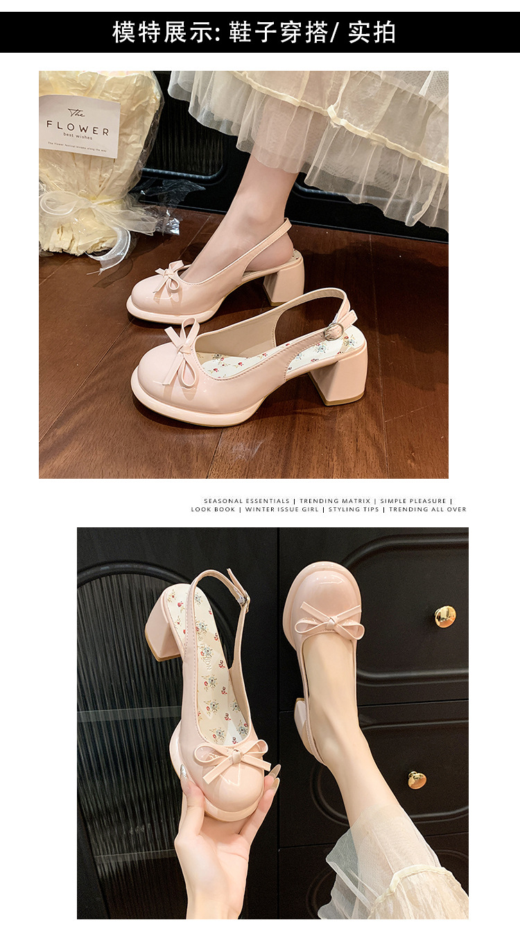 원피스 요정 스타일 활 하이힐 패션 샌들 여성 2025 년 여름 새로운 프랑스 스타일 두꺼운 발가락 싱글 레이어 신발스토어 가기