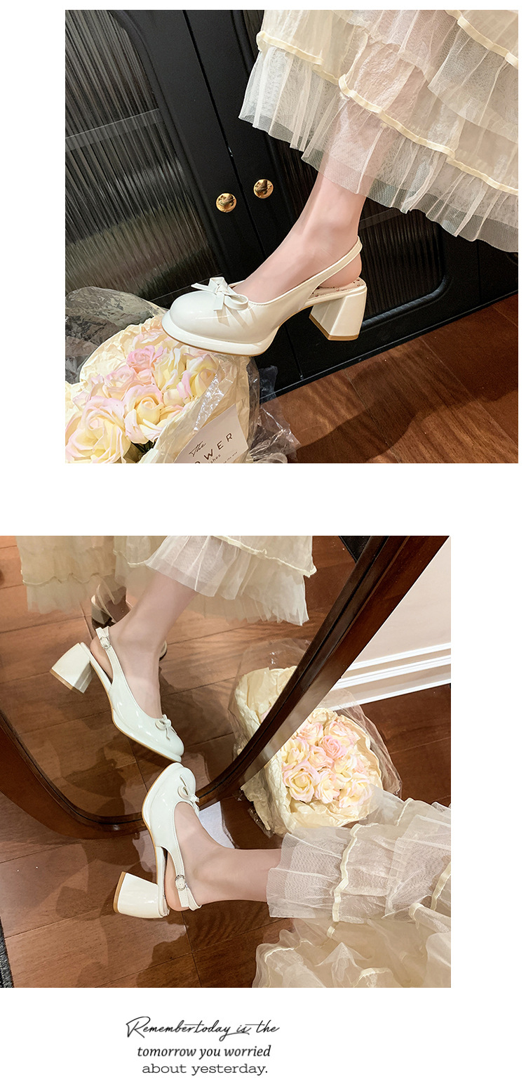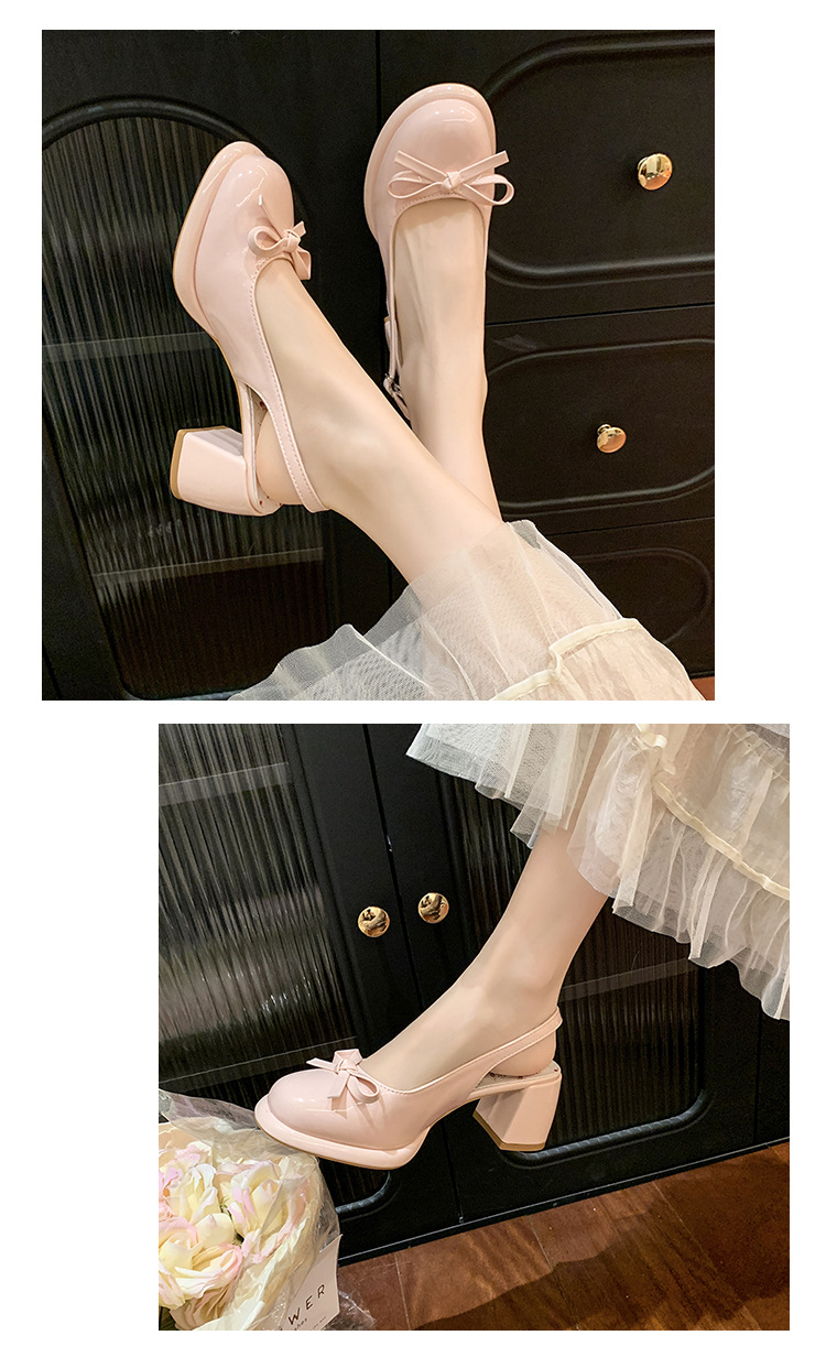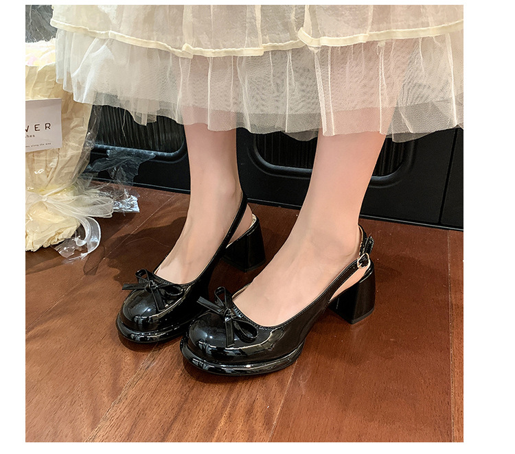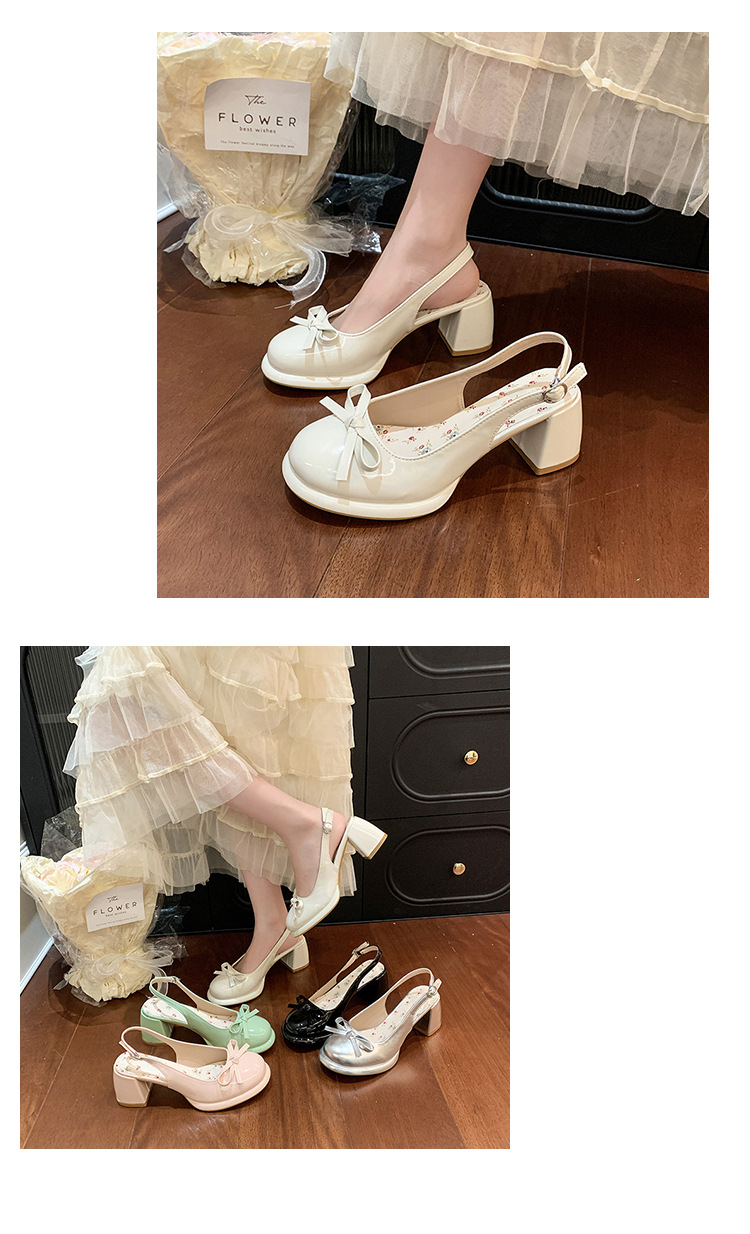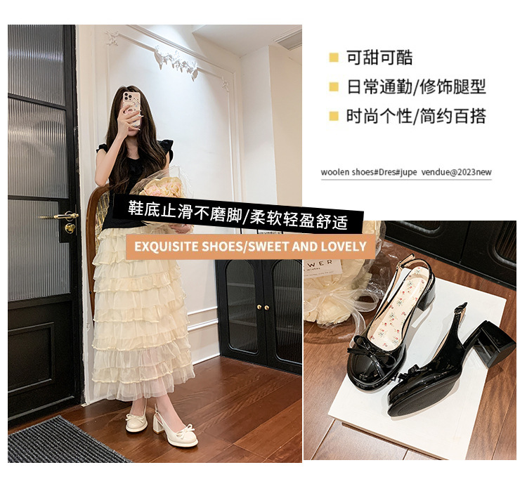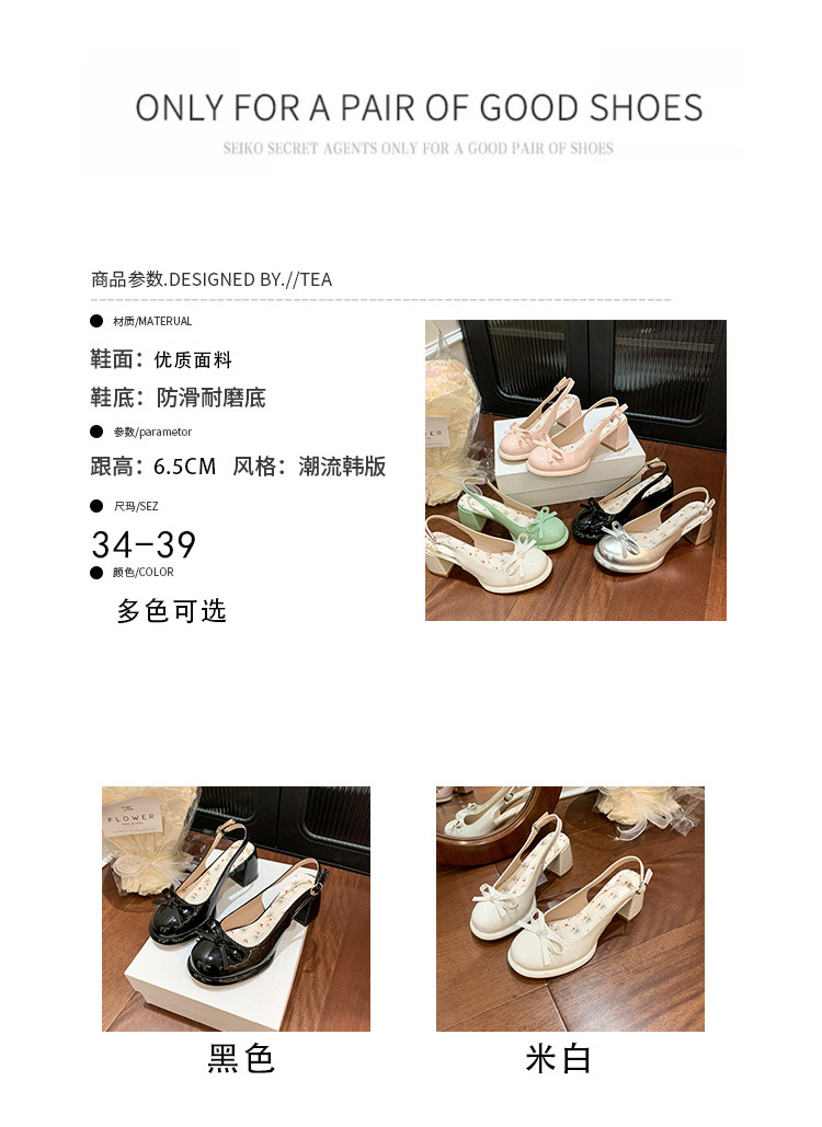 원피스 요정 스타일 활 하이힐 패션 샌들 여성 2025 년 여름 새로운 프랑스 스타일 두꺼운 발가락 싱글 레이어 신발스토어 가기