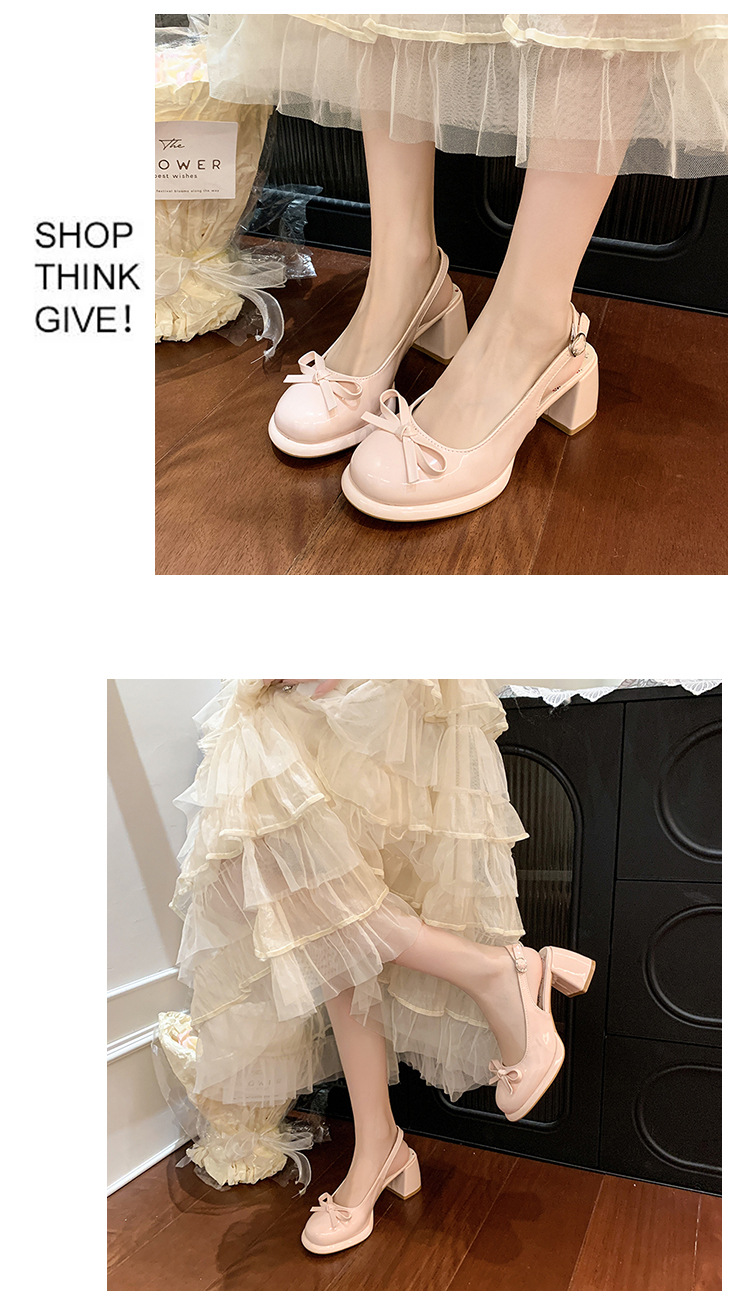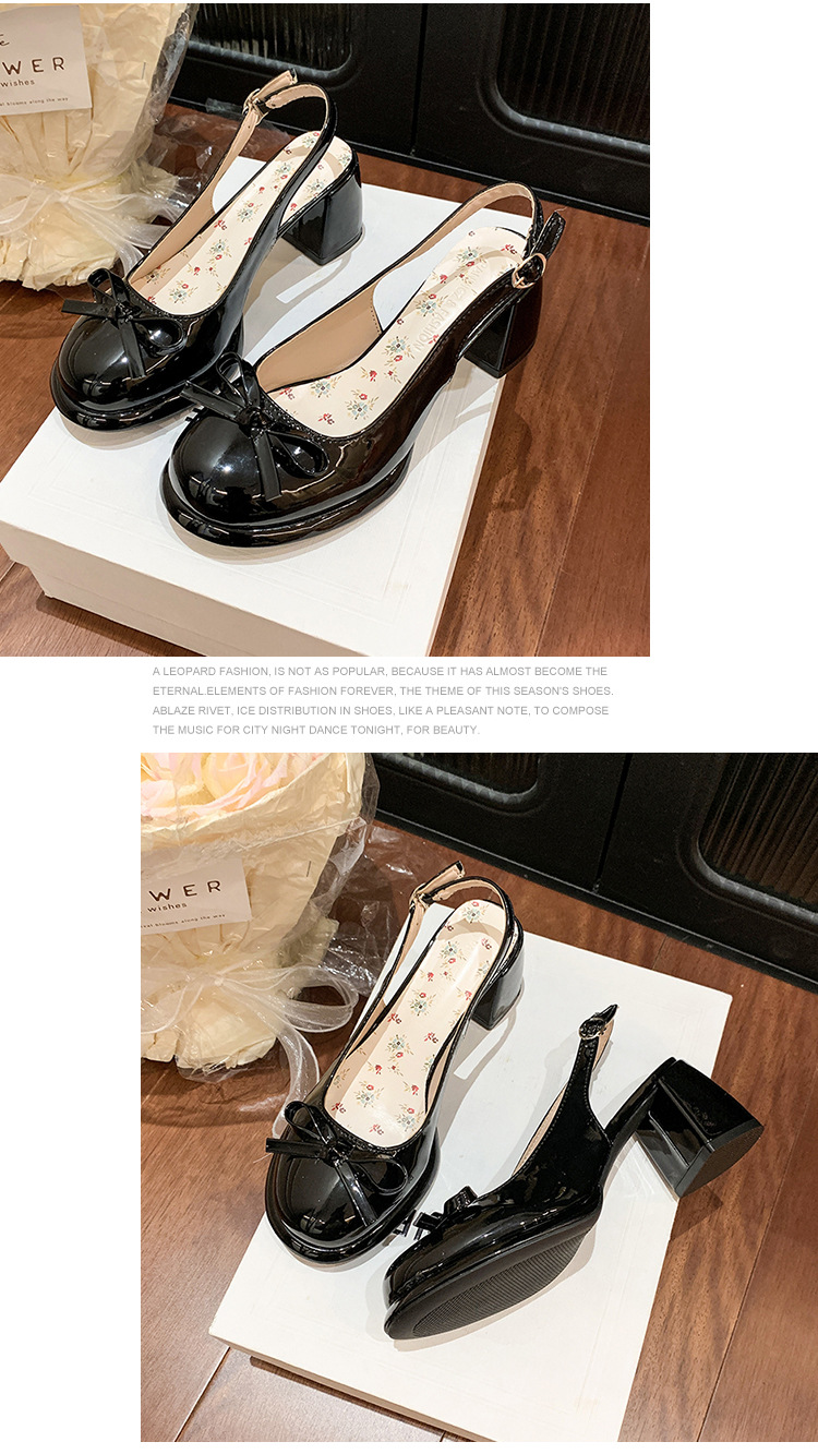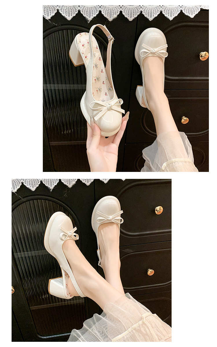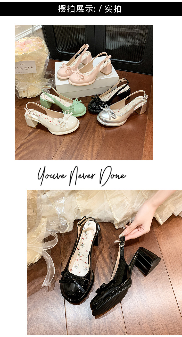 원피스 요정 스타일 활 하이힐 패션 샌들 여성 2025 년 여름 새로운 프랑스 스타일 두꺼운 발가락 싱글 레이어 신발스토어 가기
