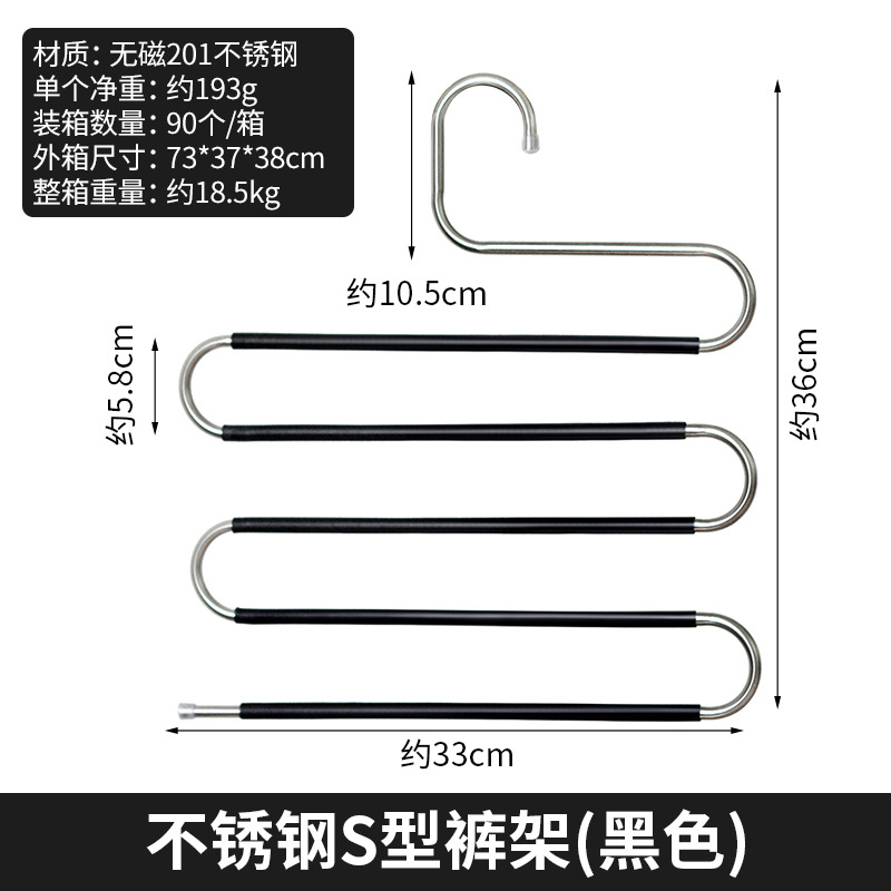 • 스테인리스 S자형 5단 바지걸이(블랙) [2개입]