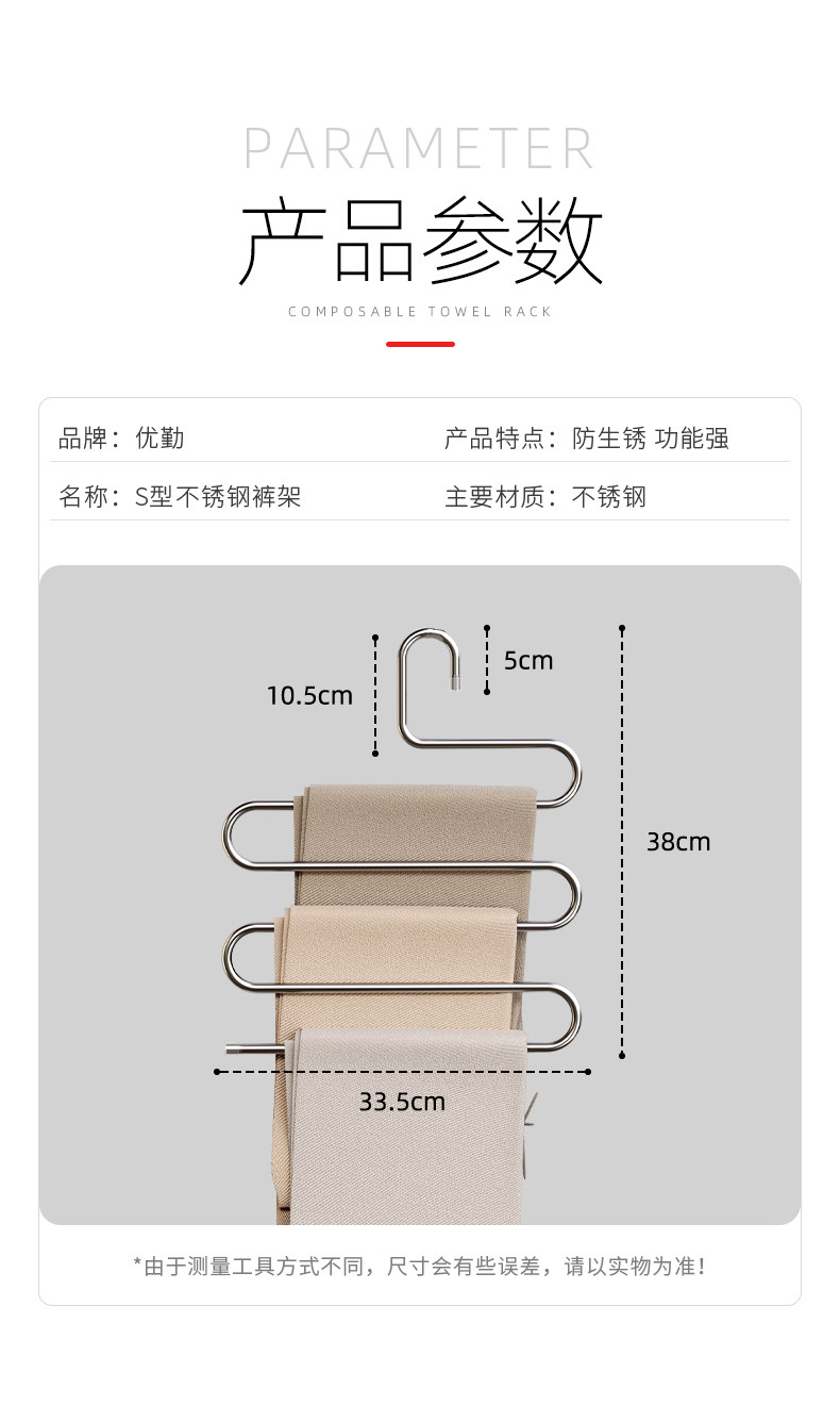 • 순수 스테인레스 스틸 S자형 5단 바지걸이
