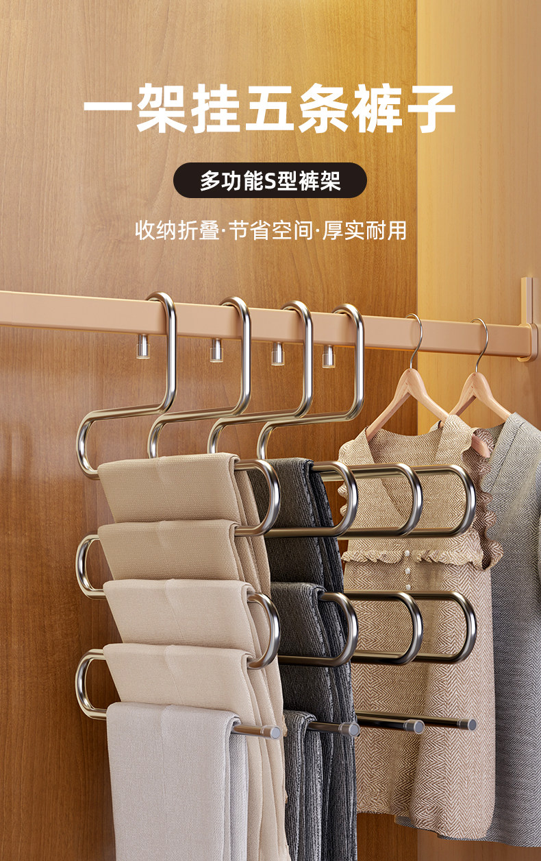 무료 배송 스테인레스 스틸 바지 걸이, 바지 걸이, 가정용 다층 다기능 옷장, 내장형 수납 유물스토어 가기