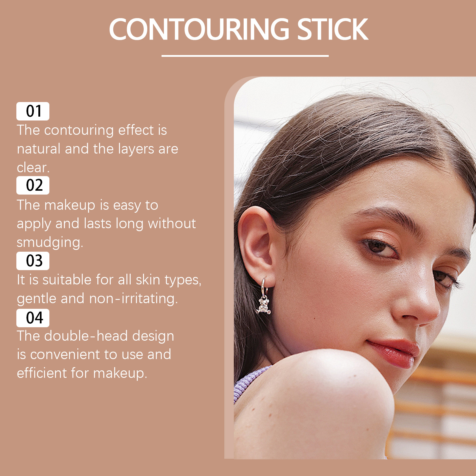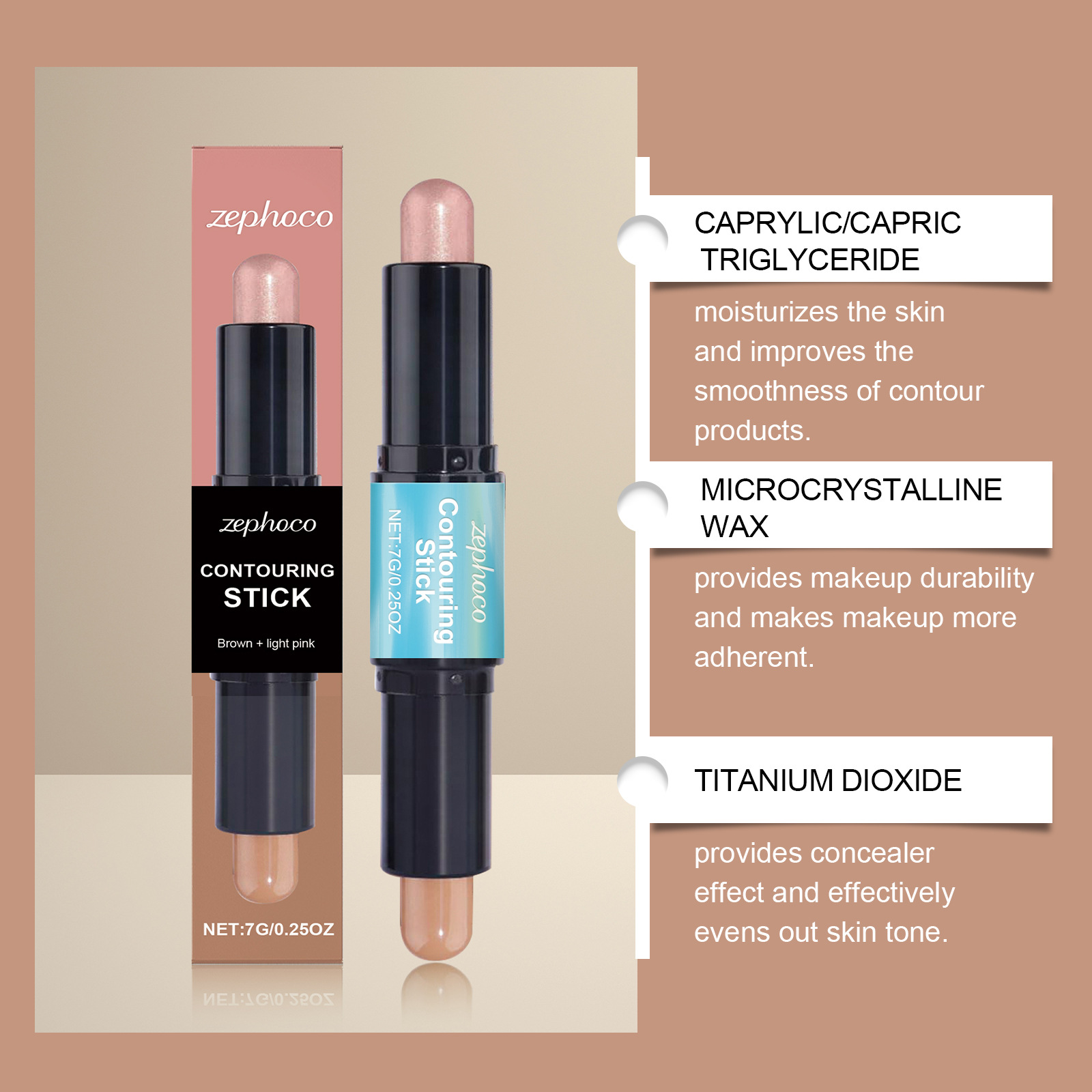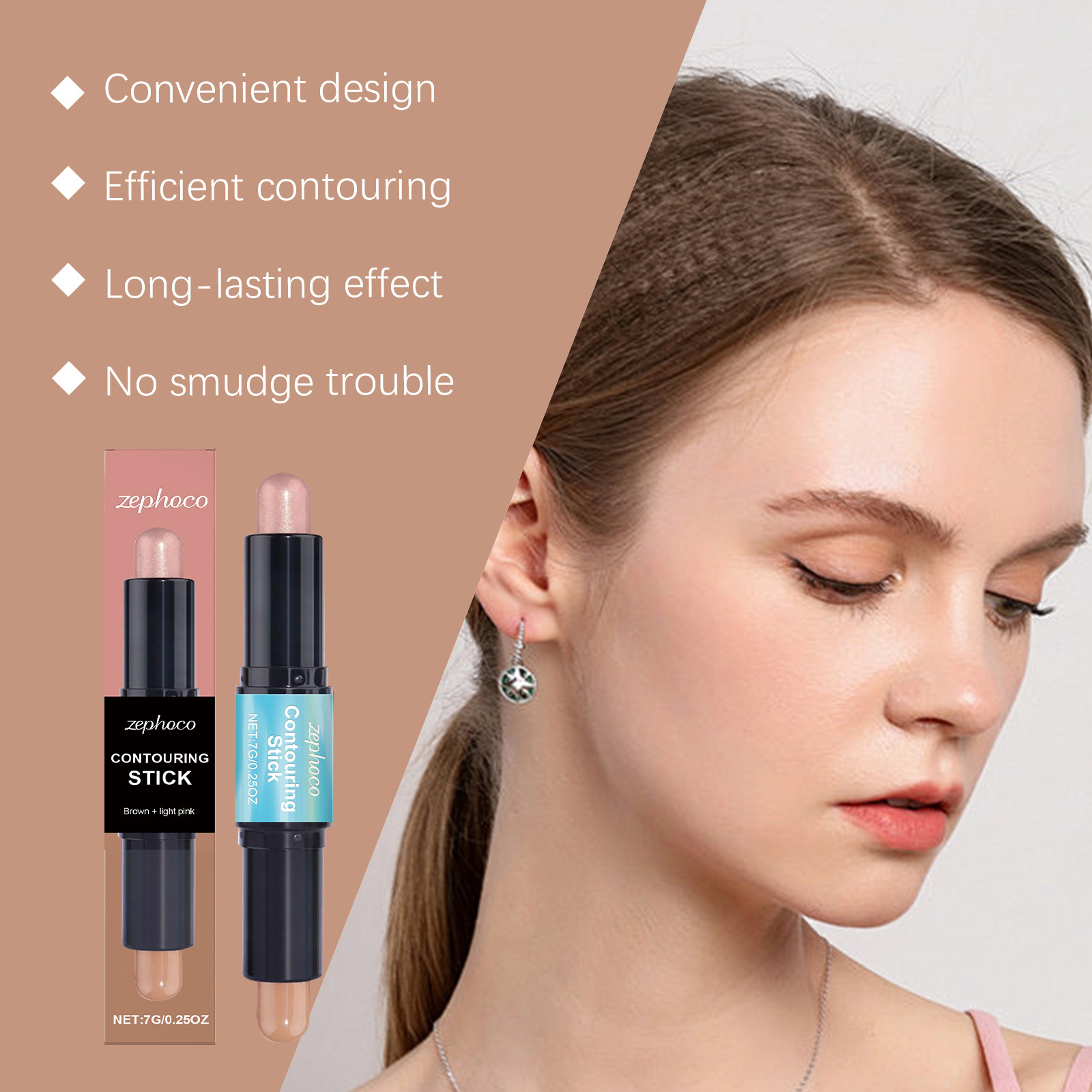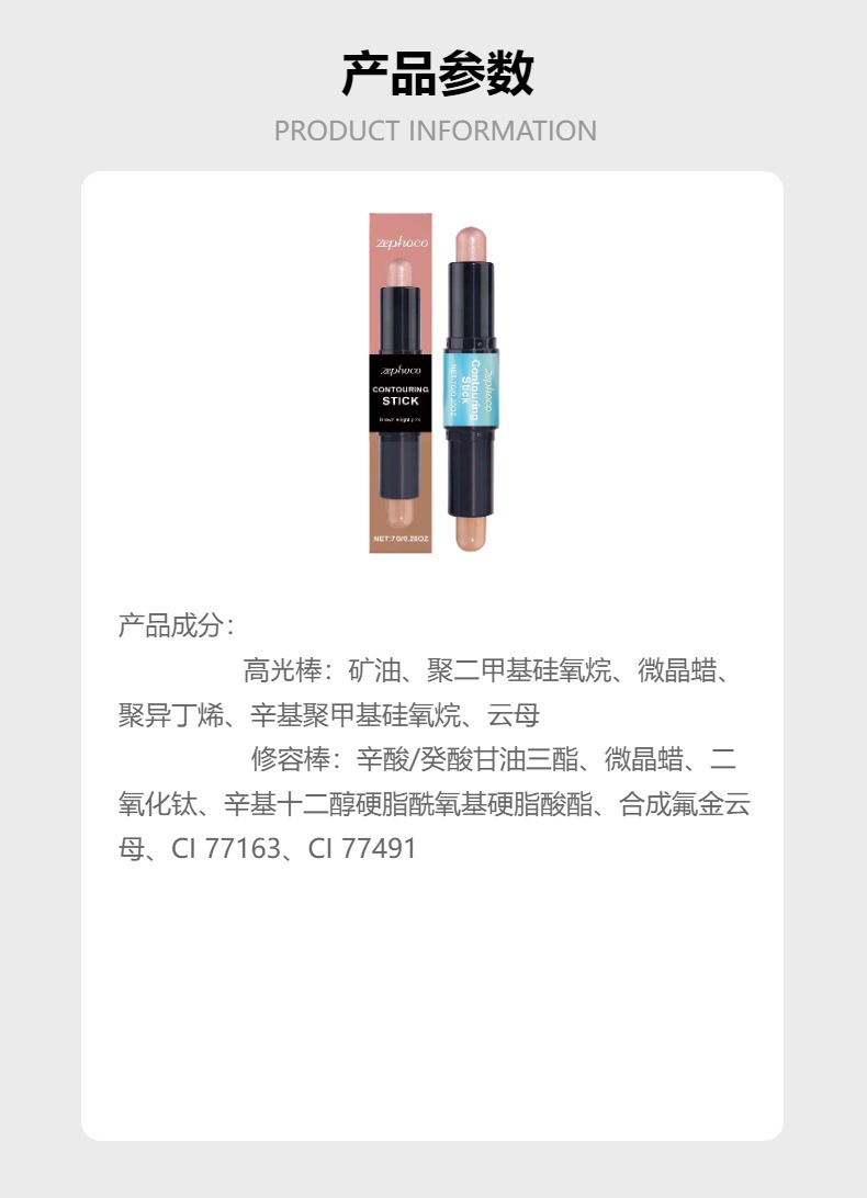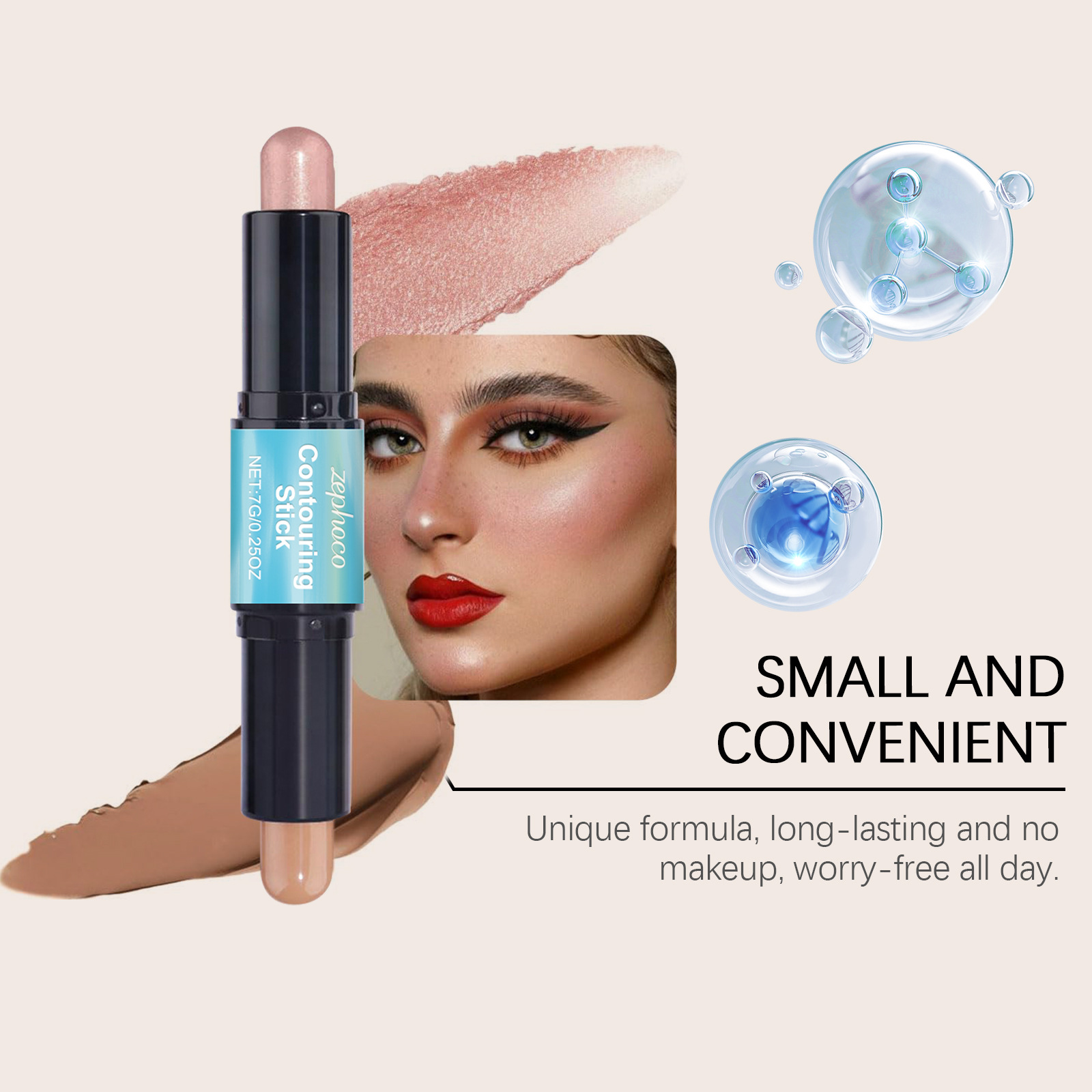 ZEPHOCO 2-in -1 얼굴 고광택 얼굴 고정 스틱 고광택 얼굴 고정 더블 헤드 얼굴 고정 스테레오 쉽게 메이크업