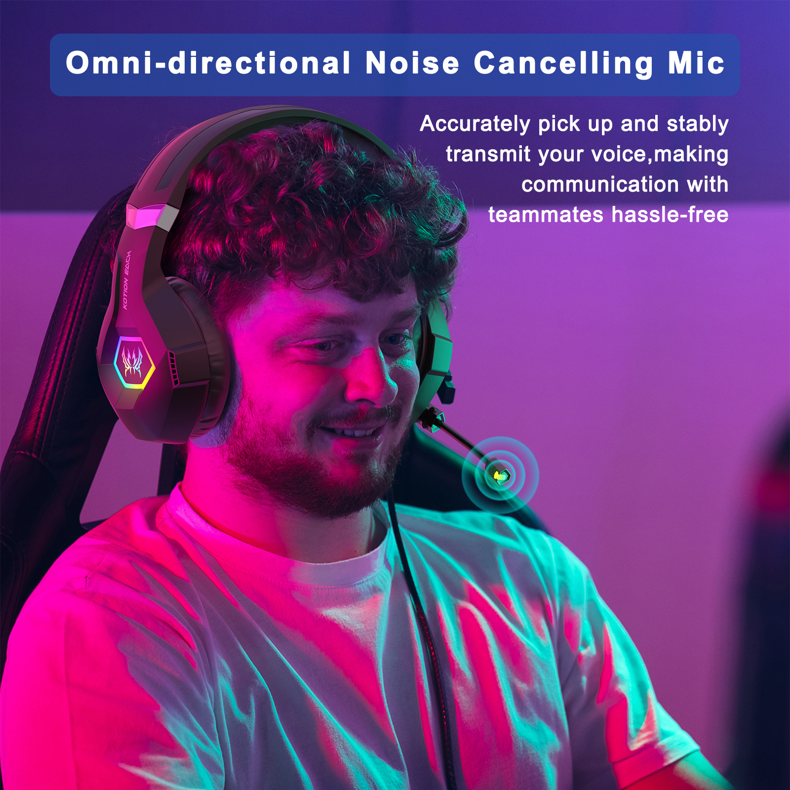 KOTION EACH GS450 헤드 장착형 유선 게임용 헤드셋 RGB 컴퓨터 PS4/PS5 컨트롤러 헤드셋