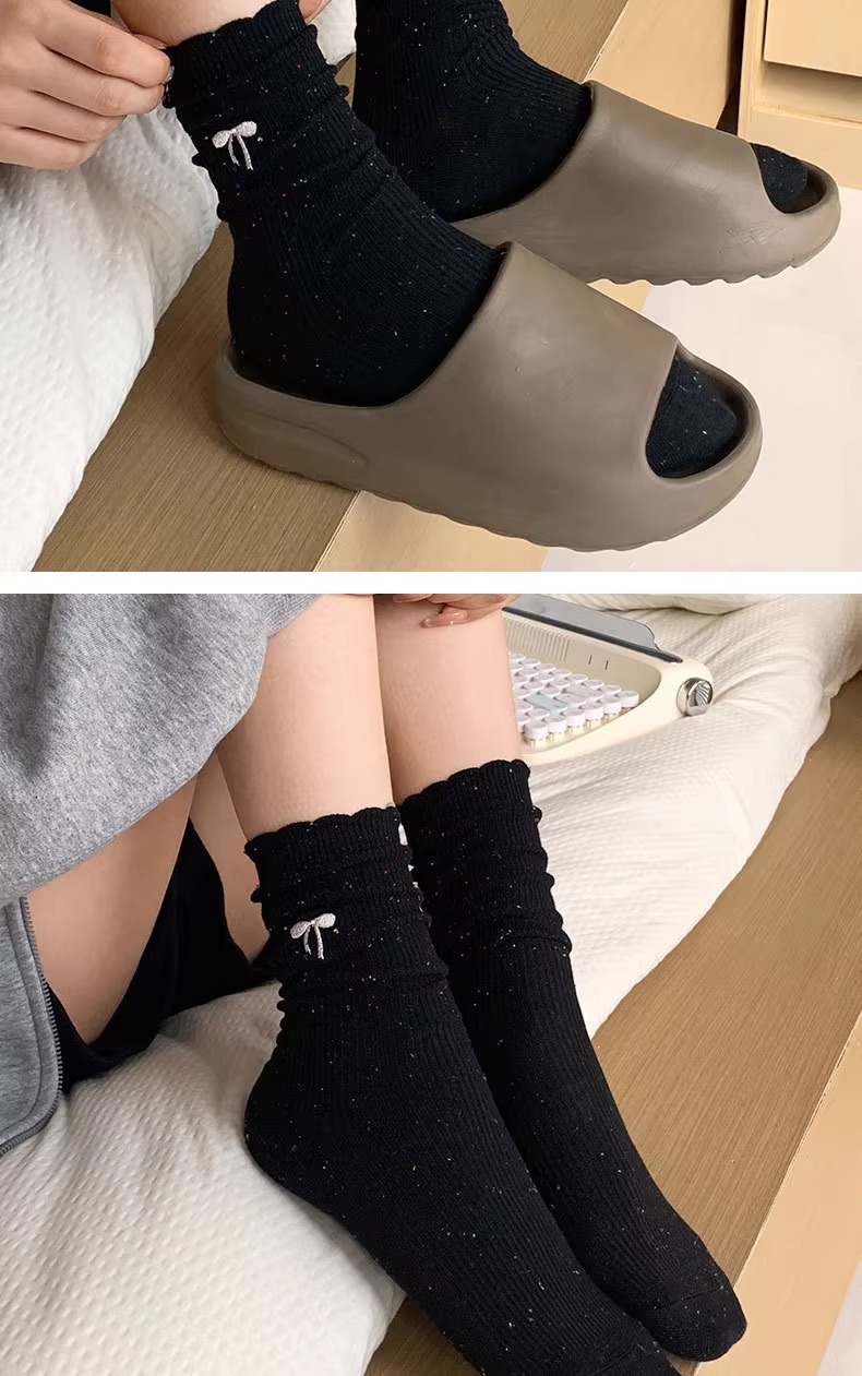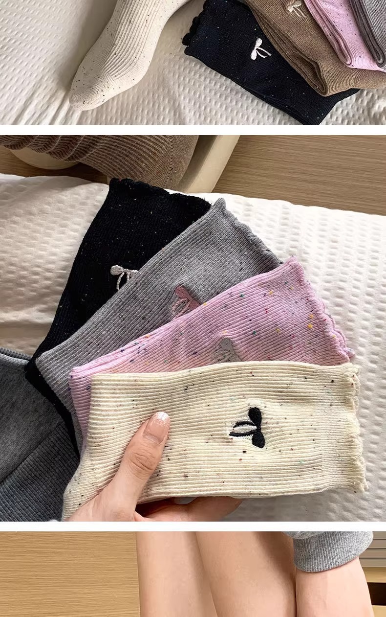 여성용 리본 양말 봄, 가을 종아리 중간 양말 순수 인 트렌디 코튼 일본 소녀 복고풍 아이디어 원사 레이스 양말스토어 가기