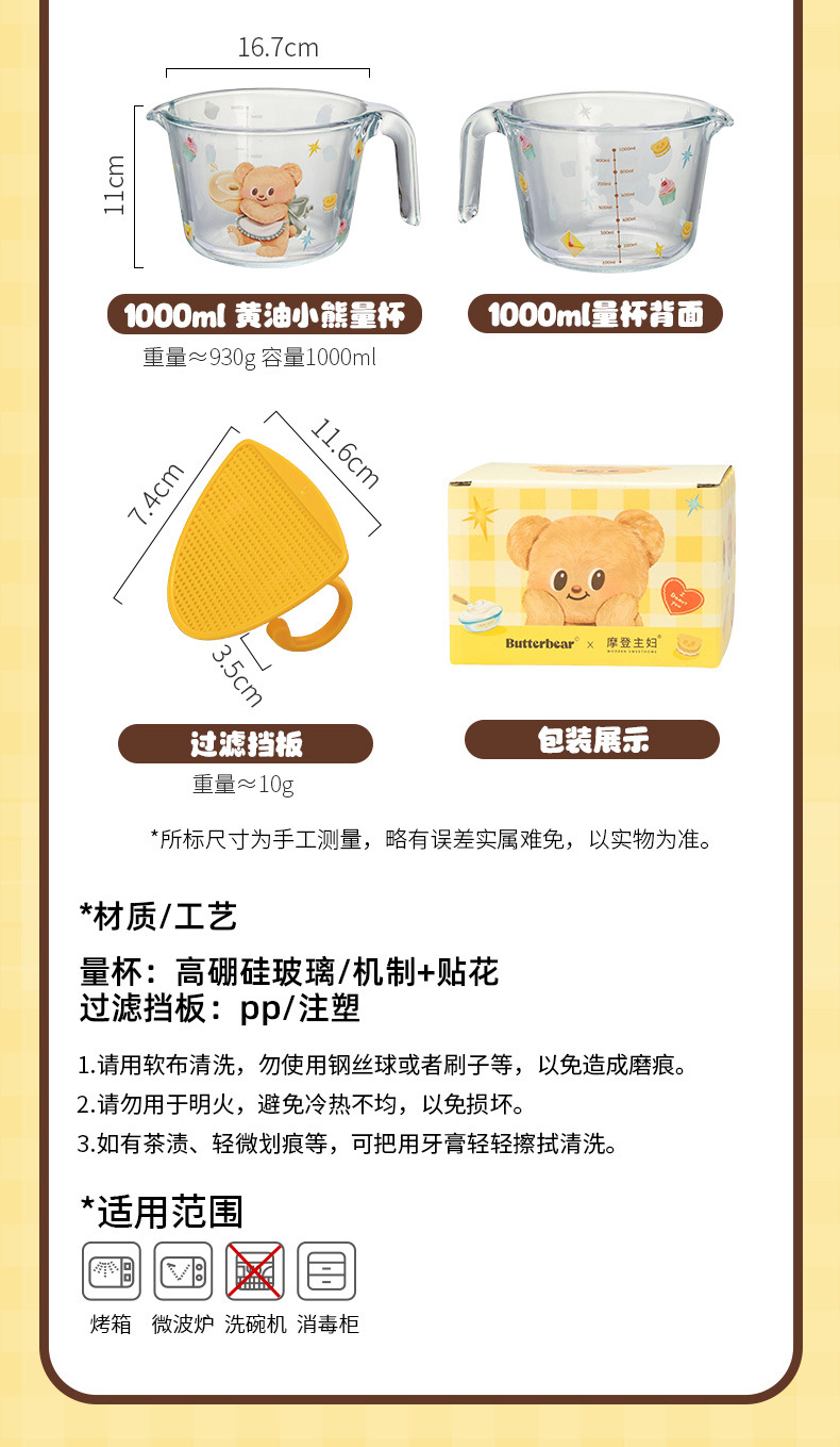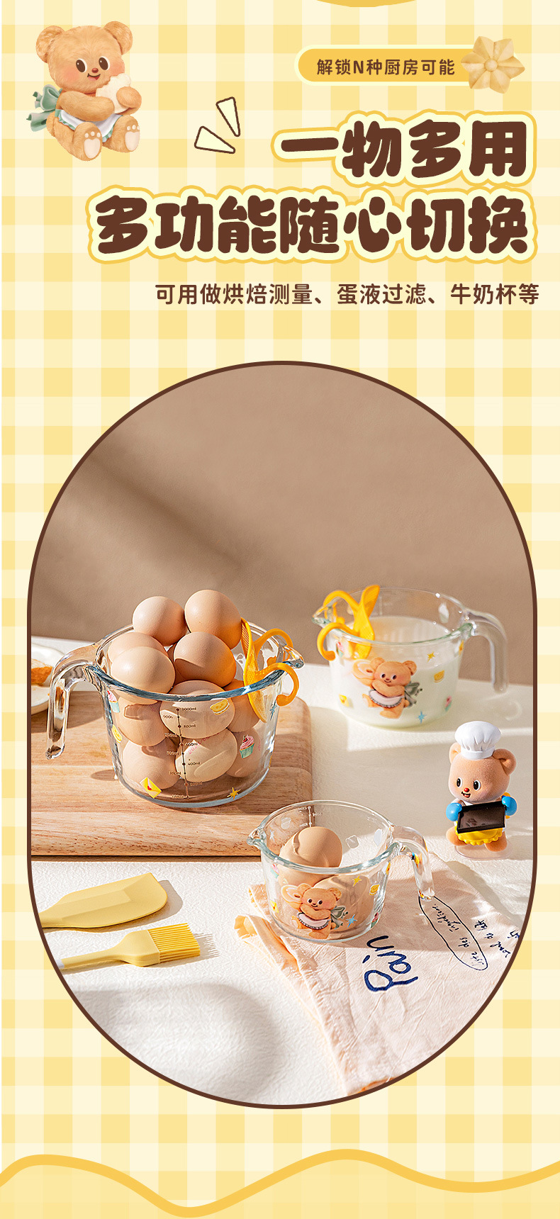 [현대 주부 & 버터 베어] 규모 대형 주방 계란 컵 필터 유리 측정 컵스토어 가기