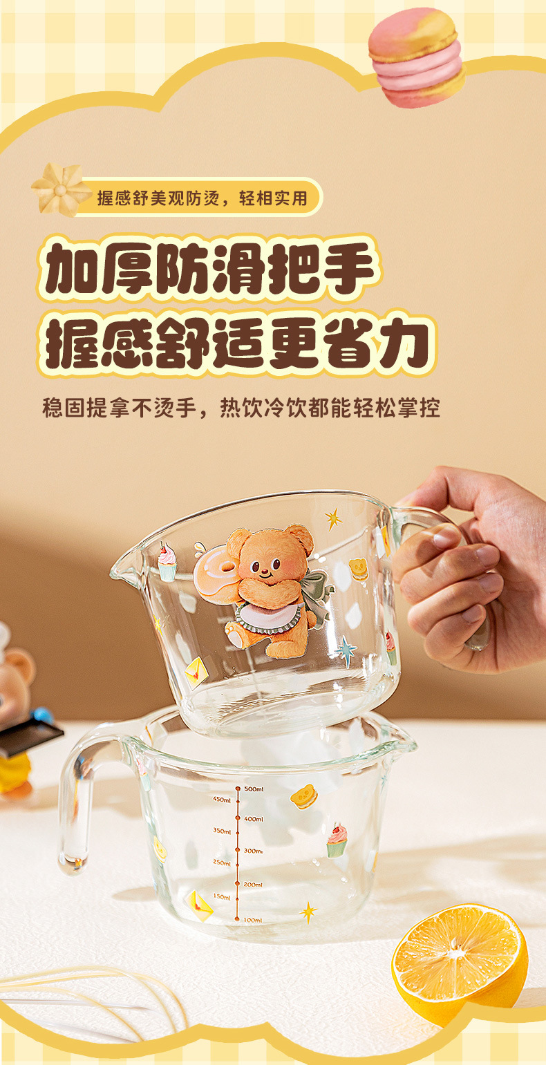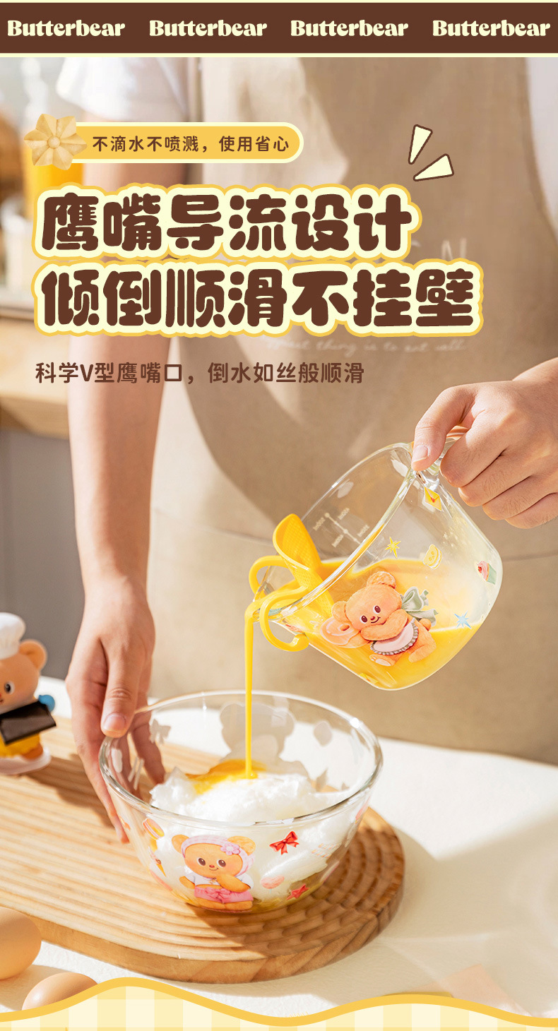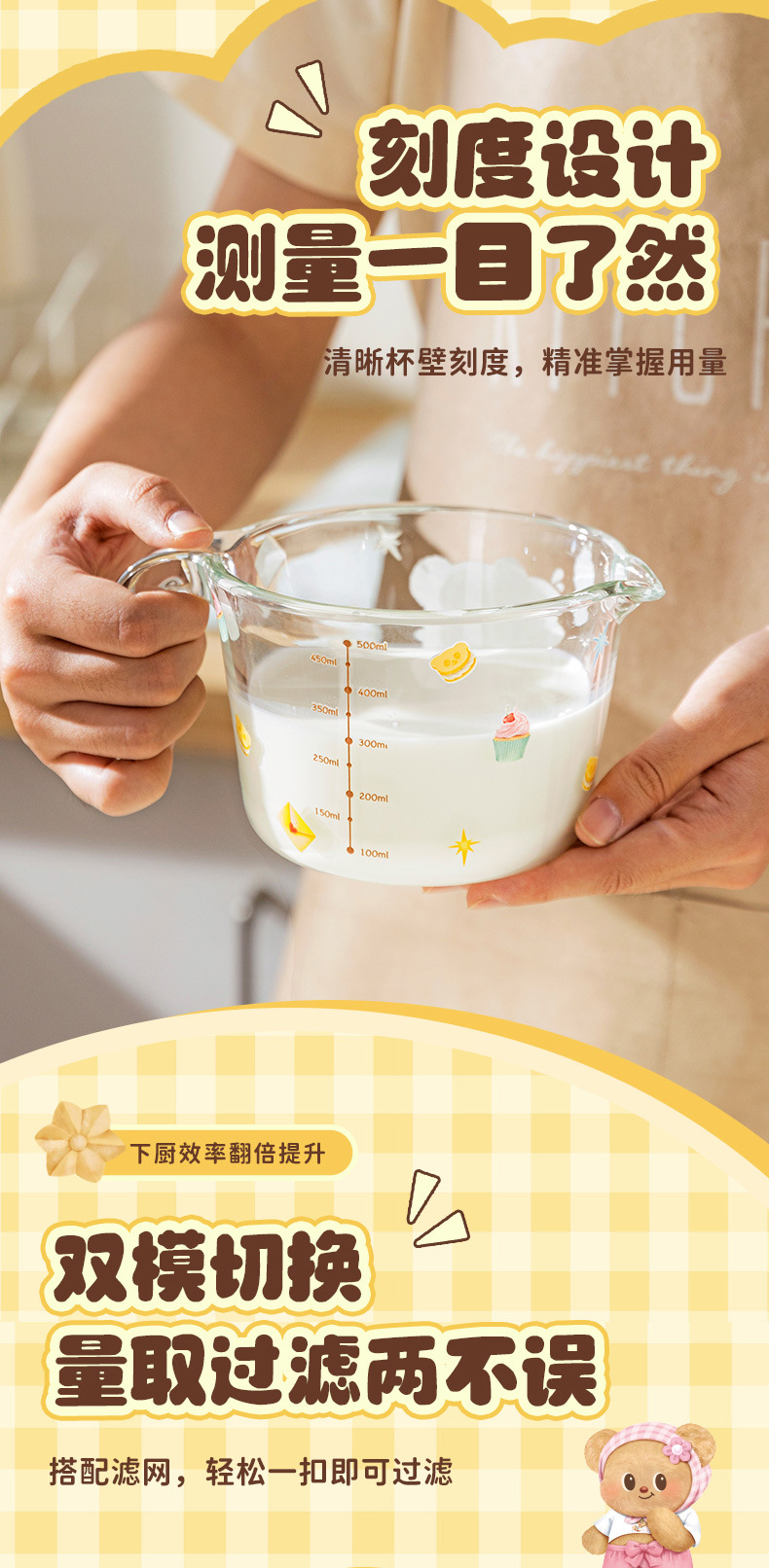 [현대 주부 & 버터 베어] 규모 대형 주방 계란 컵 필터 유리 측정 컵