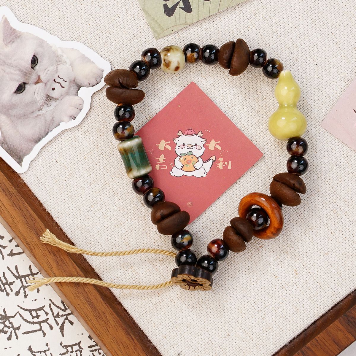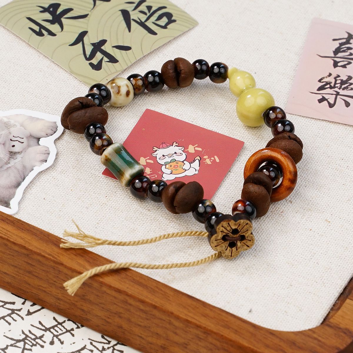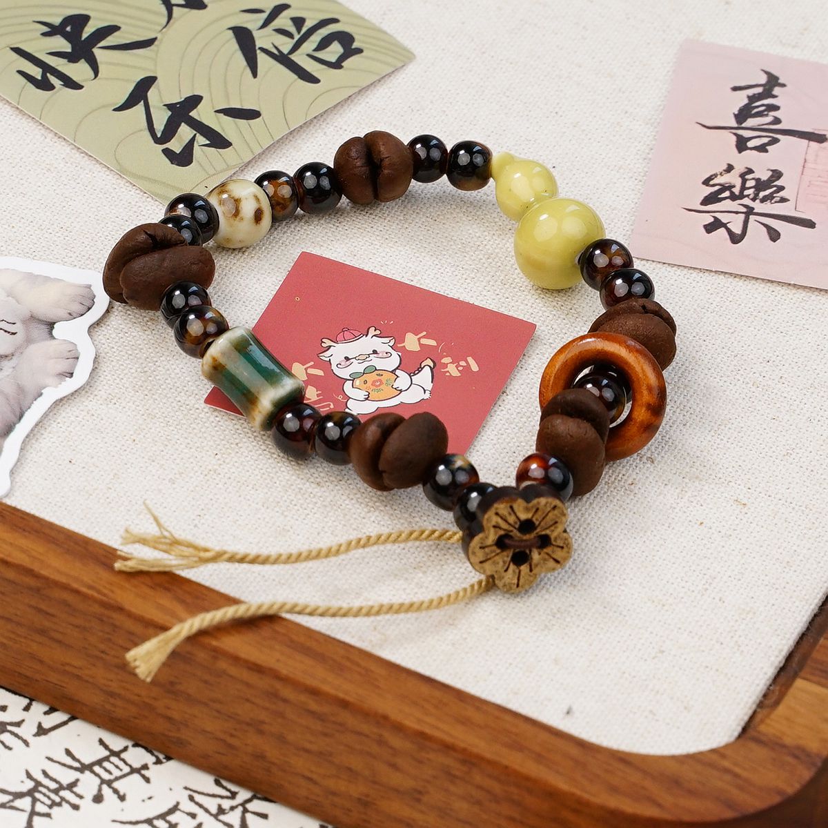 커피 콩을 사용한 경덕진 세라믹 팔찌, 상쾌하고 퇴색하지 않음, 여성용 고급 새로운 중국 스타일의 다용도 보석 팔찌 도매스토어 가기