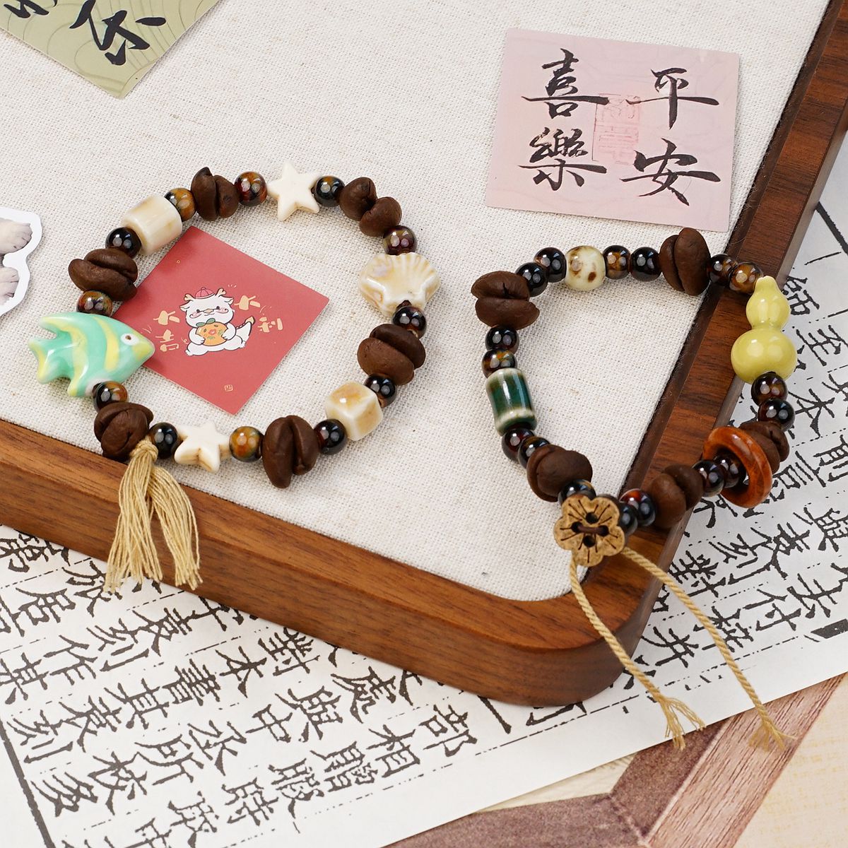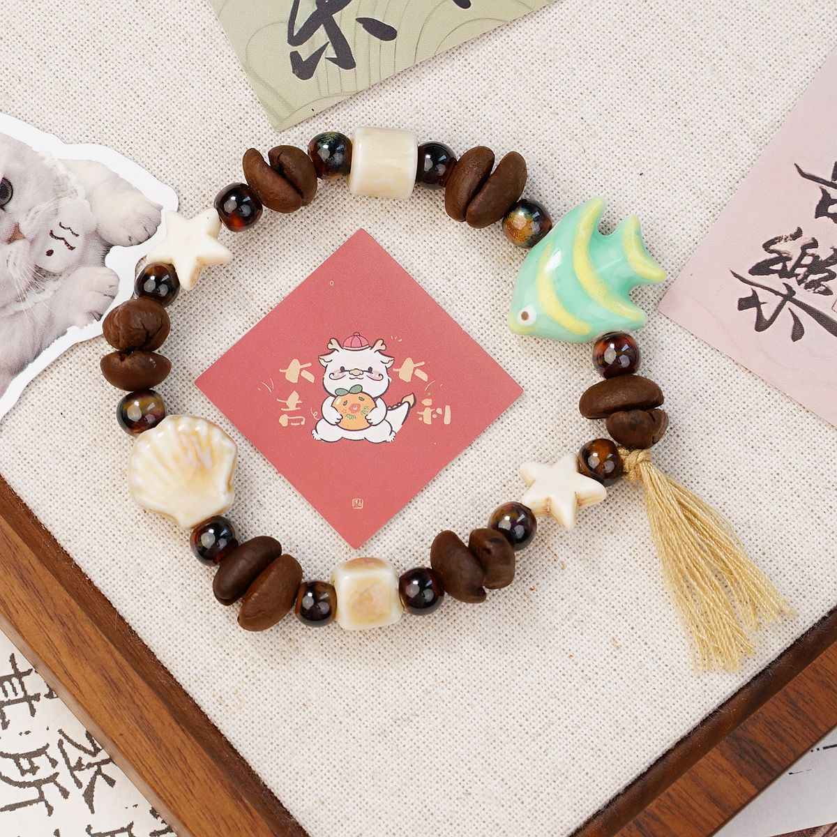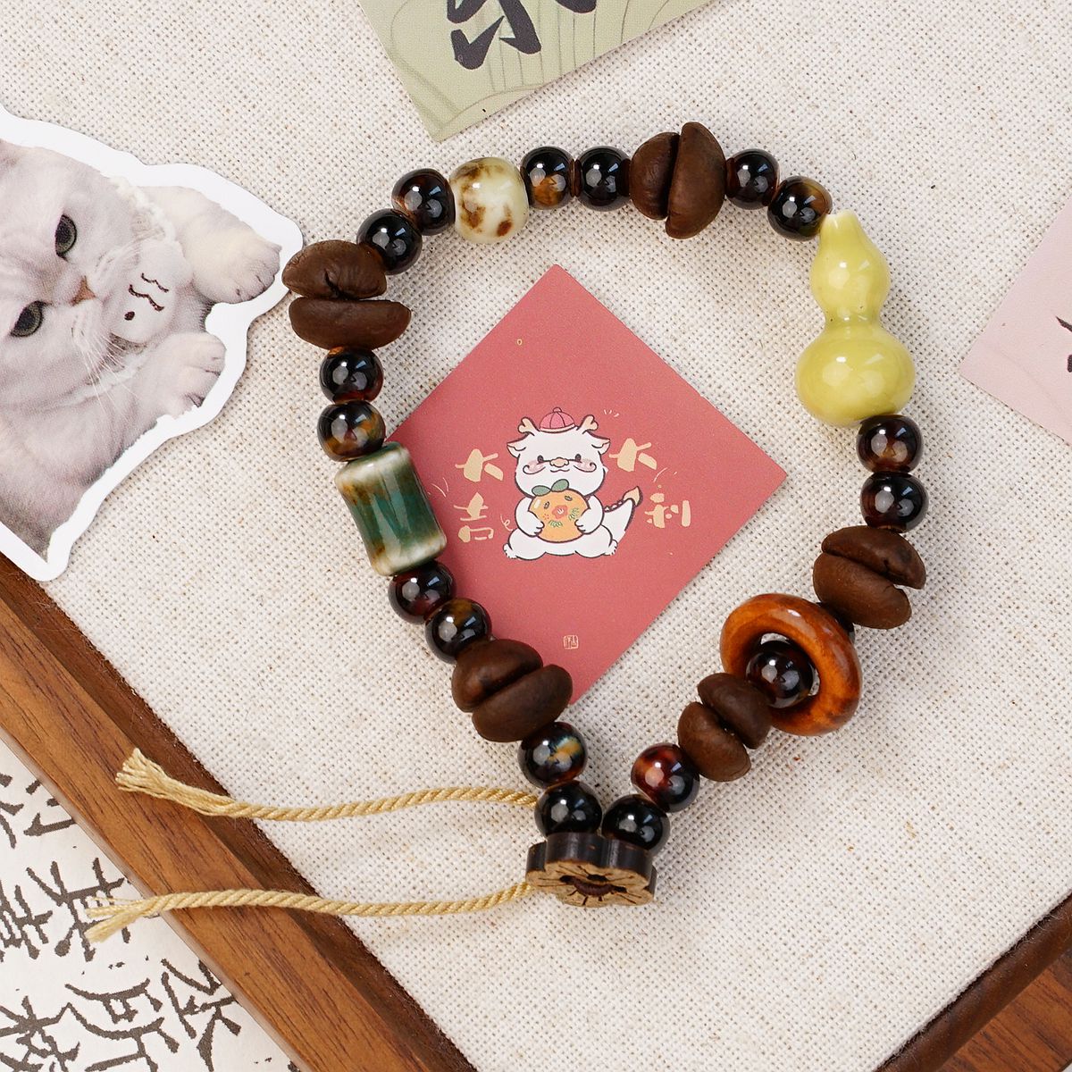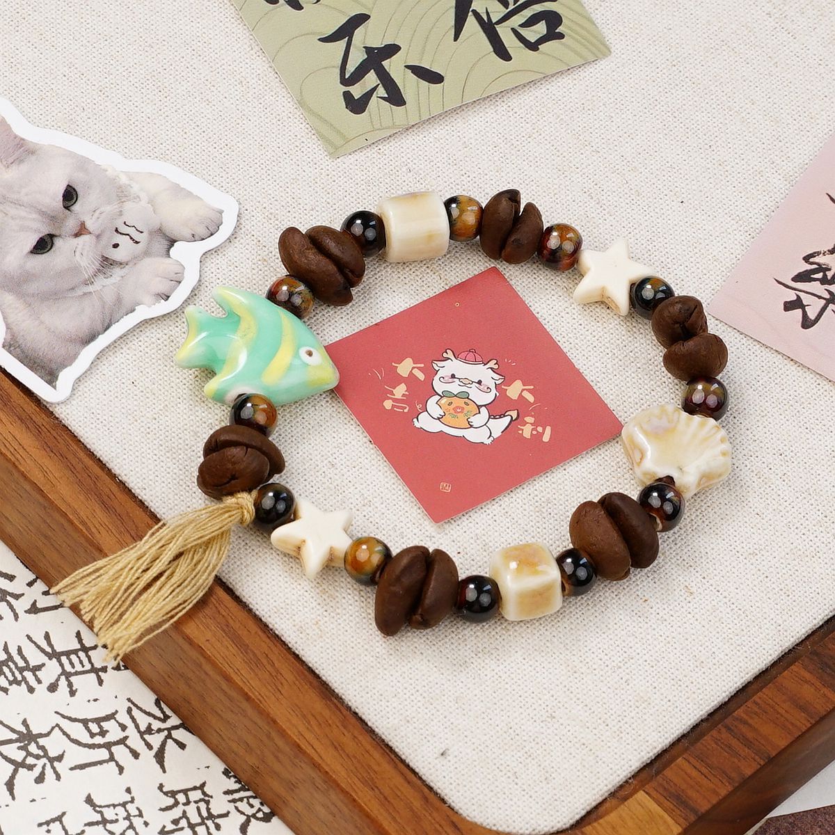 커피 콩을 사용한 경덕진 세라믹 팔찌, 상쾌하고 퇴색하지 않음, 여성용 고급 새로운 중국 스타일의 다용도 보석 팔찌 도매스토어 가기