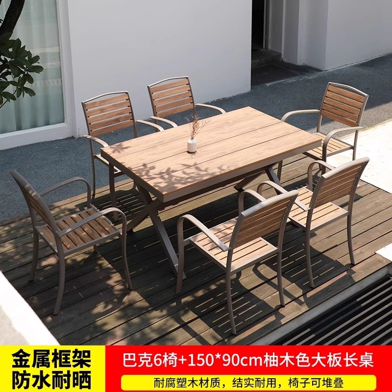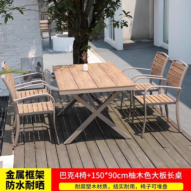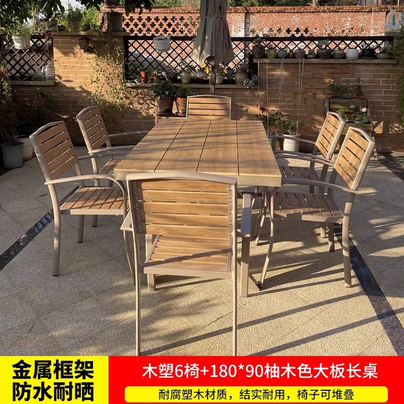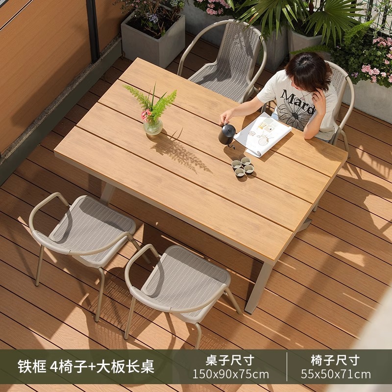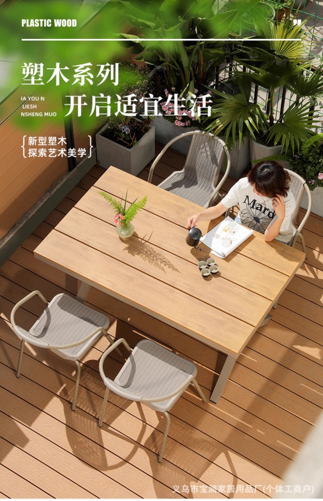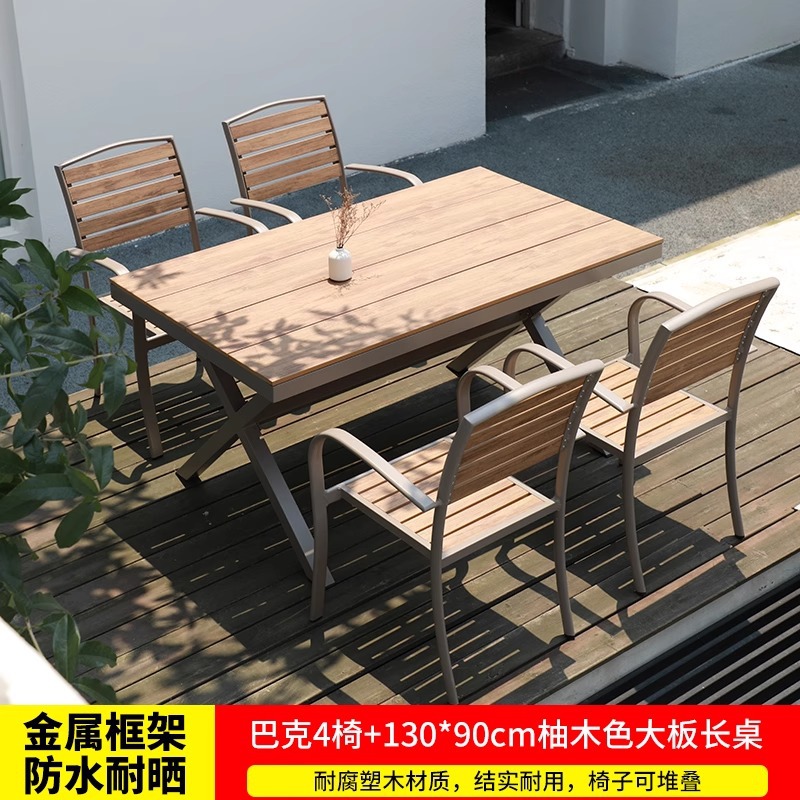 야외용 플라스틱 목재 테이블과 의자 조합, 야외 안뜰 테라스, 방수 테이블과 의자, 야외 레저 정원 발코니 부식 방지