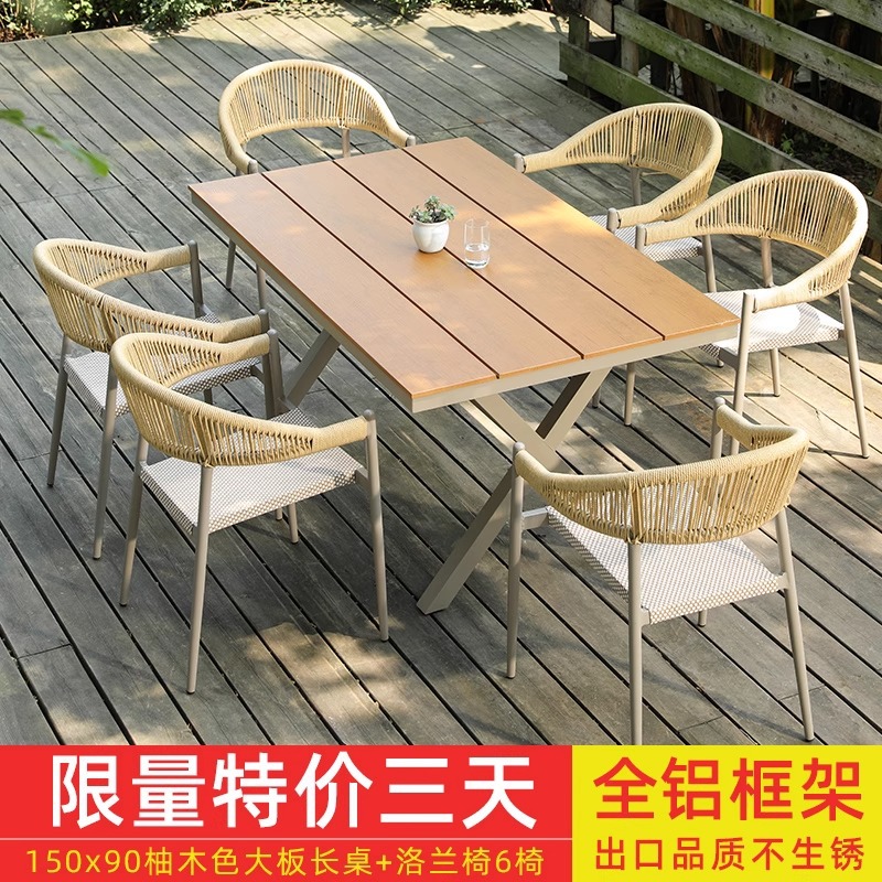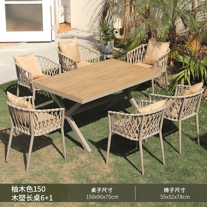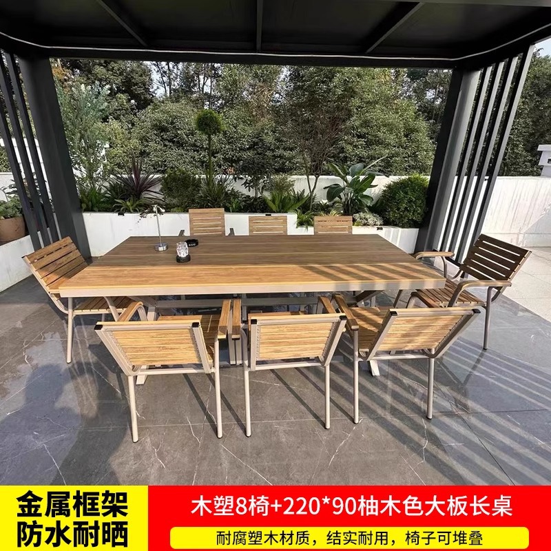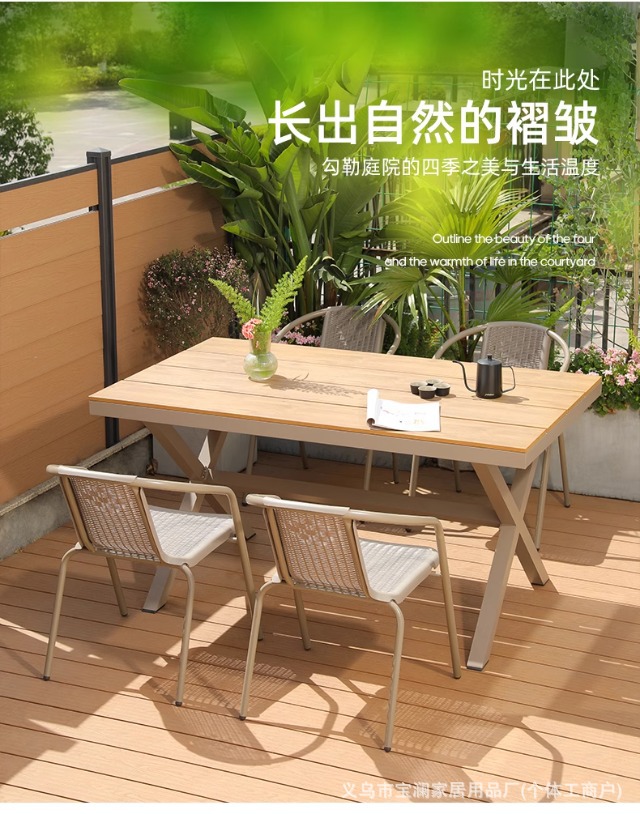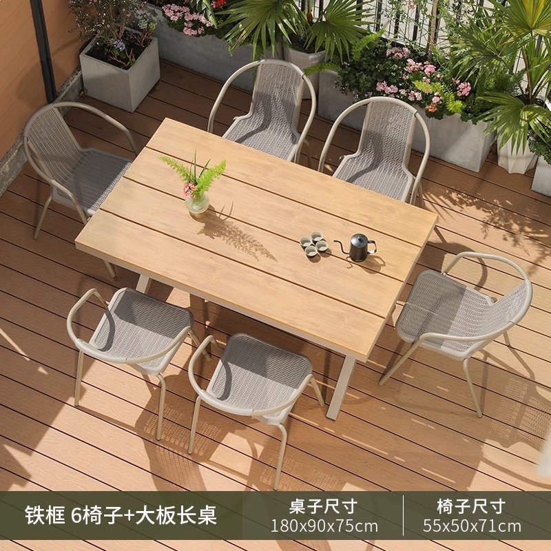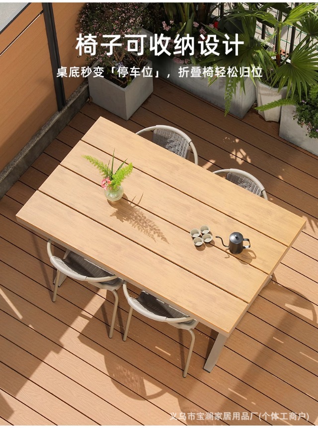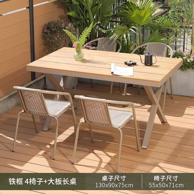 야외용 플라스틱 목재 테이블과 의자 조합, 야외 안뜰 테라스, 방수 테이블과 의자, 야외 레저 정원 발코니 부식 방지